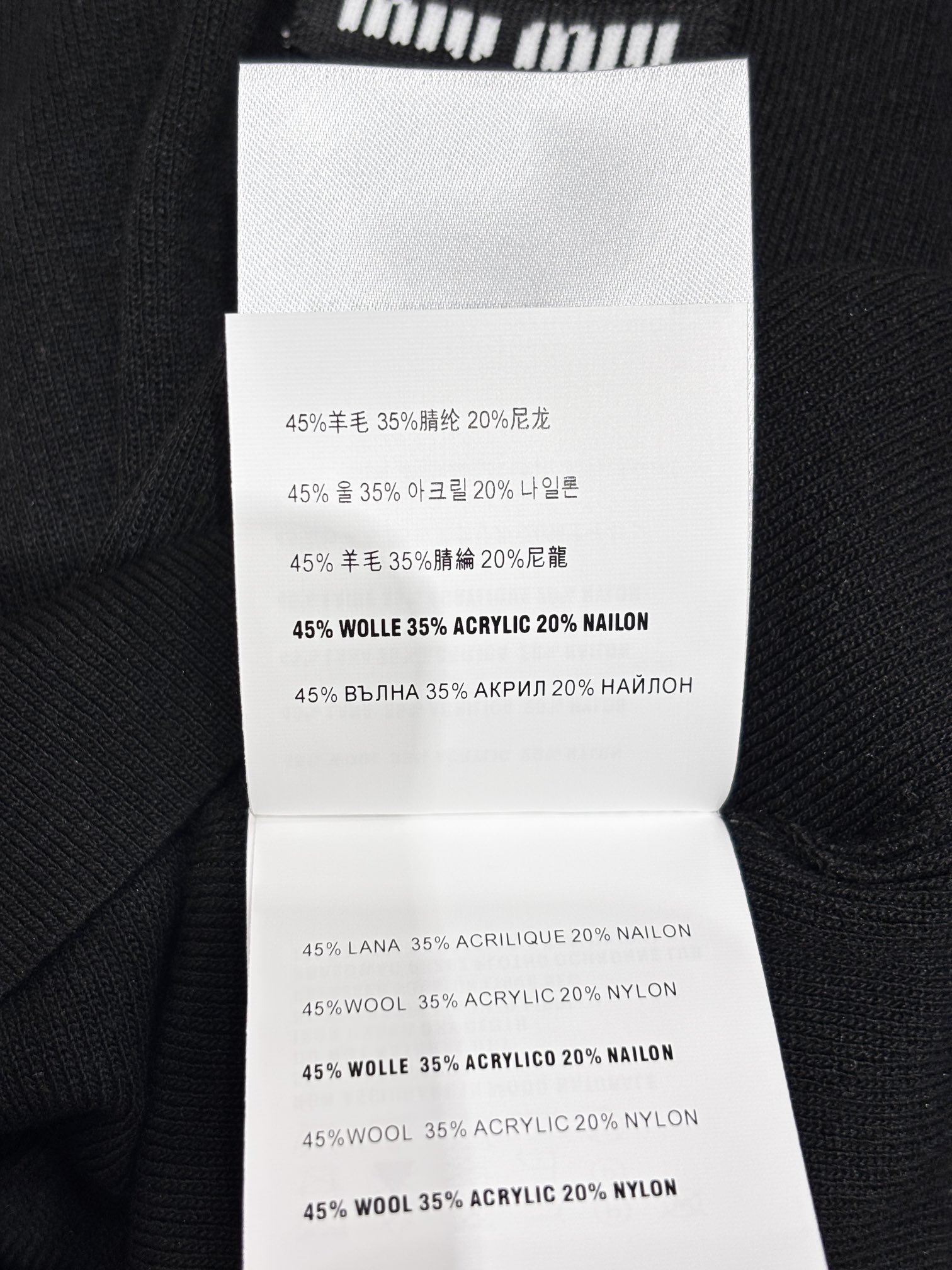 这款衣服是AAAAA 1:1 质量 (非常棒). 使用了和原版一模一样的材料. 商标部分也保持了和缪缪/Miu Miu一样. 图片拍摄是实物衣服拍摄, 您所收到的实物保证和我们图片一模一样.