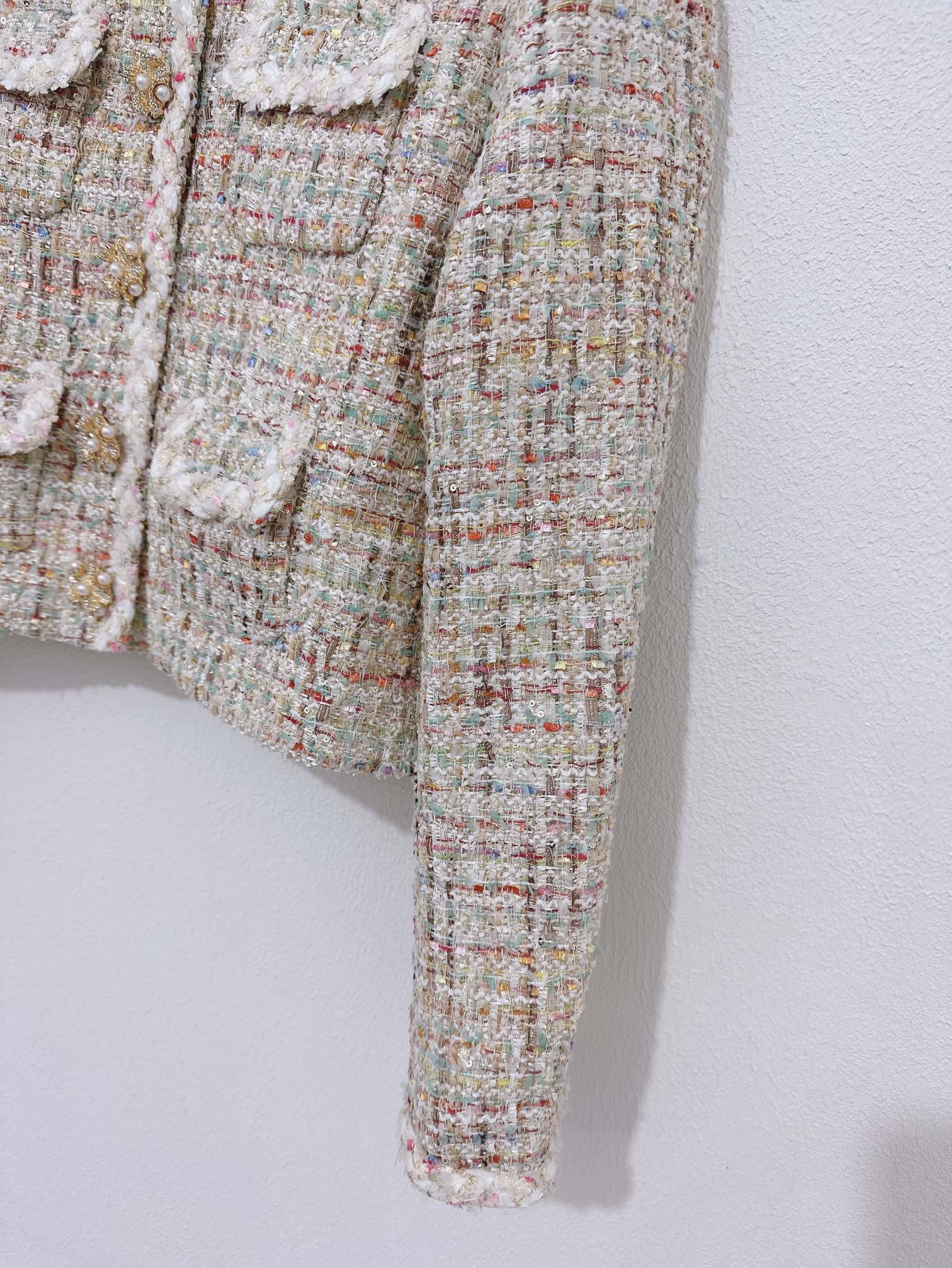 这款衣服是AAAAA 1:1 质量 (非常棒). 使用了和原版一模一样的材料. 商标部分也保持了和香奈儿/Chanel一样. 图片拍摄是实物衣服拍摄, 您所收到的实物保证和我们图片一模一样.