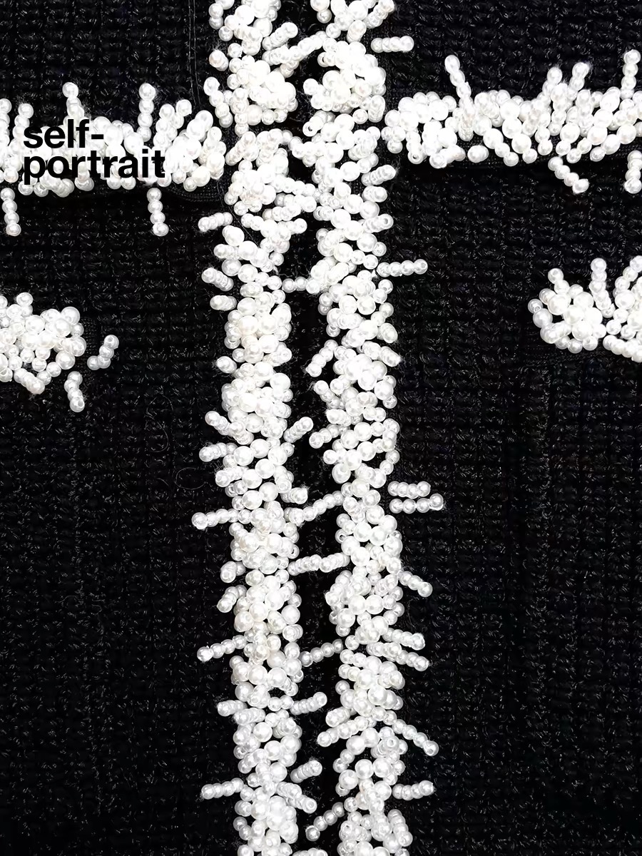 这款衣服是AAAAA 1:1 质量 (非常棒). 使用了和原版一模一样的材料. 商标部分也保持了和Self-Portrait一样. 图片拍摄是实物衣服拍摄, 您所收到的实物保证和我们图片一模一样.