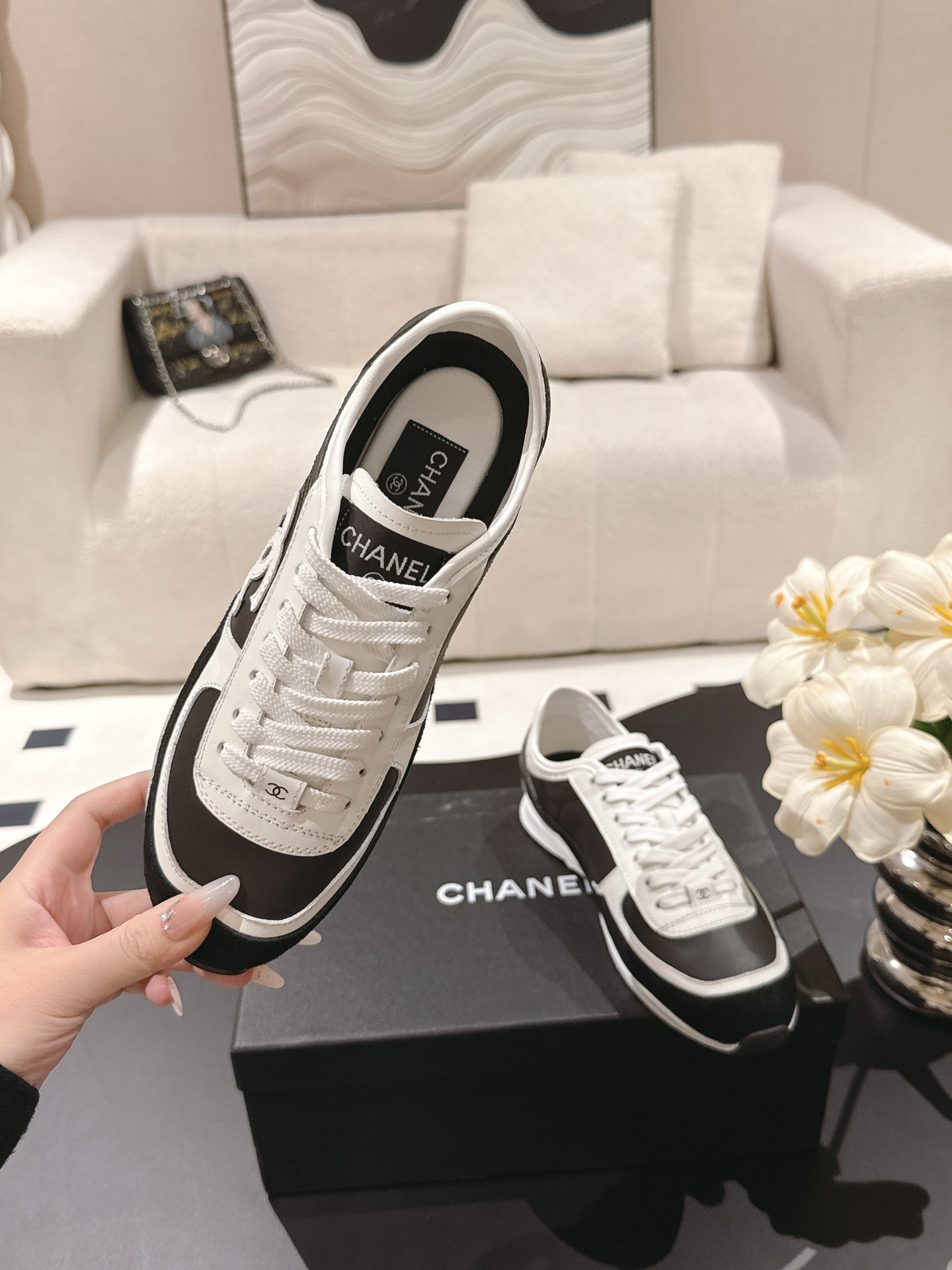 这款鞋子是AAAAA 1:1 质量 (非常棒). 使用了和原版一模一样的材料. 商标部分也保持了和香奈儿/Chanel一样. 图片拍摄是实物鞋子拍摄, 您所收到的实物保证和我们图片一模一样.