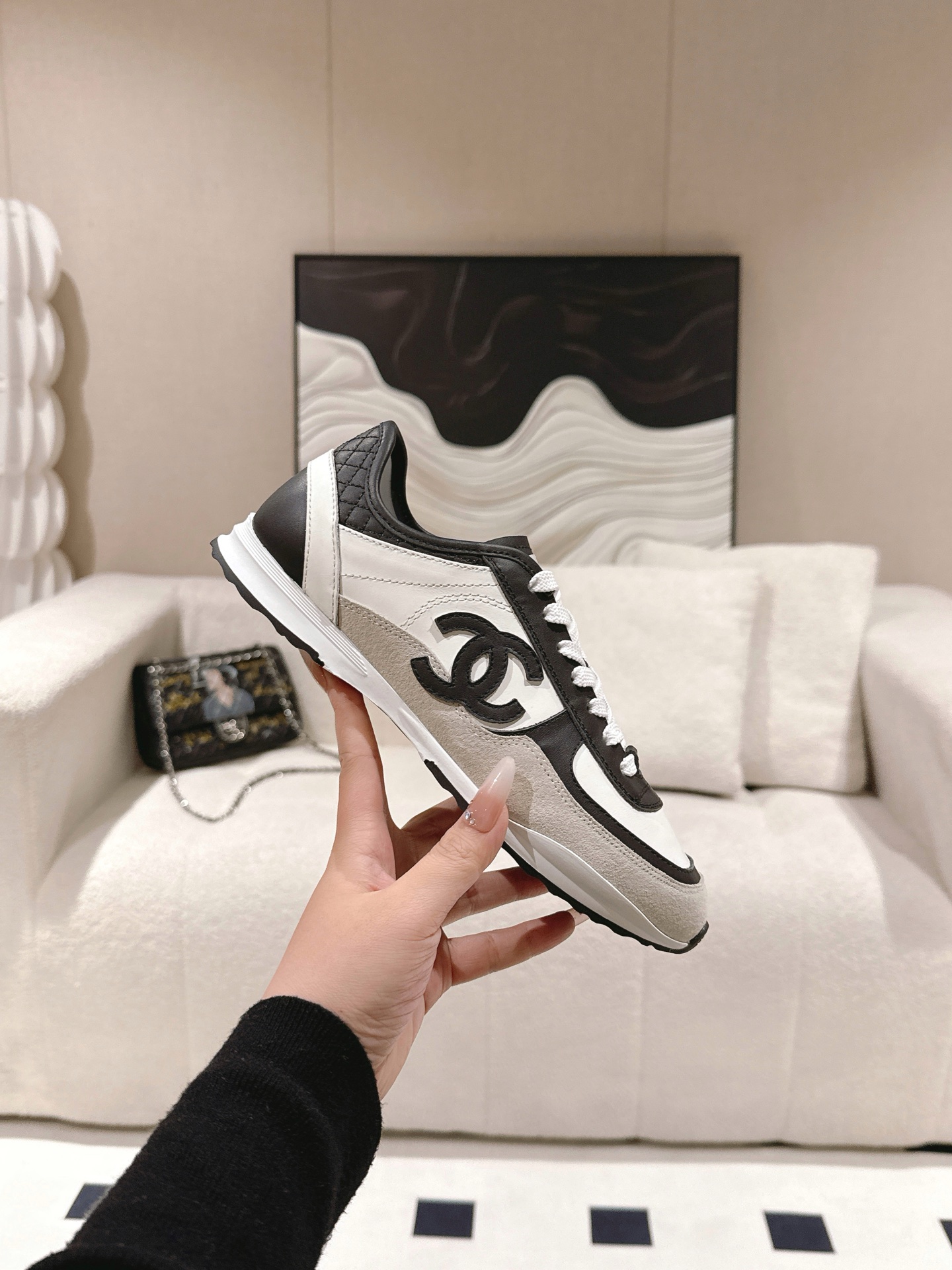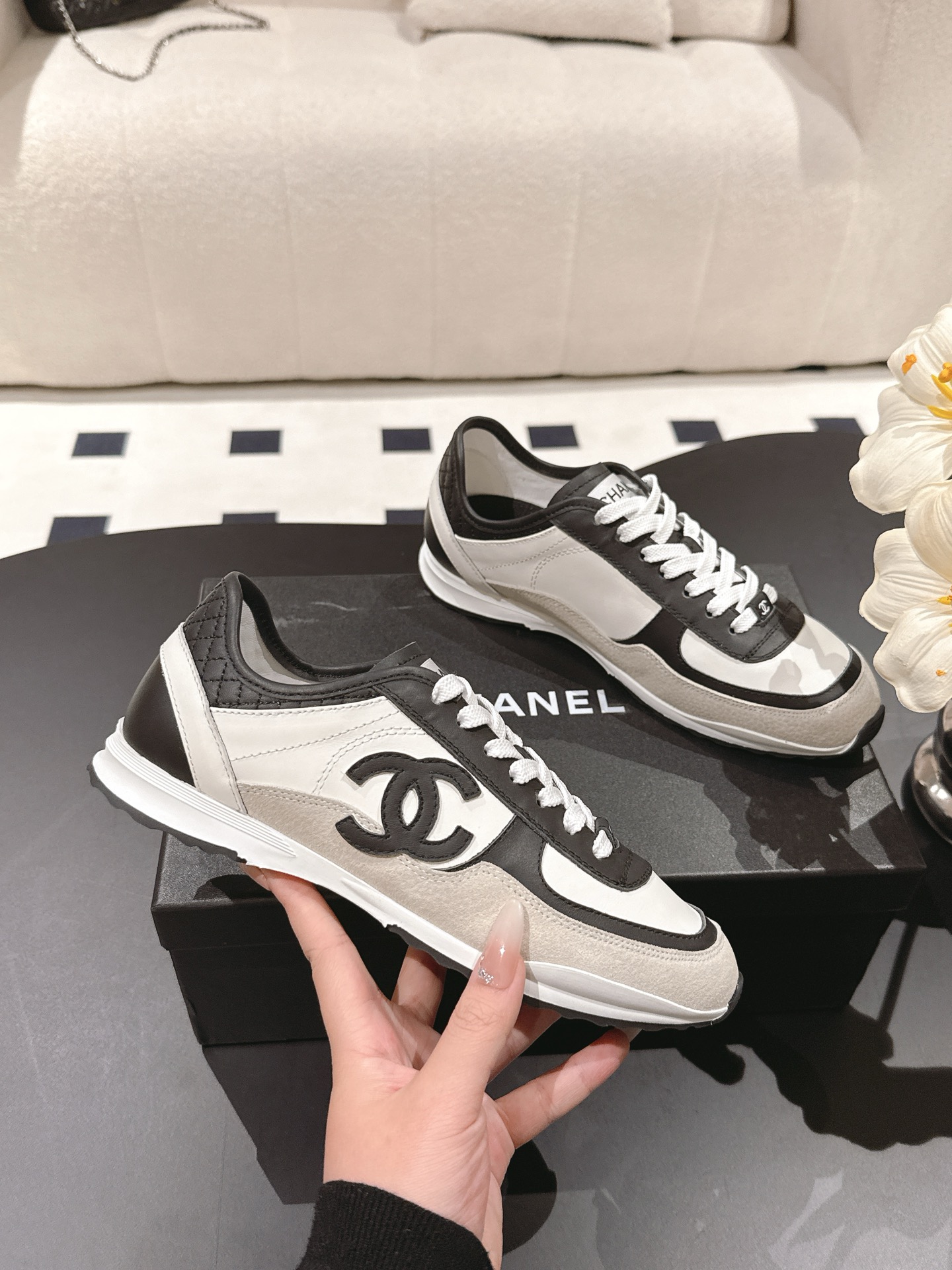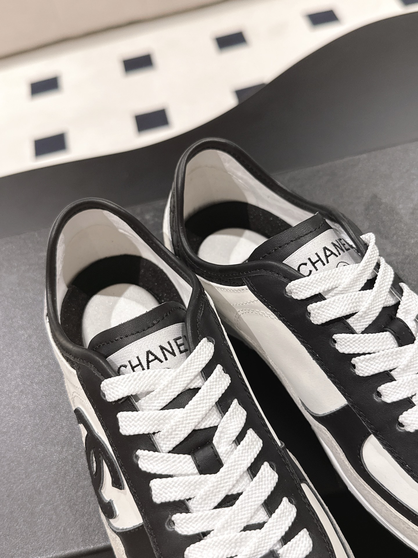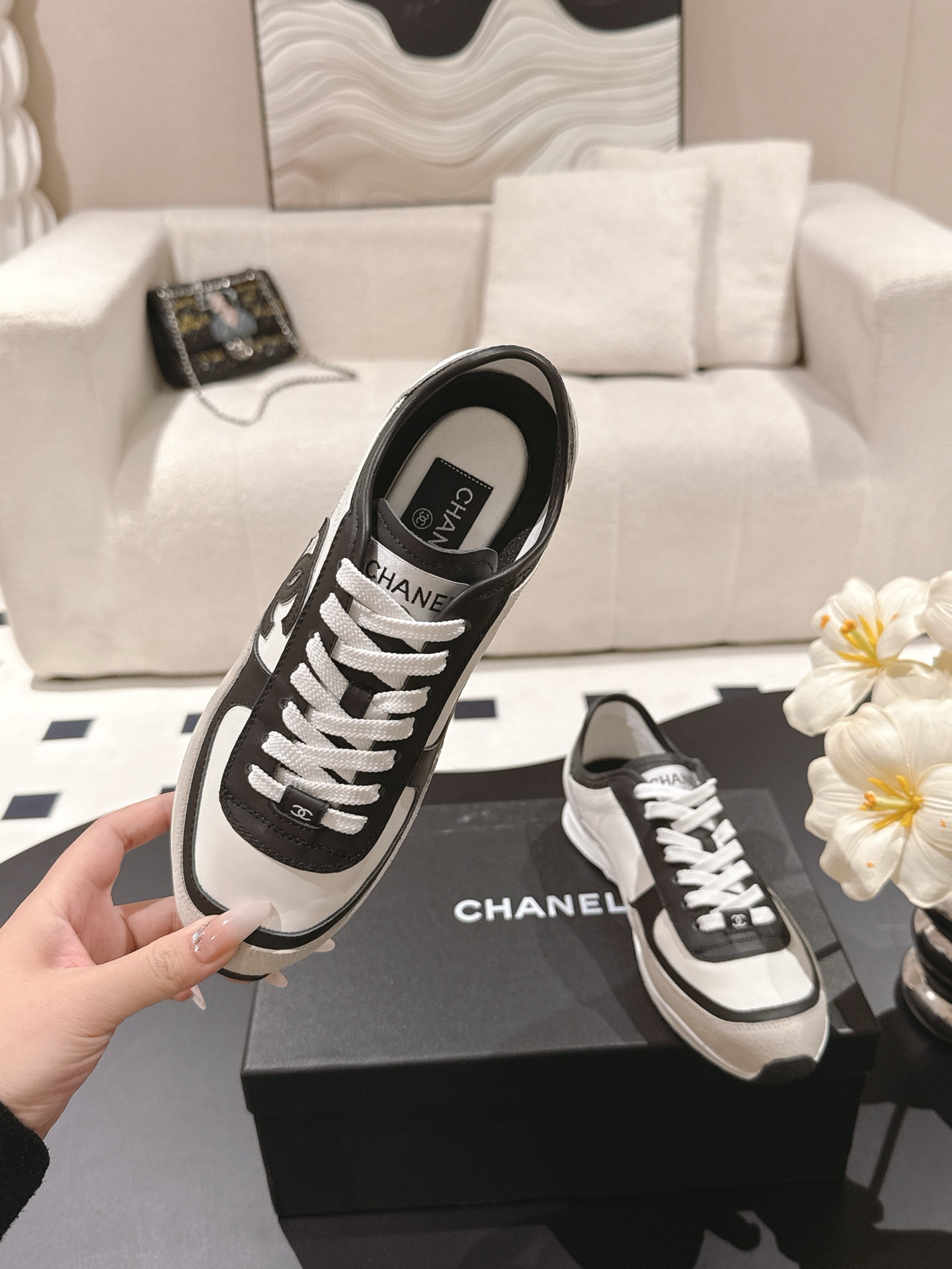 这款鞋子是AAAAA 1:1 质量 (非常棒). 使用了和原版一模一样的材料. 商标部分也保持了和香奈儿/Chanel一样. 图片拍摄是实物鞋子拍摄, 您所收到的实物保证和我们图片一模一样.