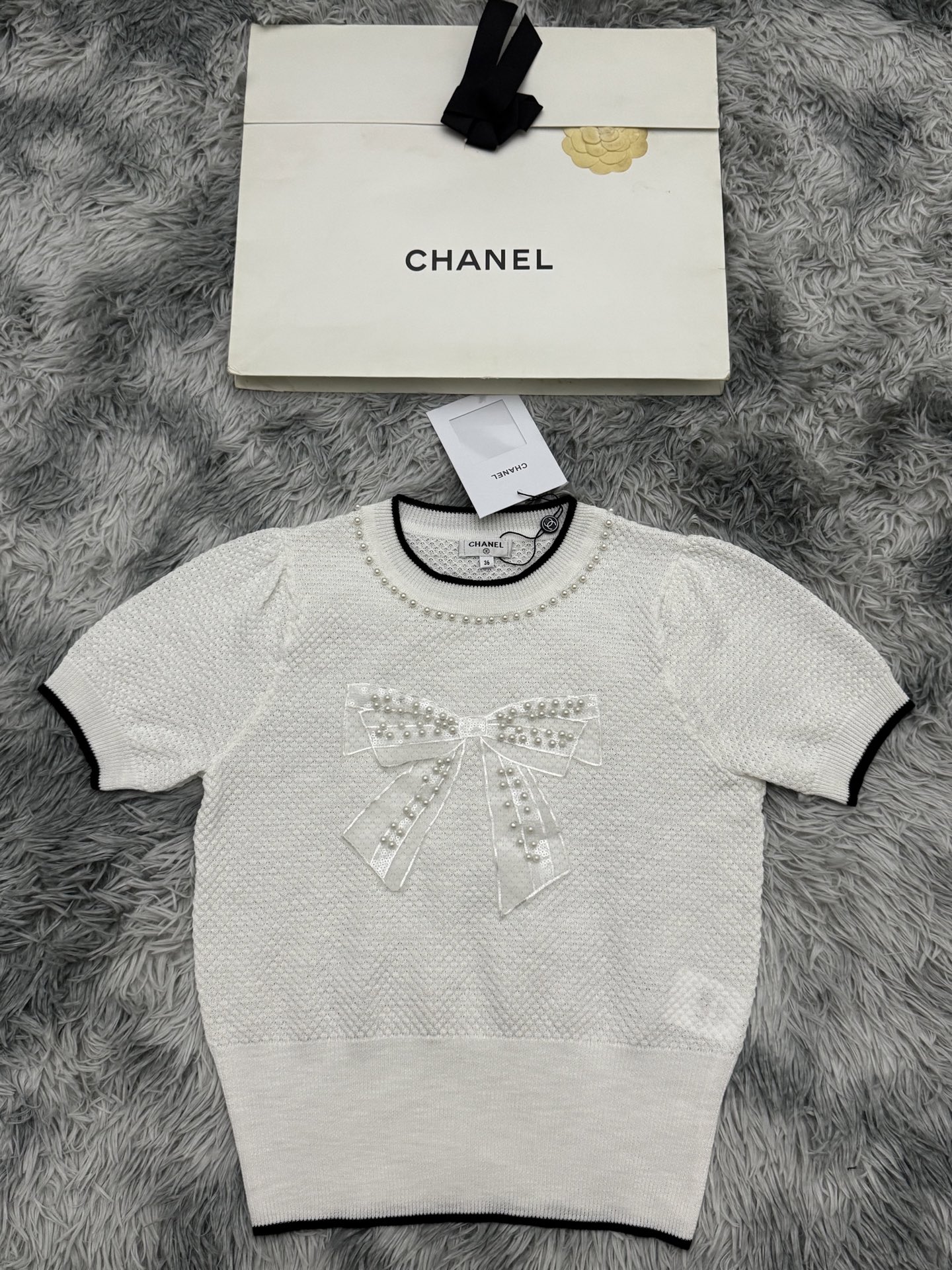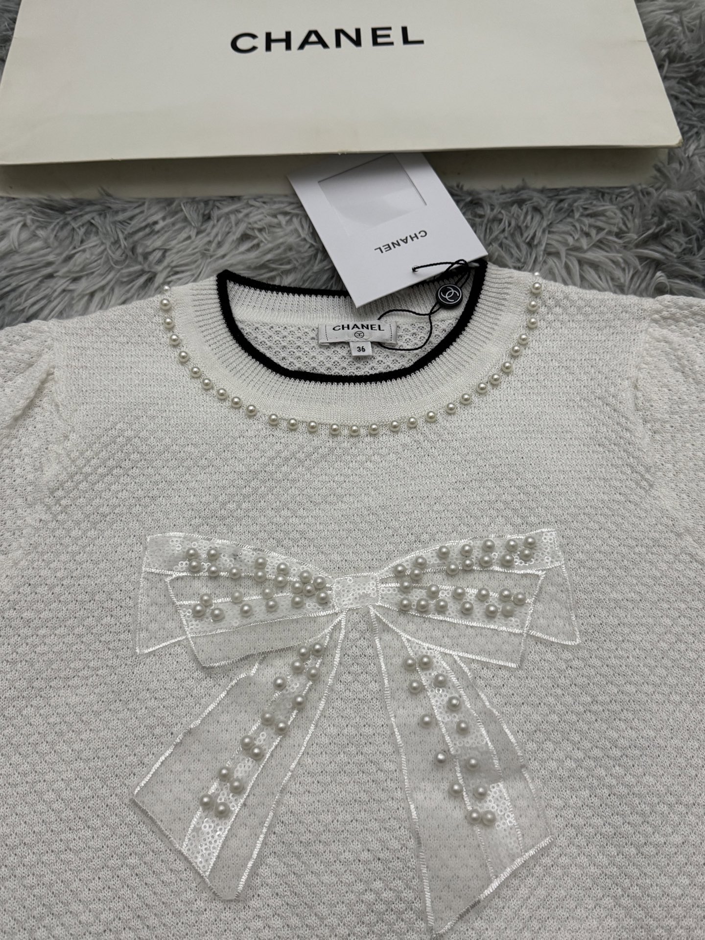 这款衣服是AAAAA 1:1 质量 (非常棒). 使用了和原版一模一样的材料. 商标部分也保持了和香奈儿/Chanel一样. 图片拍摄是实物衣服拍摄, 您所收到的实物保证和我们图片一模一样.