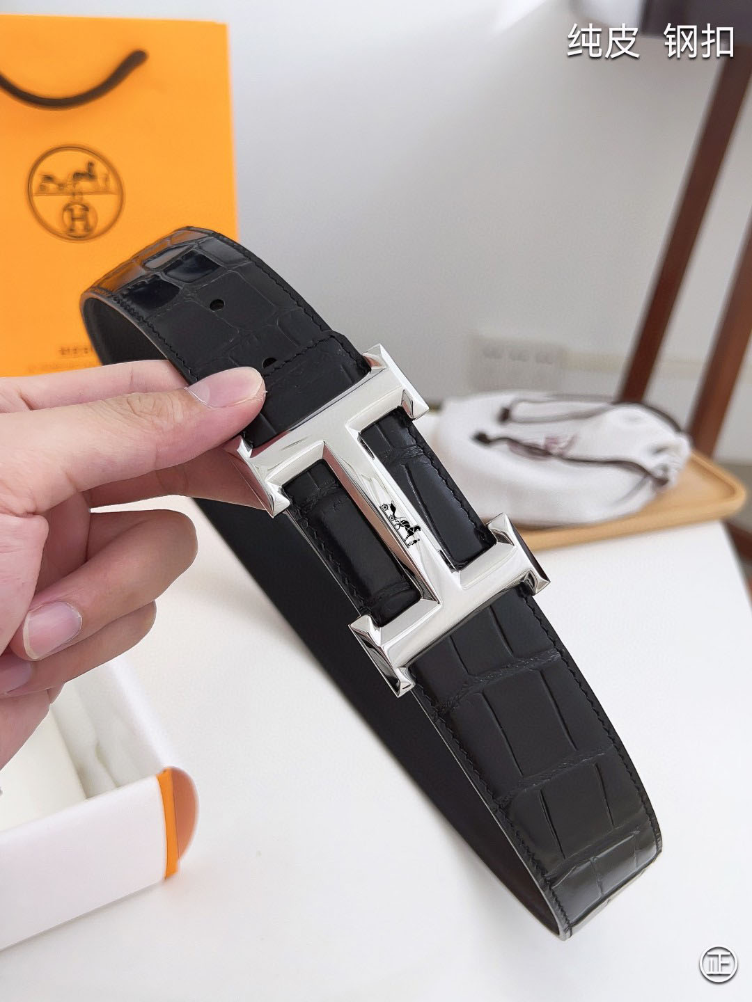 这款皮带是AAAAA 1:1 质量 (非常棒). 使用了和原版一模一样的材料. 商标部分也保持了和爱马仕/Hermes一样. 图片拍摄是实物皮带拍摄, 您所收到的实物保证和我们图片一模一样.