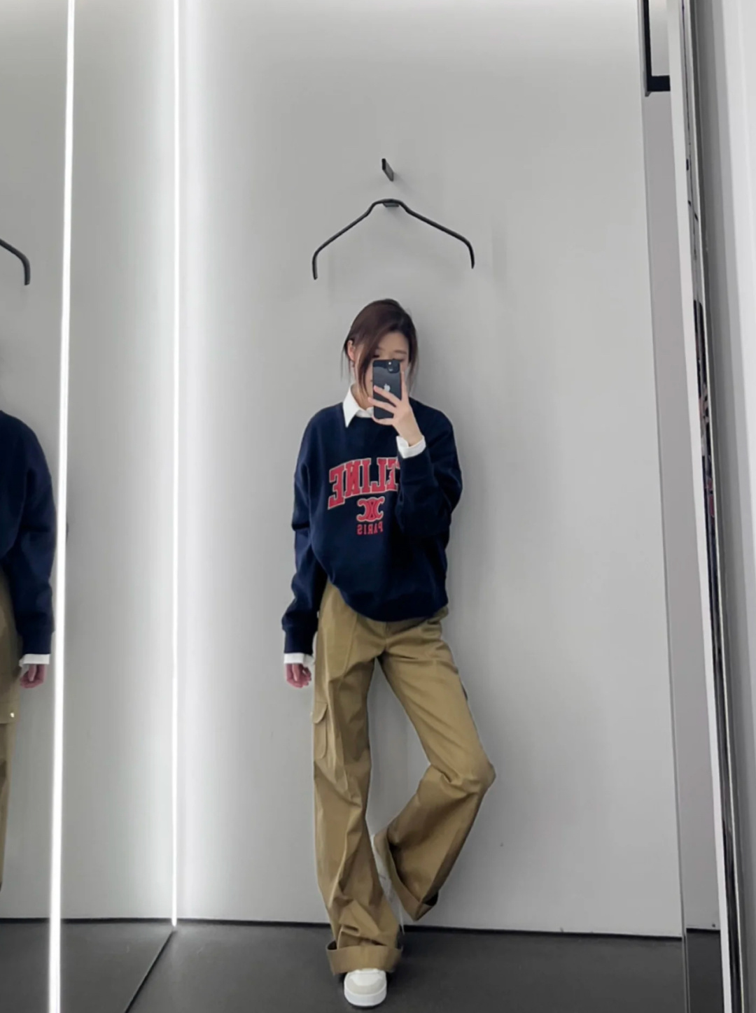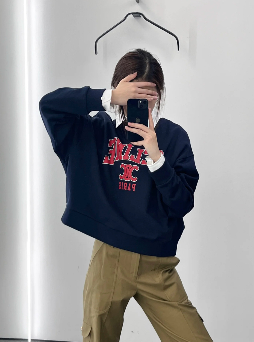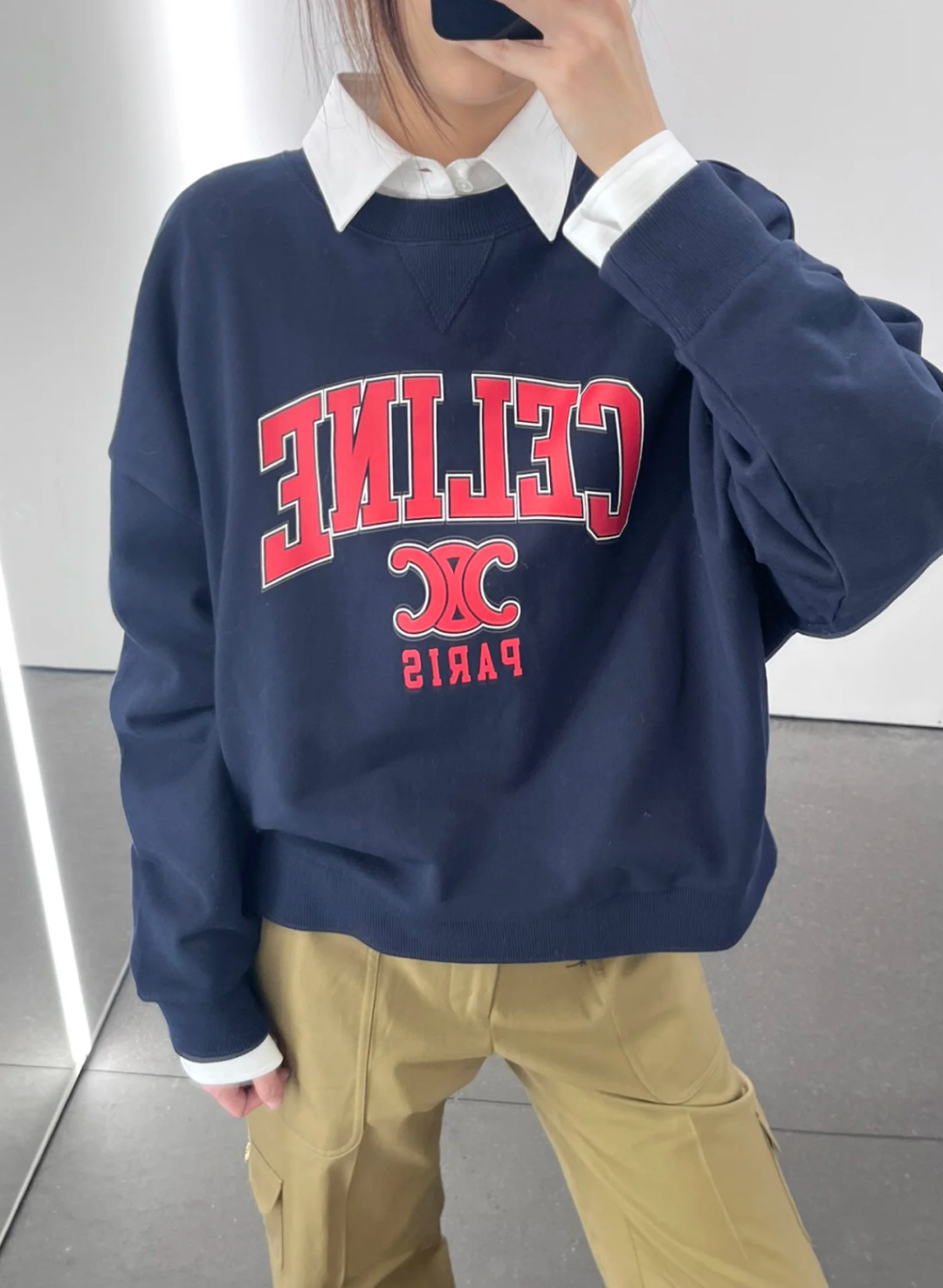 这款衣服是AAAAA 1:1 质量 (非常棒). 使用了和原版一模一样的材料. 商标部分也保持了和思琳/Celine一样. 图片拍摄是实物衣服拍摄, 您所收到的实物保证和我们图片一模一样.