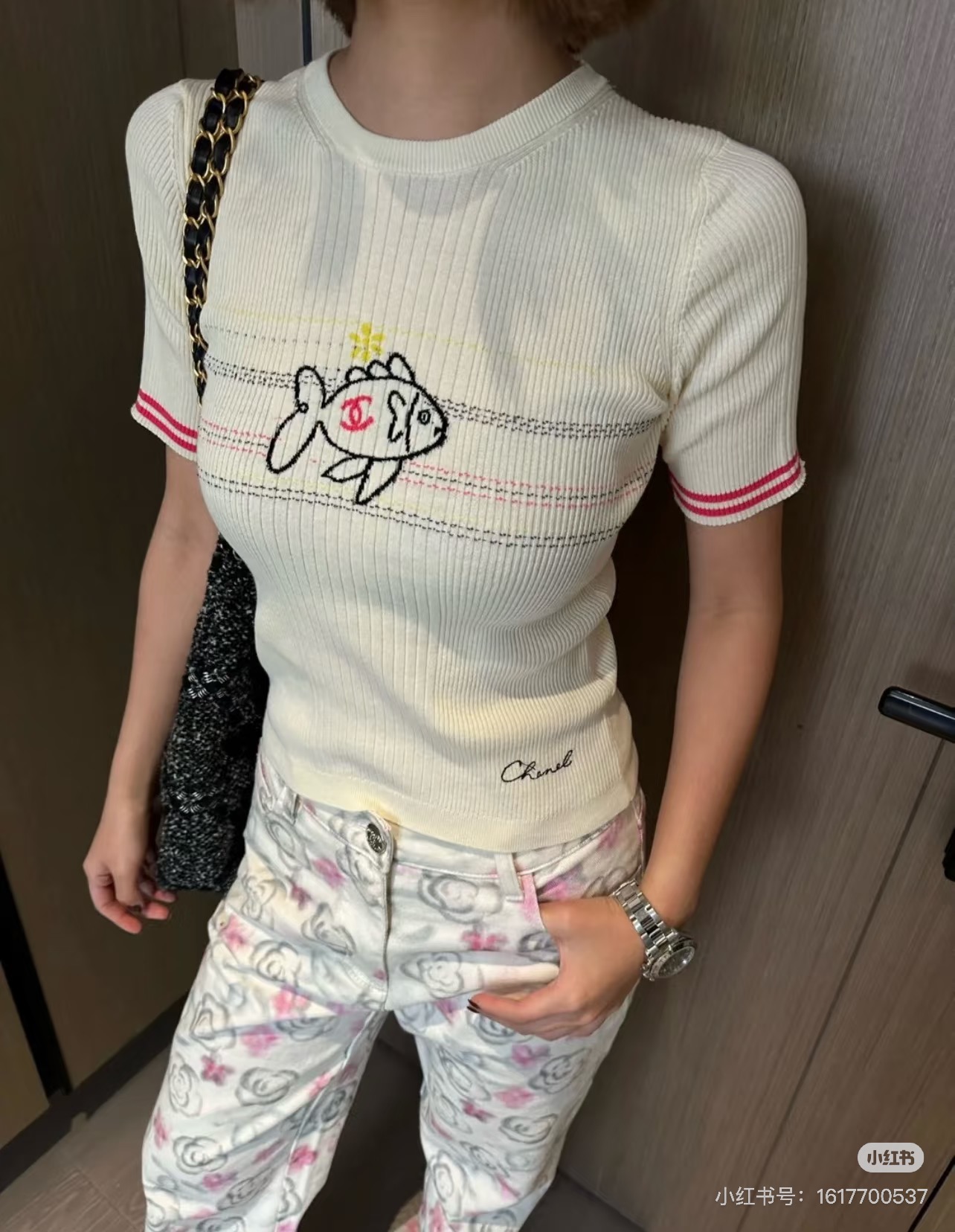 这款衣服是AAAAA 1:1 质量 (非常棒). 使用了和原版一模一样的材料. 商标部分也保持了和香奈儿/Chanel一样. 图片拍摄是实物衣服拍摄, 您所收到的实物保证和我们图片一模一样.