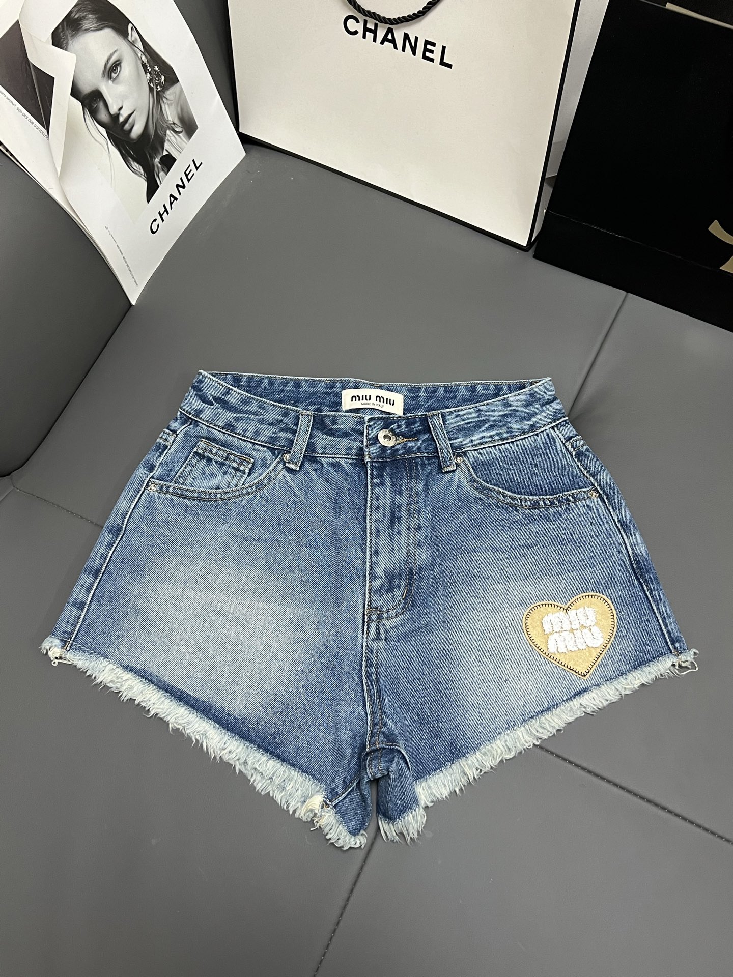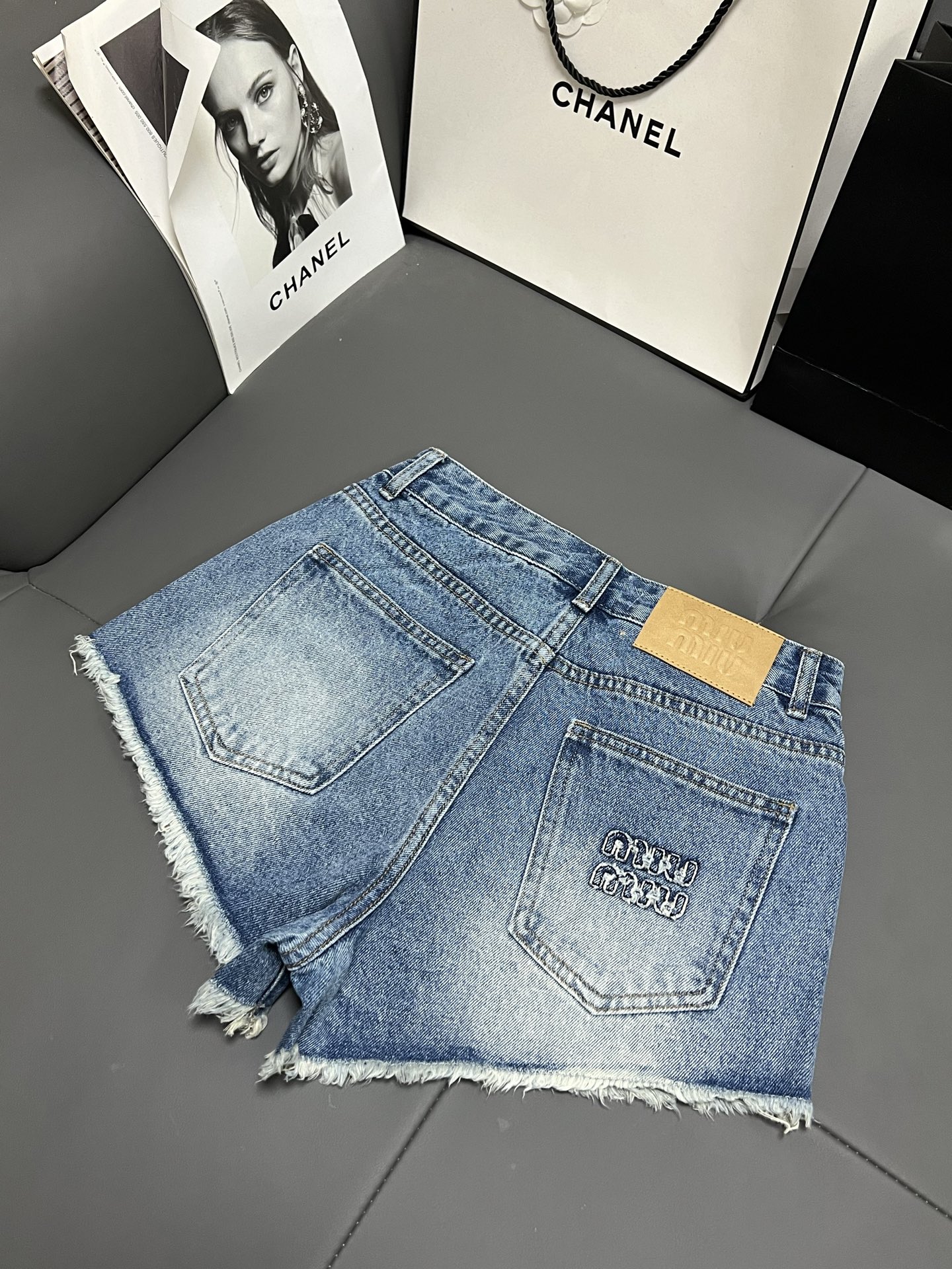 这款衣服是AAAAA 1:1 质量 (非常棒). 使用了和原版一模一样的材料. 商标部分也保持了和缪缪/Miu Miu一样. 图片拍摄是实物衣服拍摄, 您所收到的实物保证和我们图片一模一样.