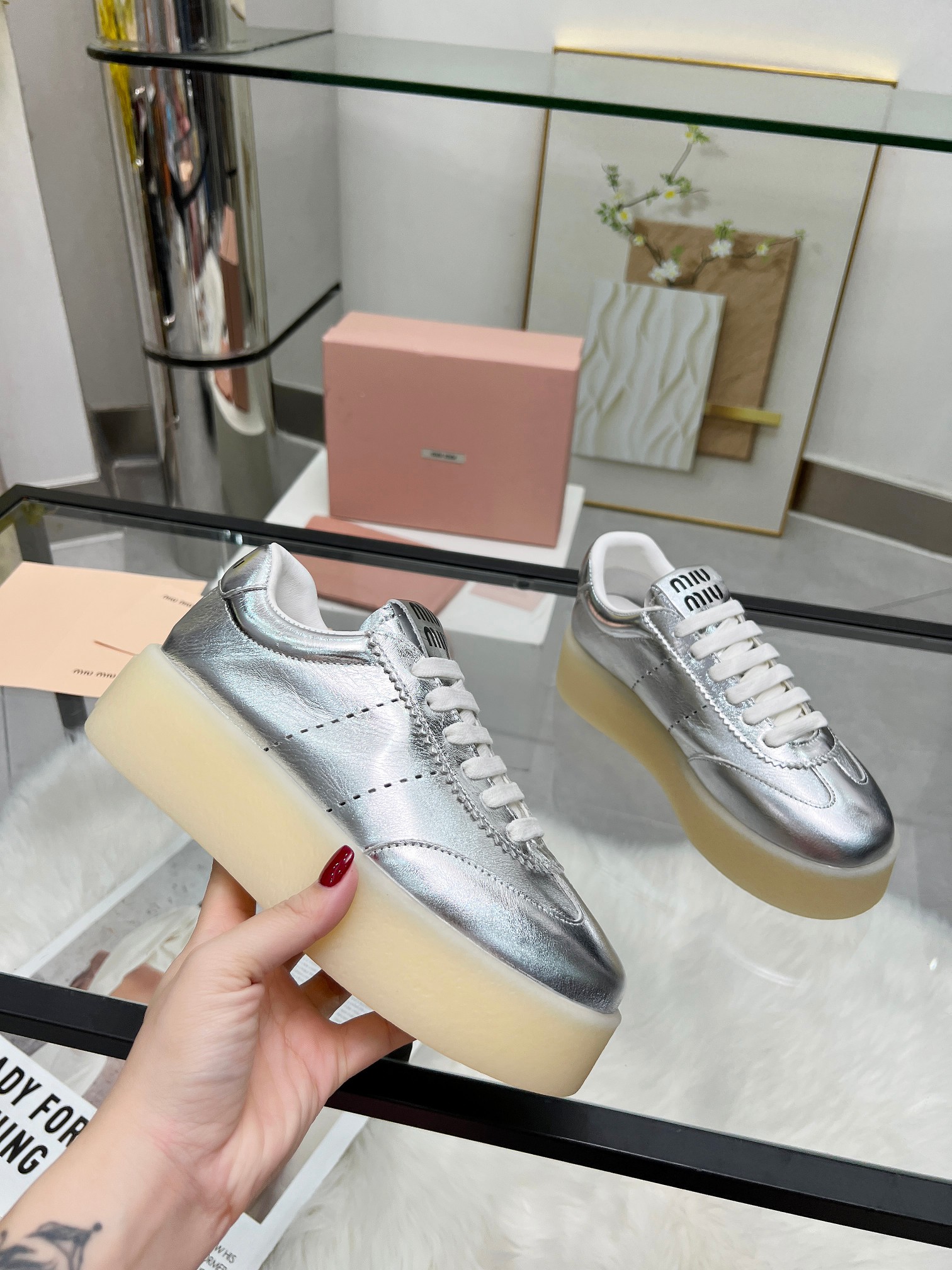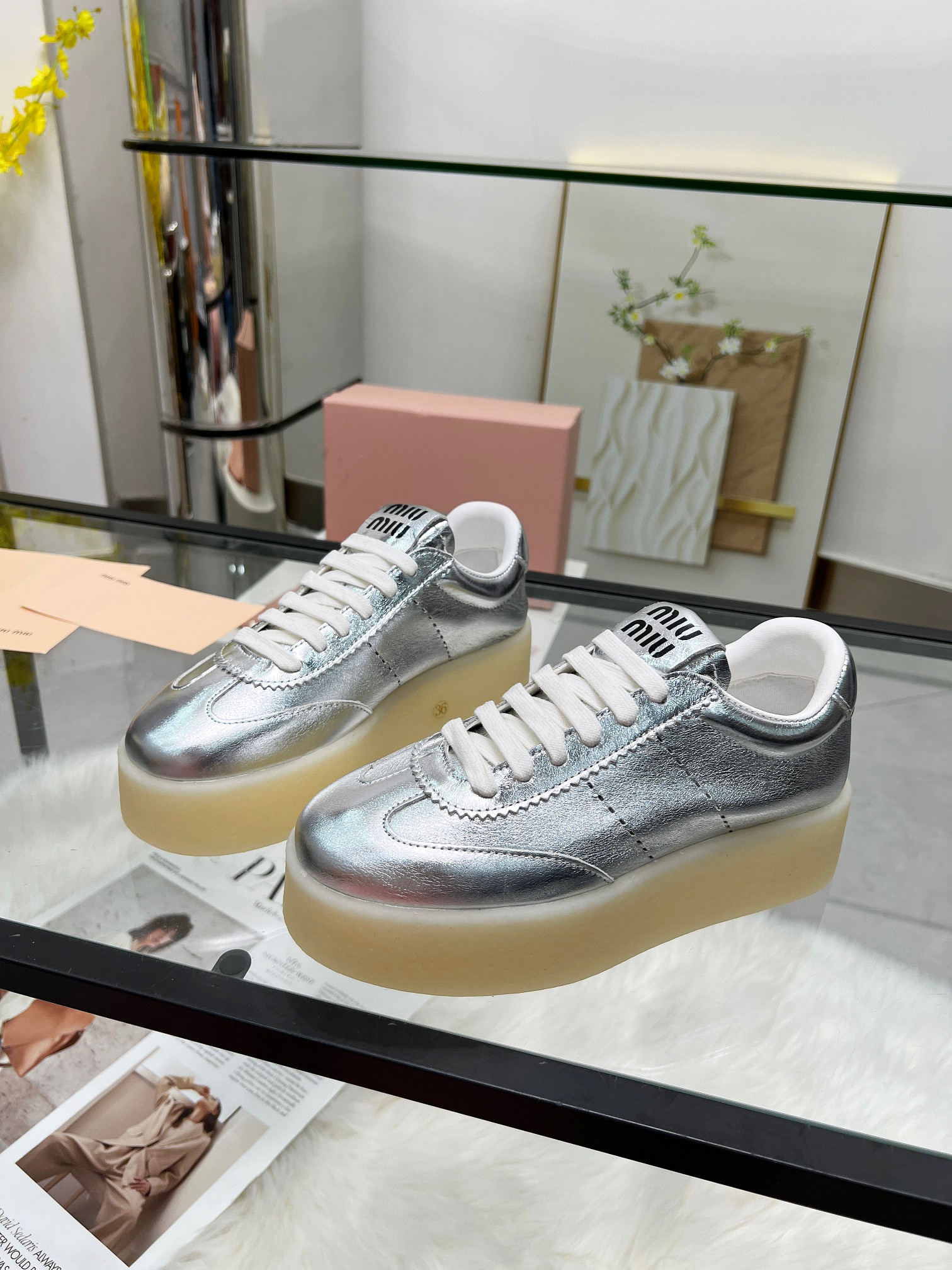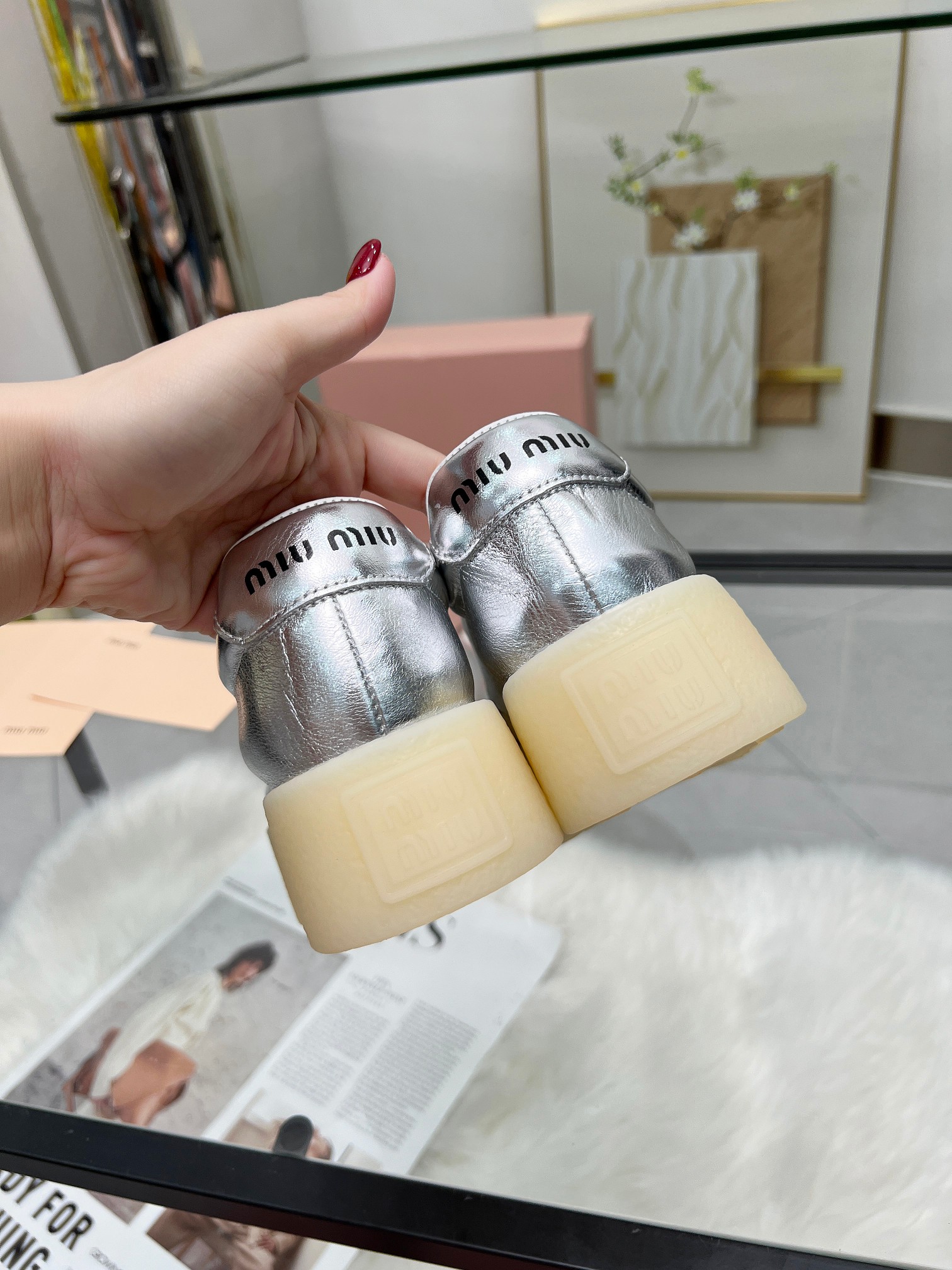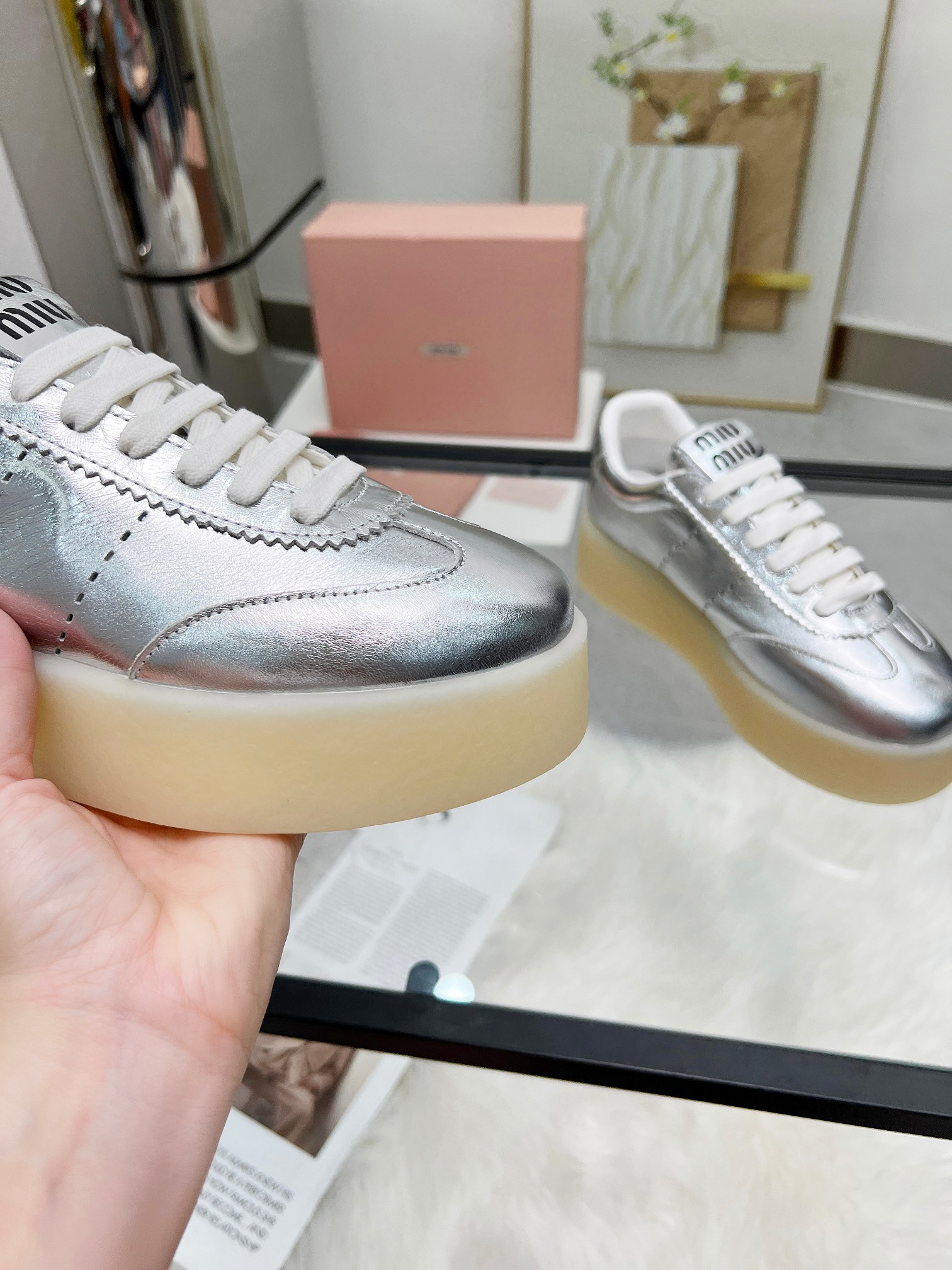 这款鞋子是AAAAA 1:1 质量 (非常棒). 使用了和原版一模一样的材料. 商标部分也保持了和缪缪/Miu Miu一样. 图片拍摄是实物鞋子拍摄, 您所收到的实物保证和我们图片一模一样.