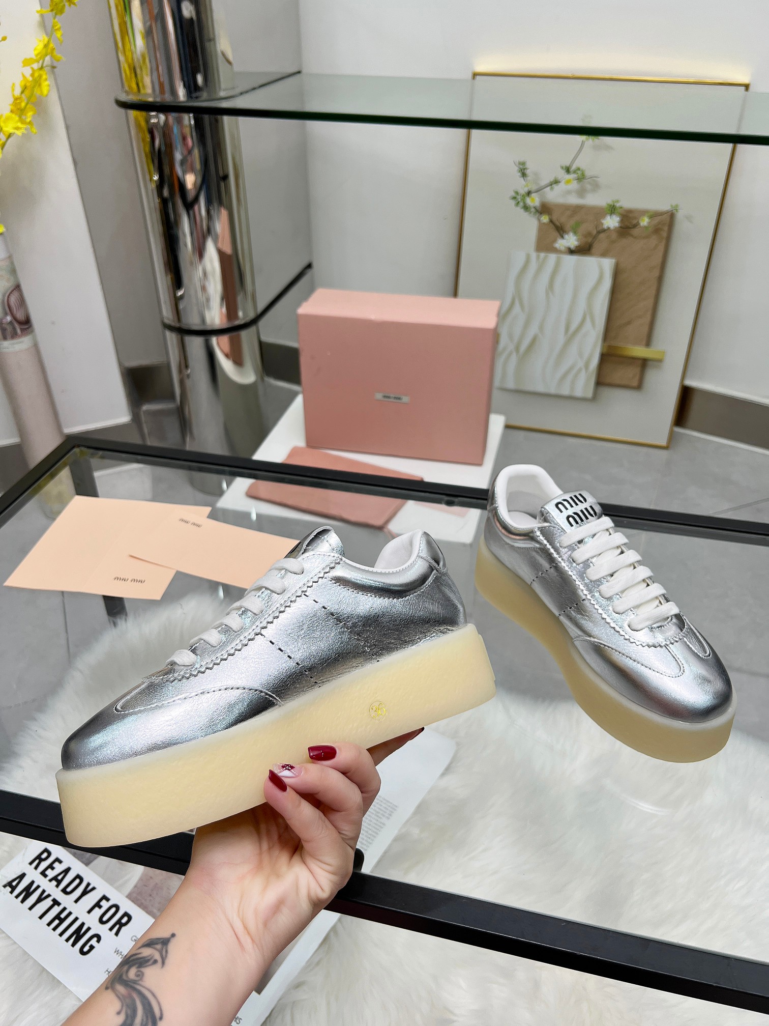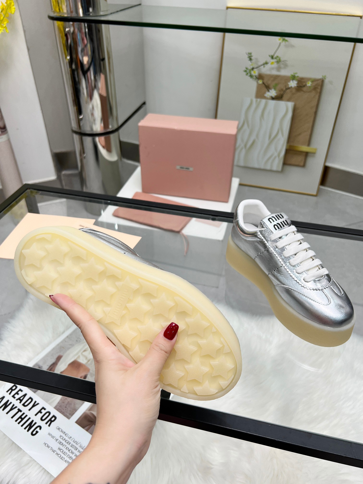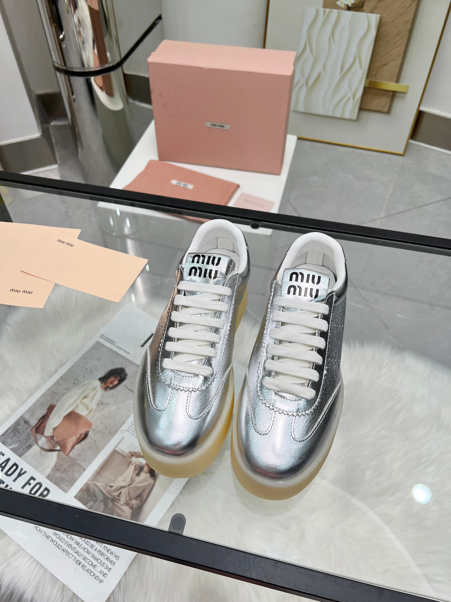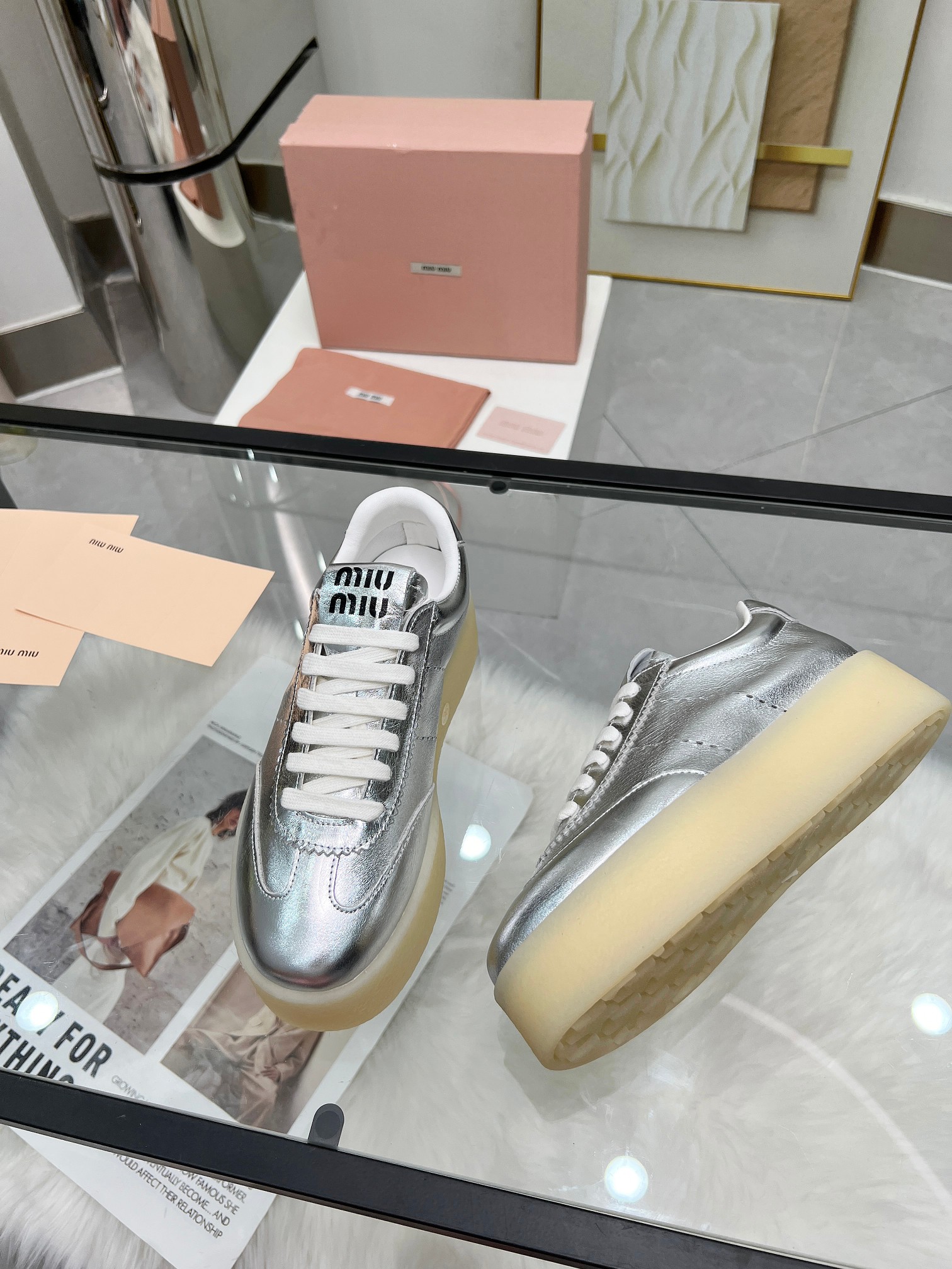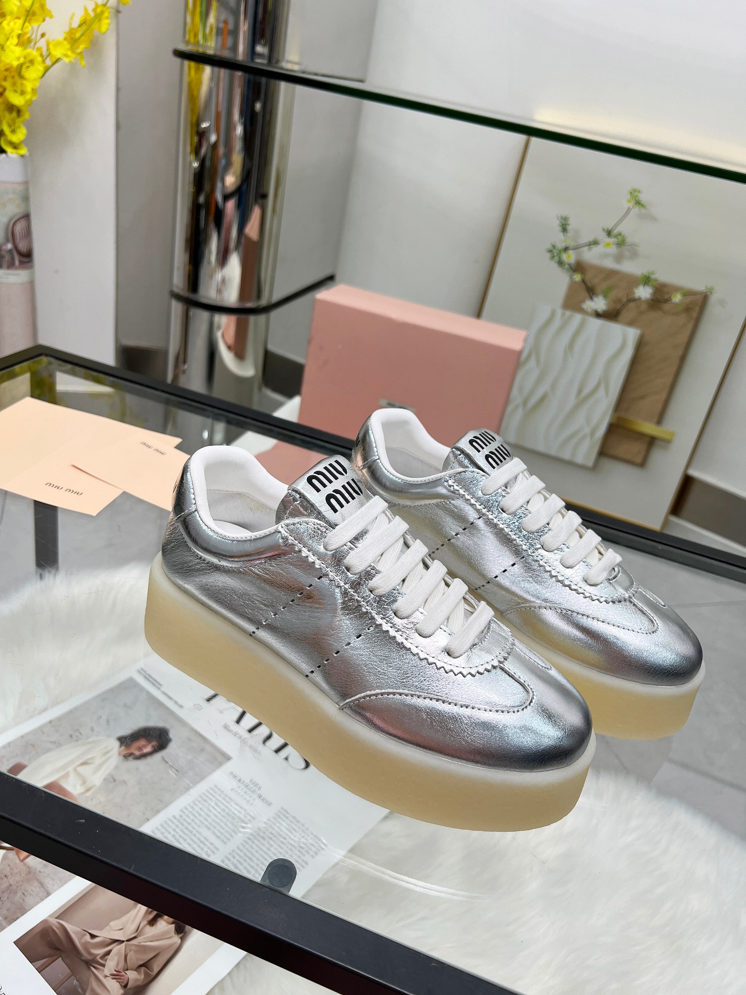 这款鞋子是AAAAA 1:1 质量 (非常棒). 使用了和原版一模一样的材料. 商标部分也保持了和缪缪/Miu Miu一样. 图片拍摄是实物鞋子拍摄, 您所收到的实物保证和我们图片一模一样.