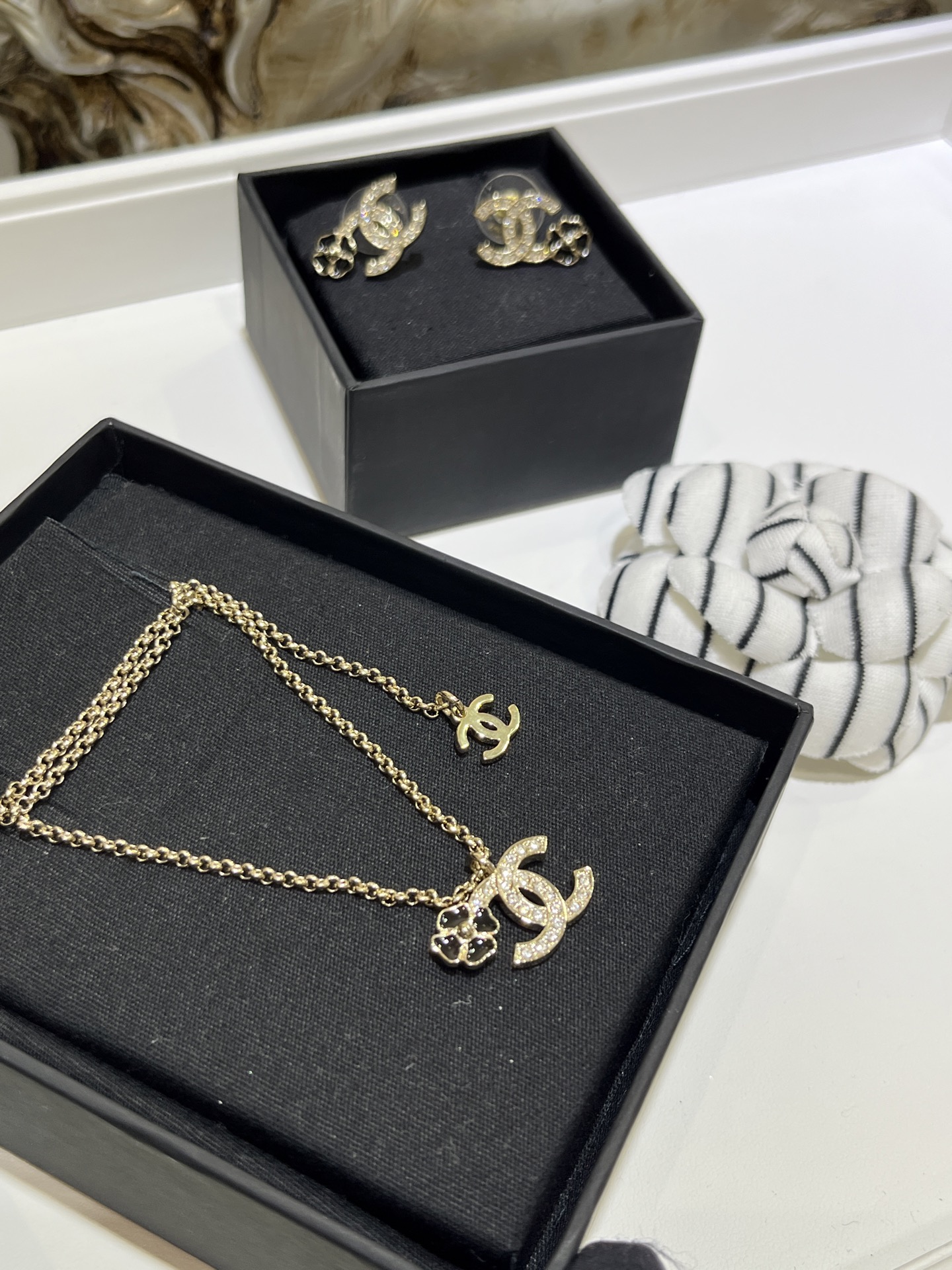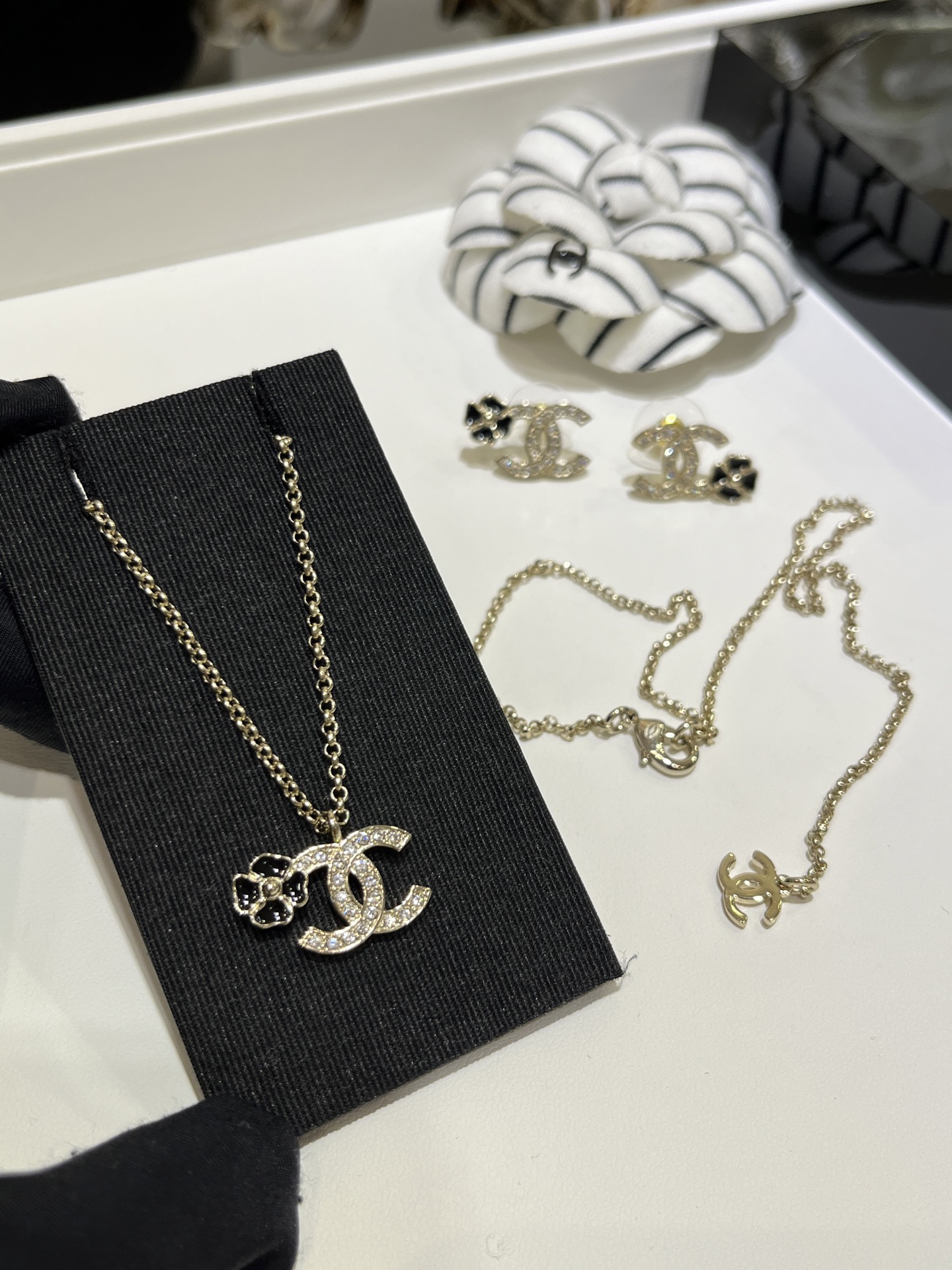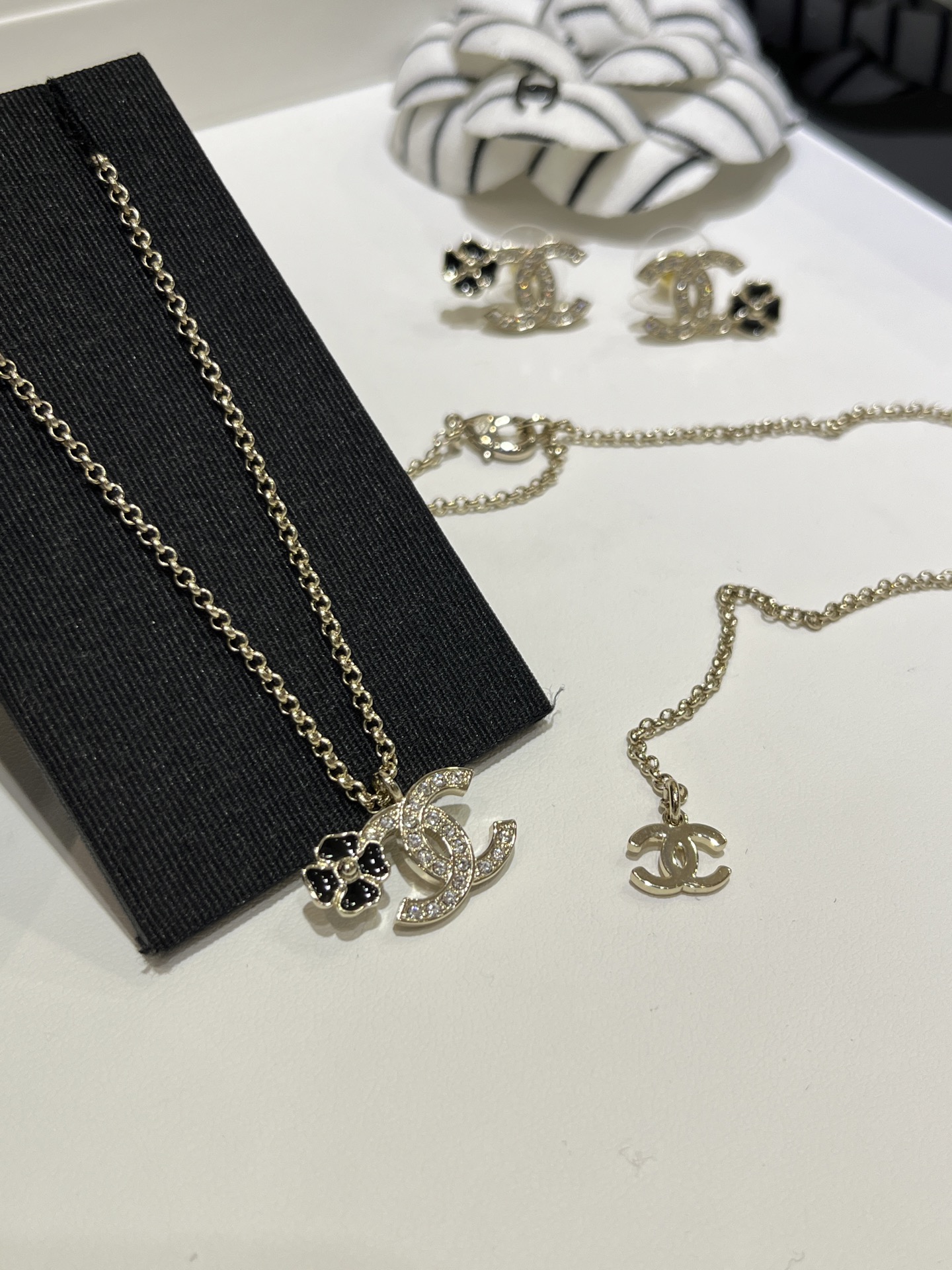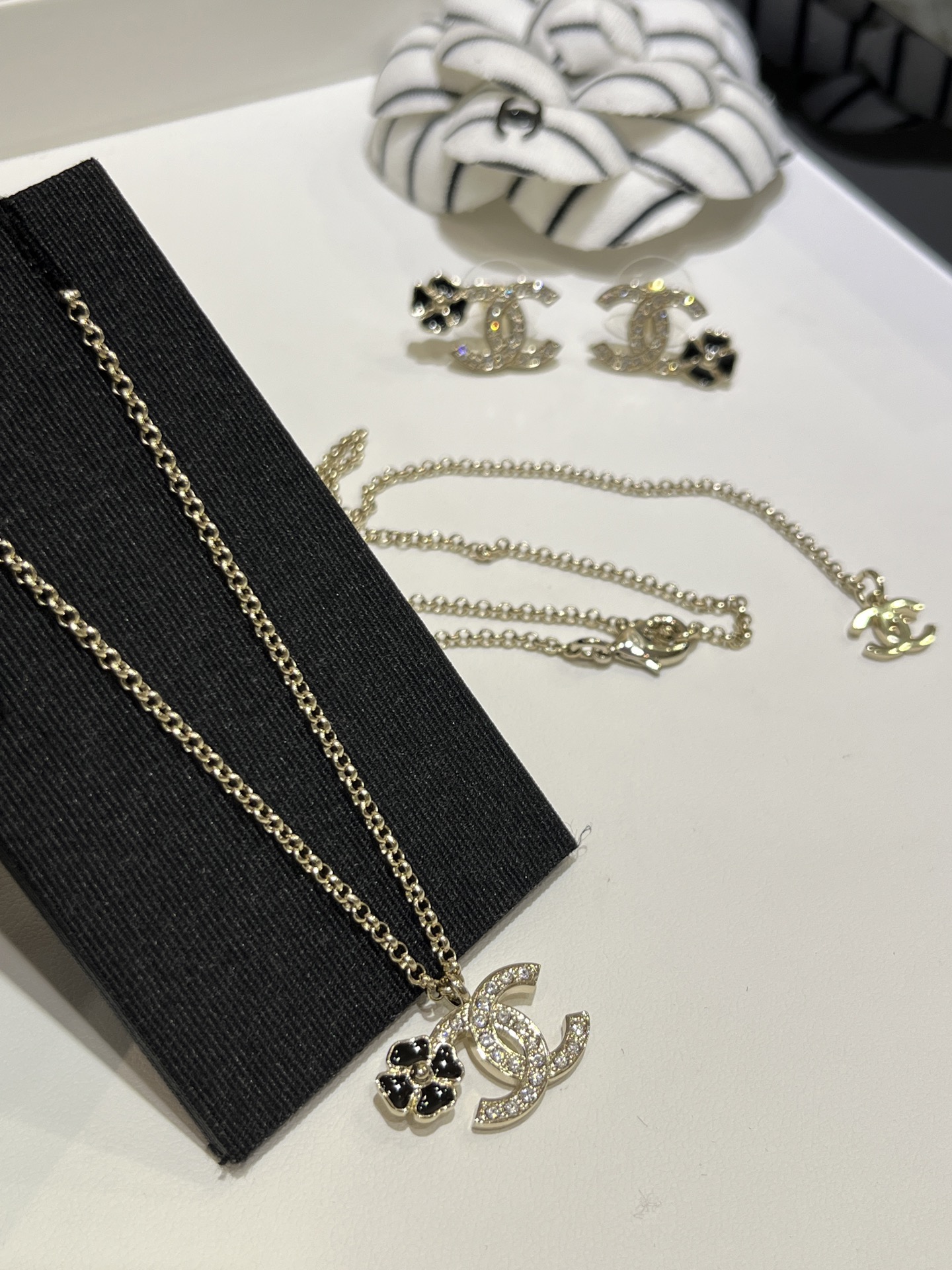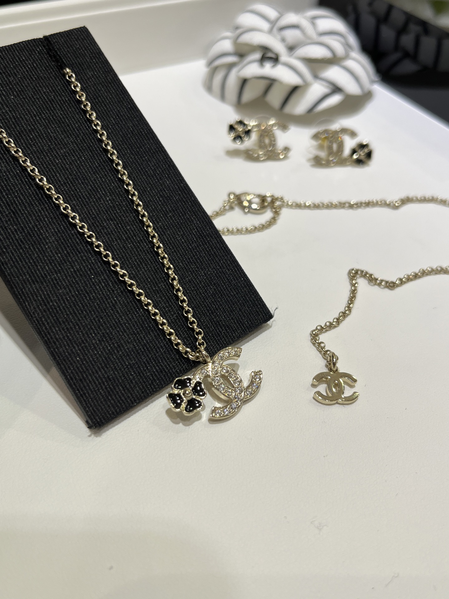 这款首饰是AAAAA 1:1 质量 (非常棒). 使用了和原版一模一样的材料. 商标部分也保持了和香奈儿/Chanel一样. 图片拍摄是实物首饰拍摄, 您所收到的实物保证和我们图片一模一样.