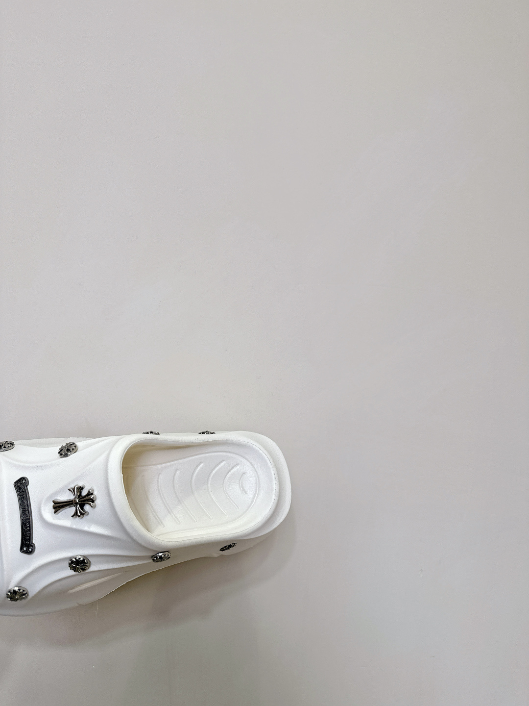 这款鞋子是AAAAA 1:1 质量 (非常棒). 使用了和原版一模一样的材料. 商标部分也保持了和克罗心/Chrome Hearts一样. 图片拍摄是实物鞋子拍摄, 您所收到的实物保证和我们图片一模一样.