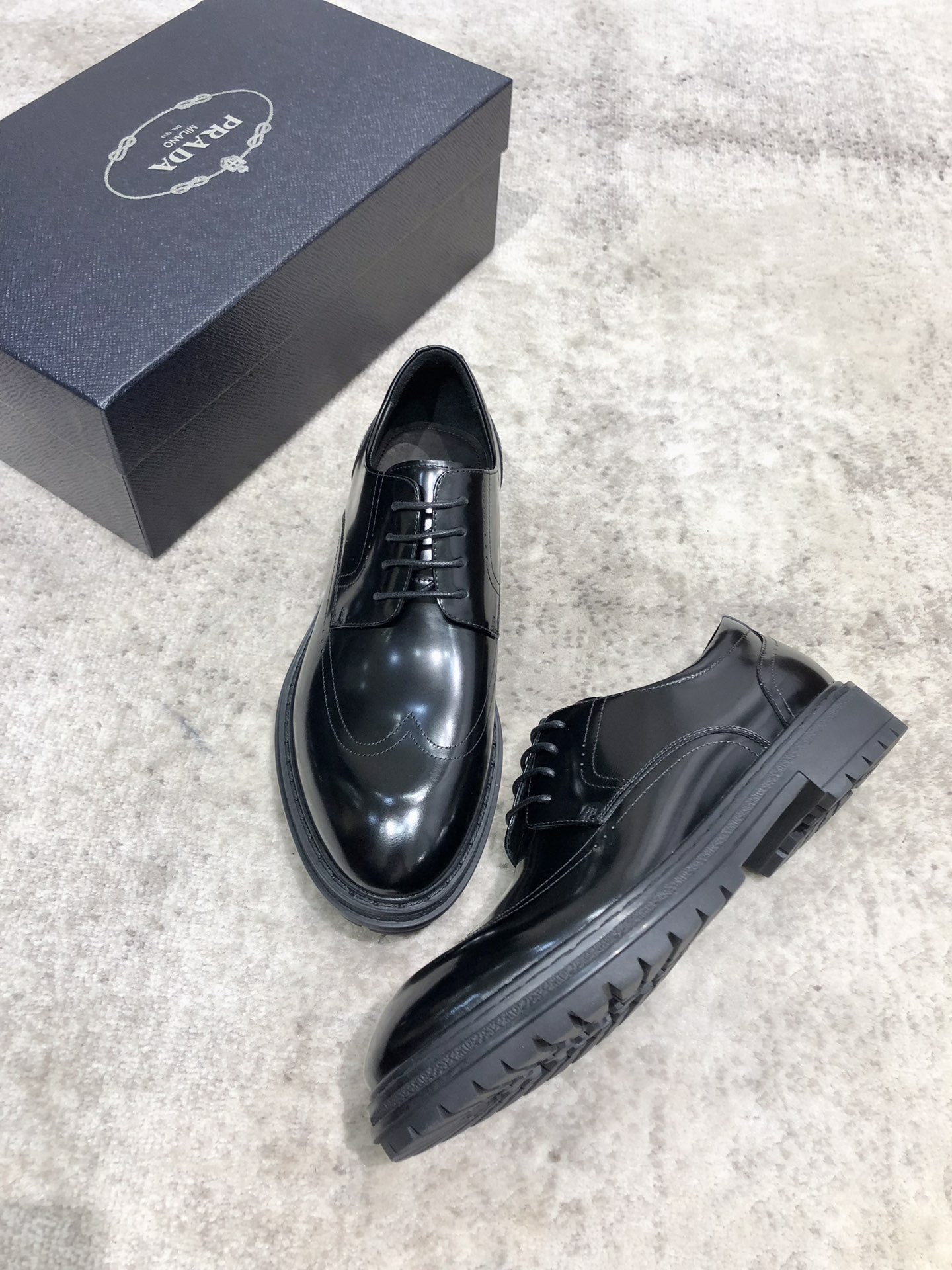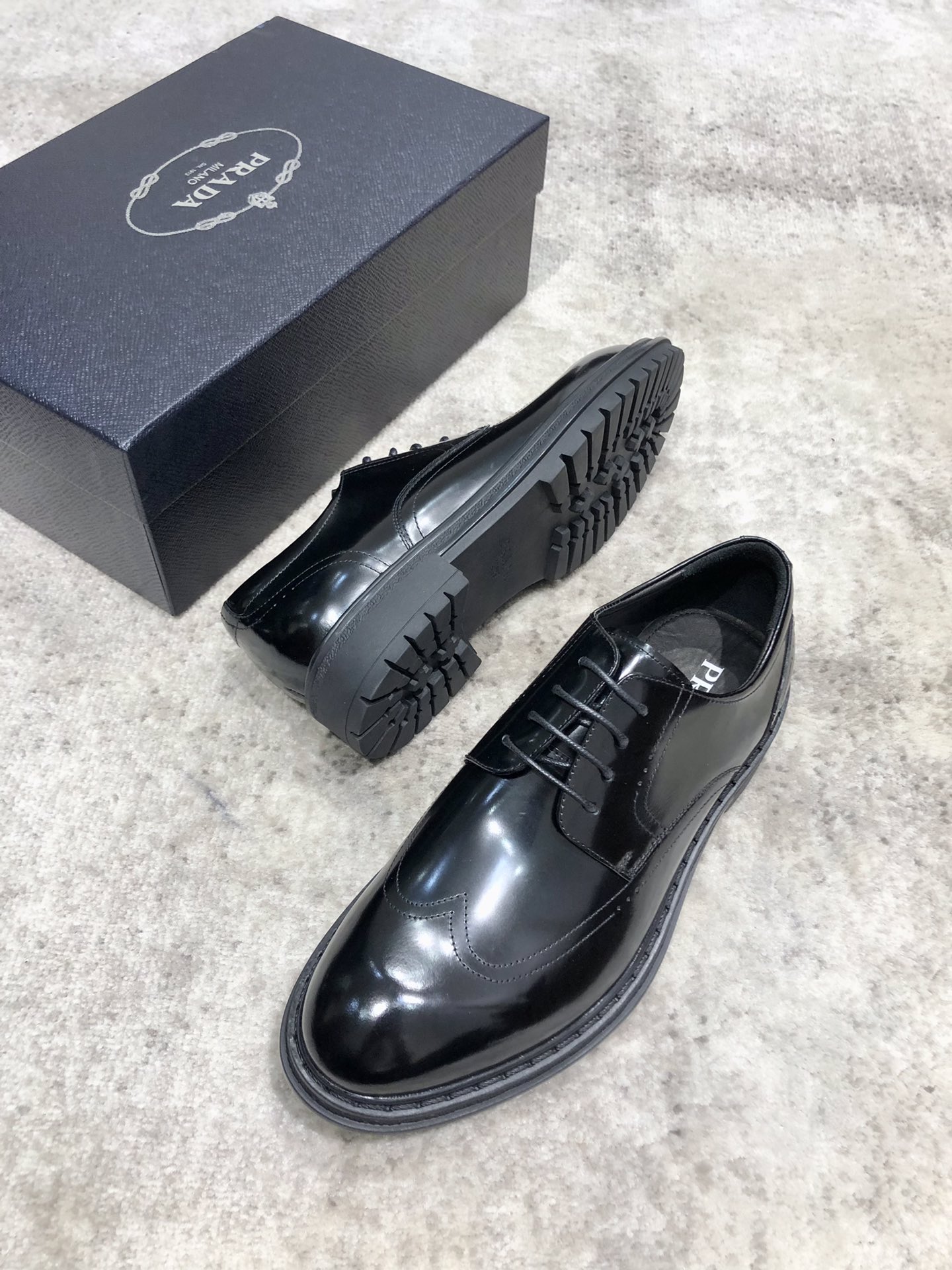这款鞋子是AAAAA 1:1 质量 (非常棒). 使用了和原版一模一样的材料. 商标部分也保持了和普拉达/Prada一样. 图片拍摄是实物鞋子拍摄, 您所收到的实物保证和我们图片一模一样.