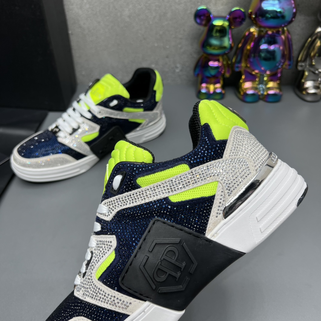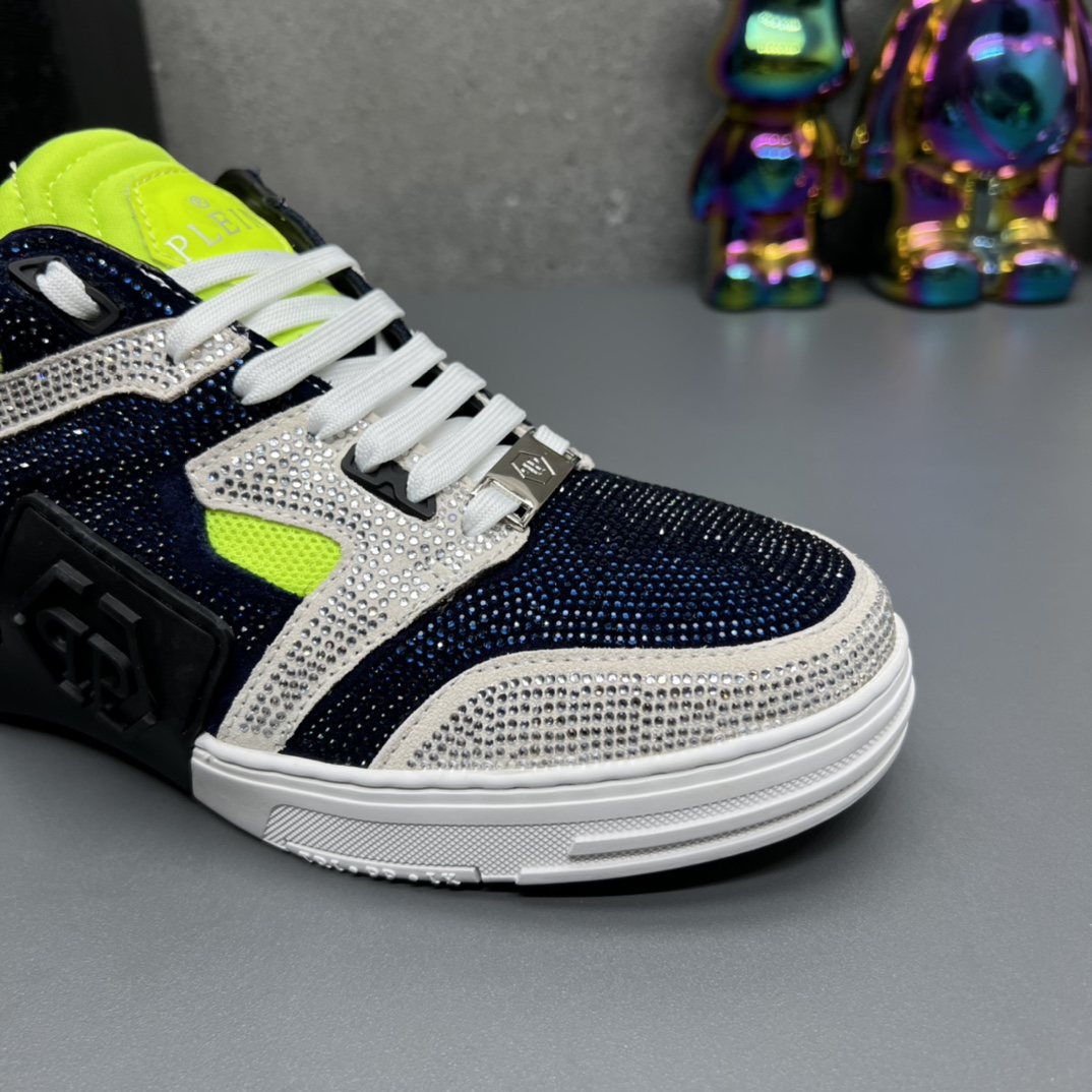 这款鞋子是AAAAA 1:1 质量 (非常棒). 使用了和原版一模一样的材料. 商标部分也保持了和菲利普·普林/Philipp Plein一样. 图片拍摄是实物鞋子拍摄, 您所收到的实物保证和我们图片一模一样.