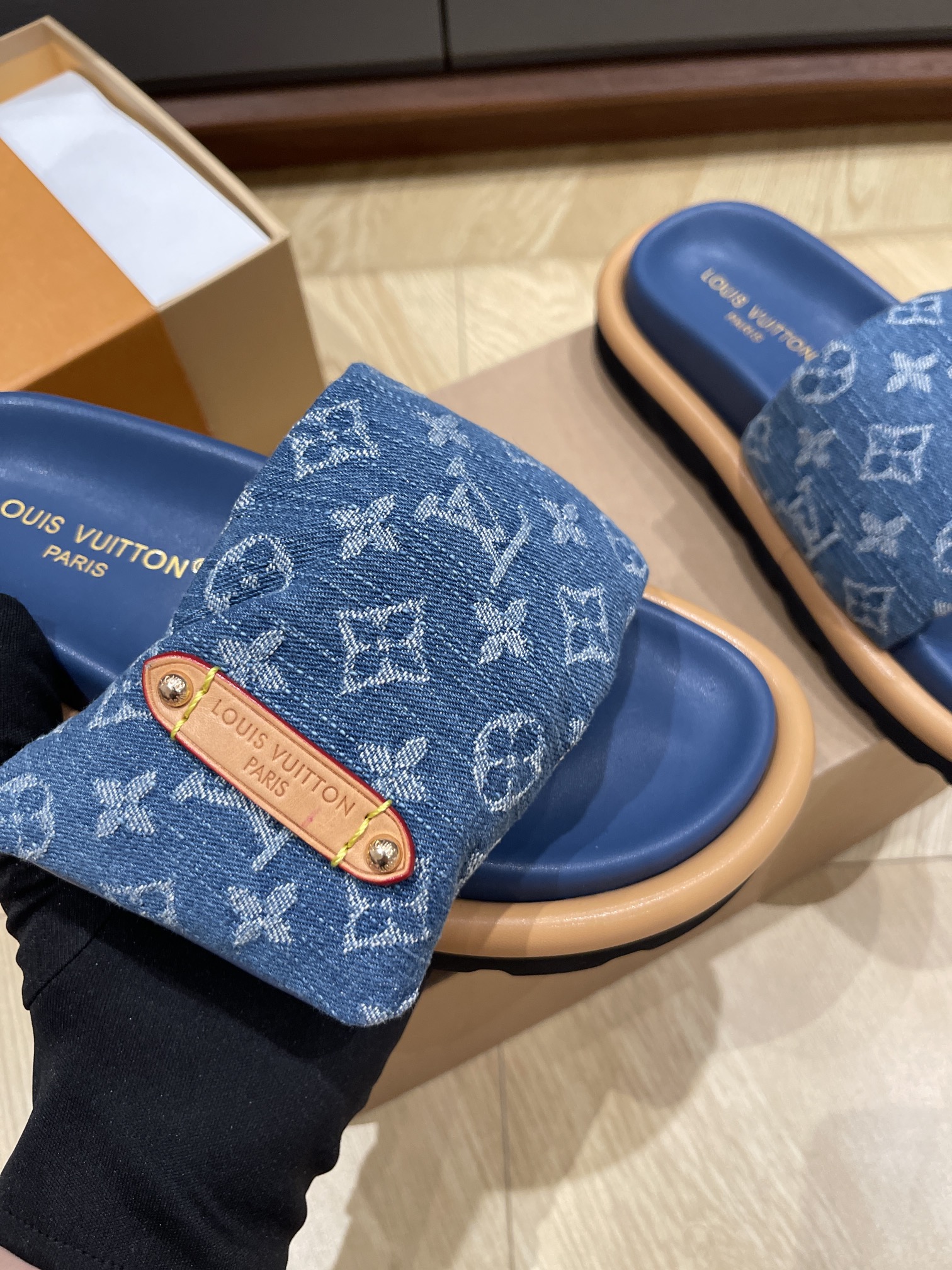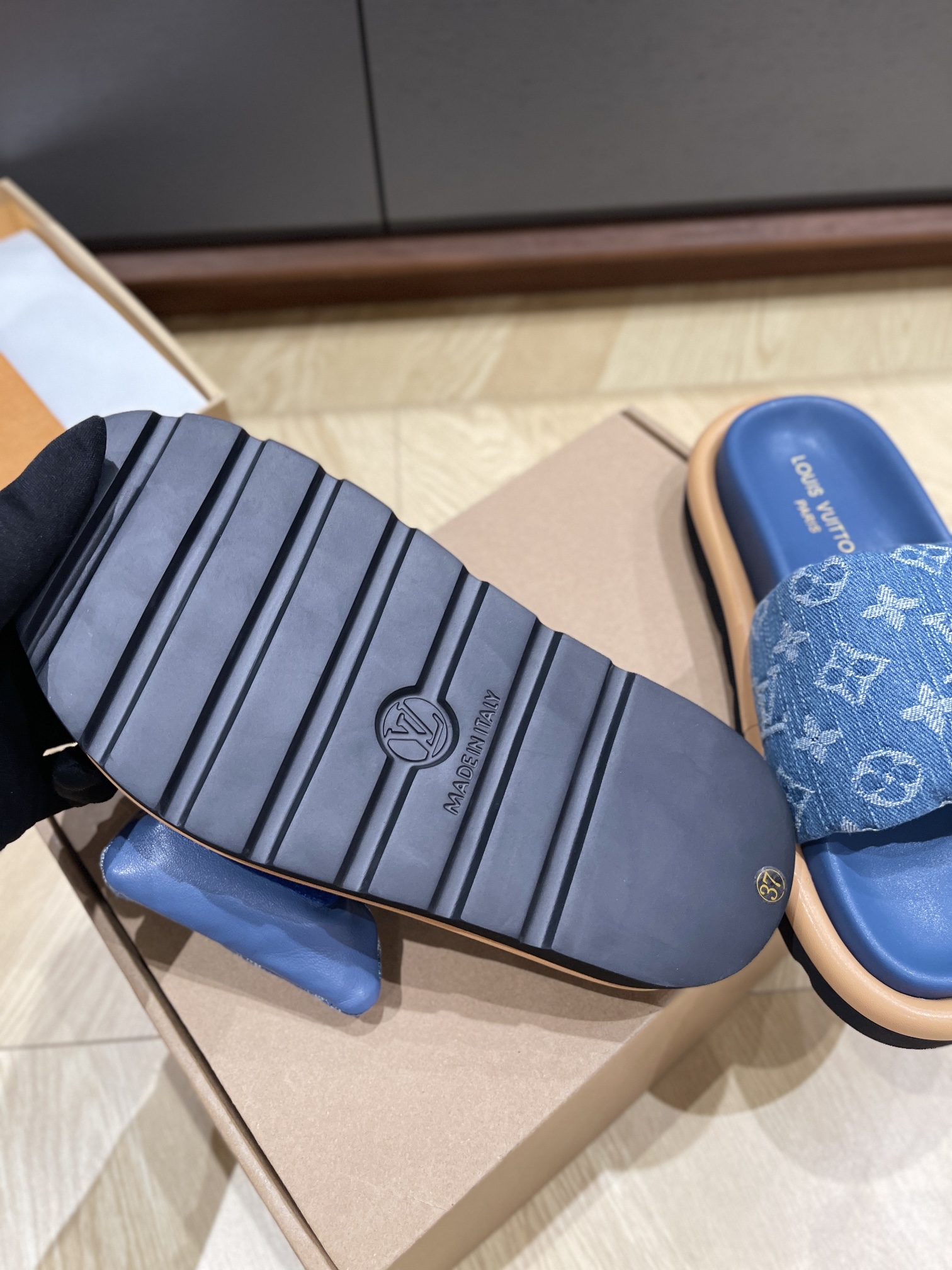 这款鞋子是AAAAA 1:1 质量 (非常棒). 使用了和原版一模一样的材料. 商标部分也保持了和路易威登/Louis Vuitton一样. 图片拍摄是实物鞋子拍摄, 您所收到的实物保证和我们图片一模一样.