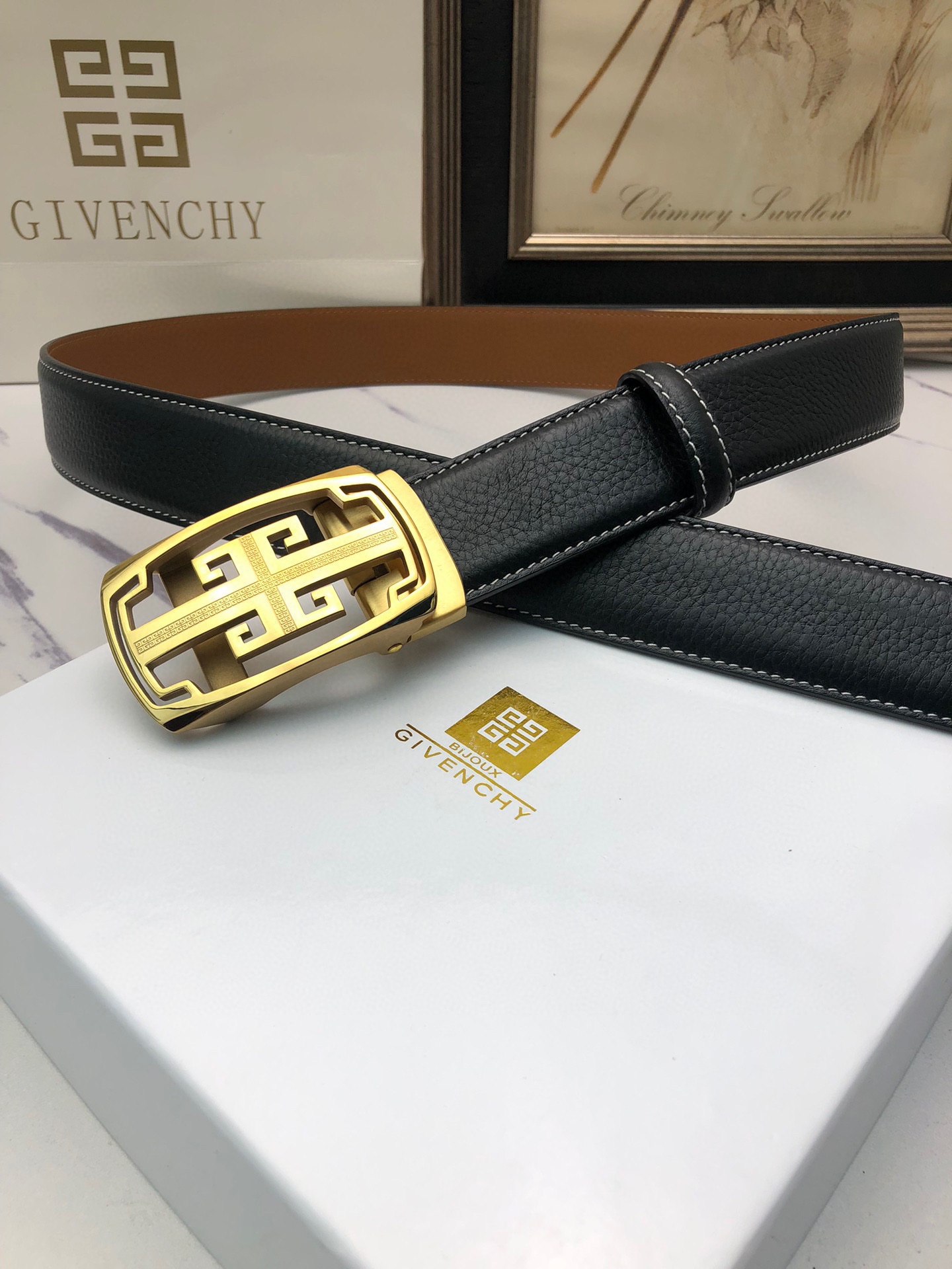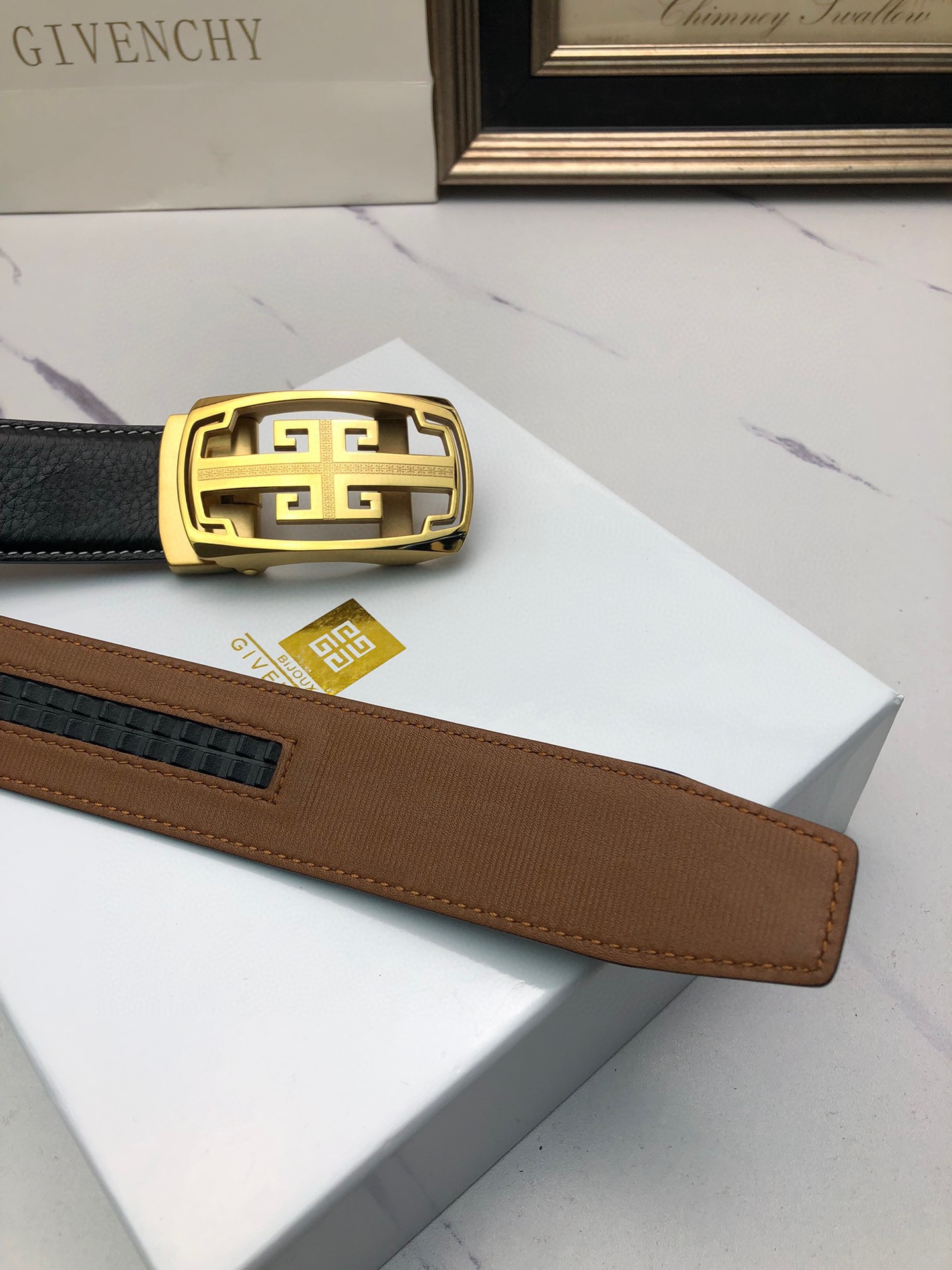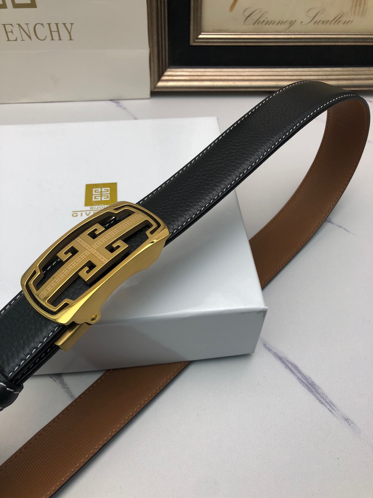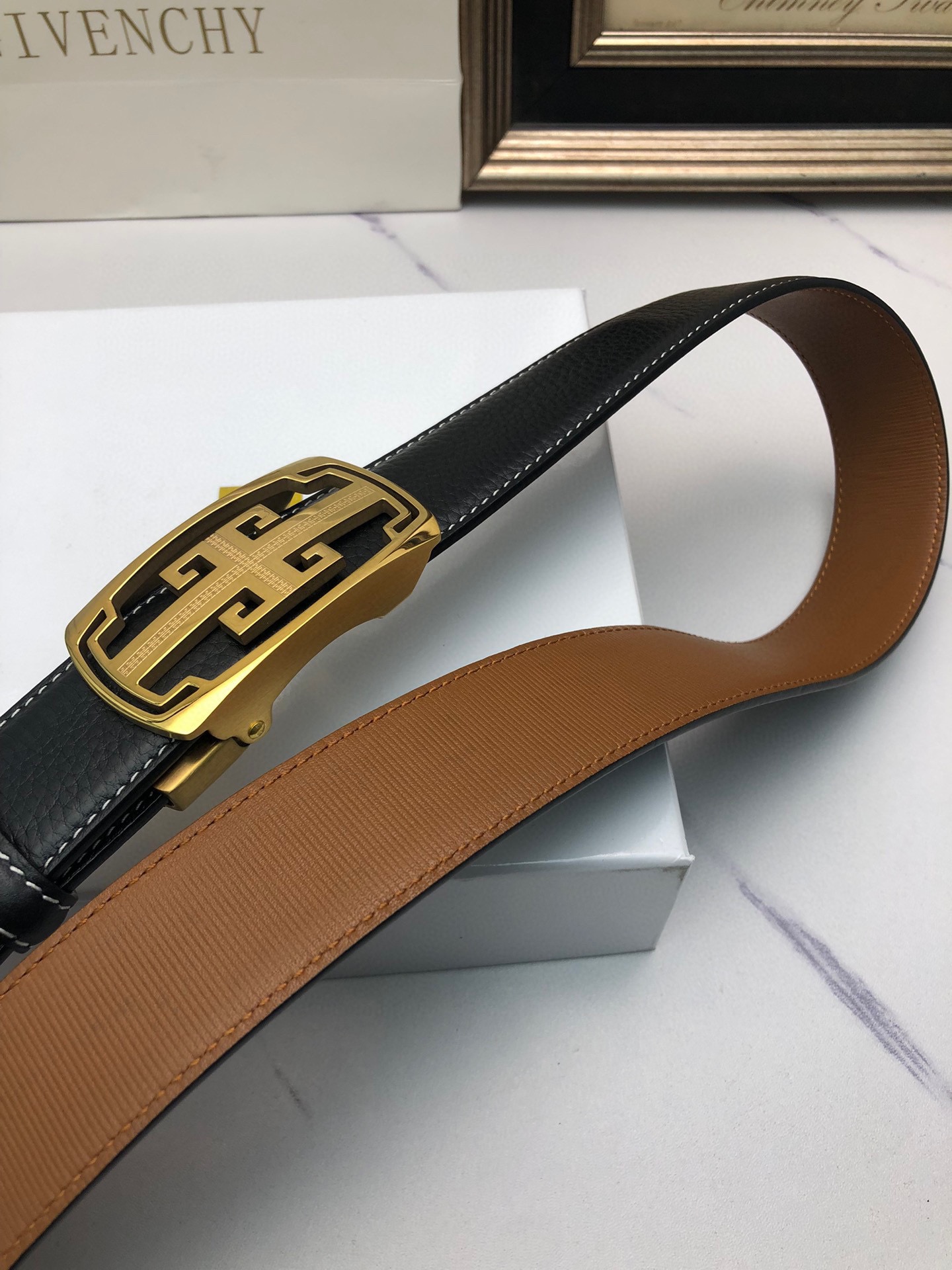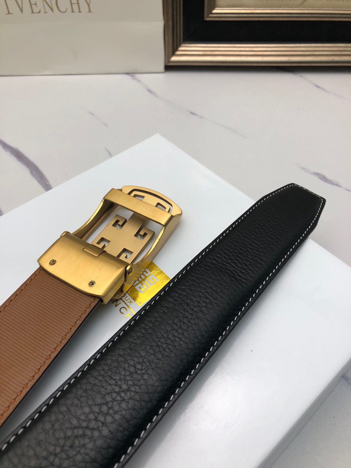 这款皮带是AAAAA 1:1 质量 (非常棒). 使用了和原版一模一样的材料. 商标部分也保持了和纪梵希/Givenchy一样. 图片拍摄是实物皮带拍摄, 您所收到的实物保证和我们图片一模一样.