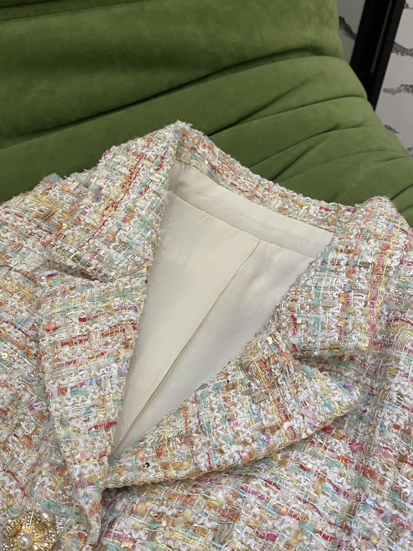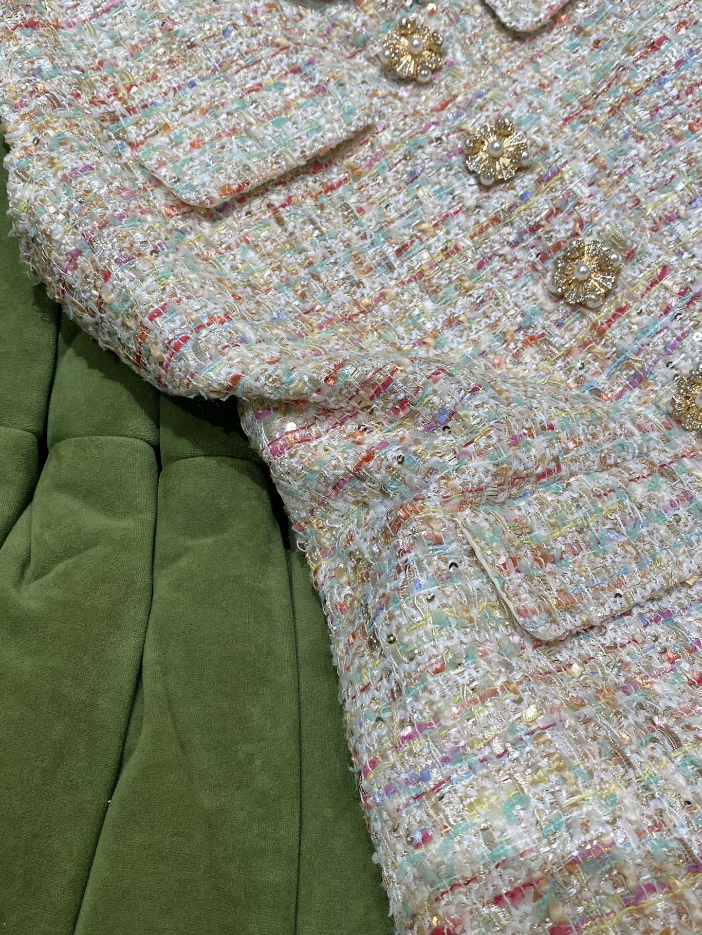 这款衣服是AAAAA 1:1 质量 (非常棒). 使用了和原版一模一样的材料. 商标部分也保持了和Self-Portrait一样. 图片拍摄是实物衣服拍摄, 您所收到的实物保证和我们图片一模一样.