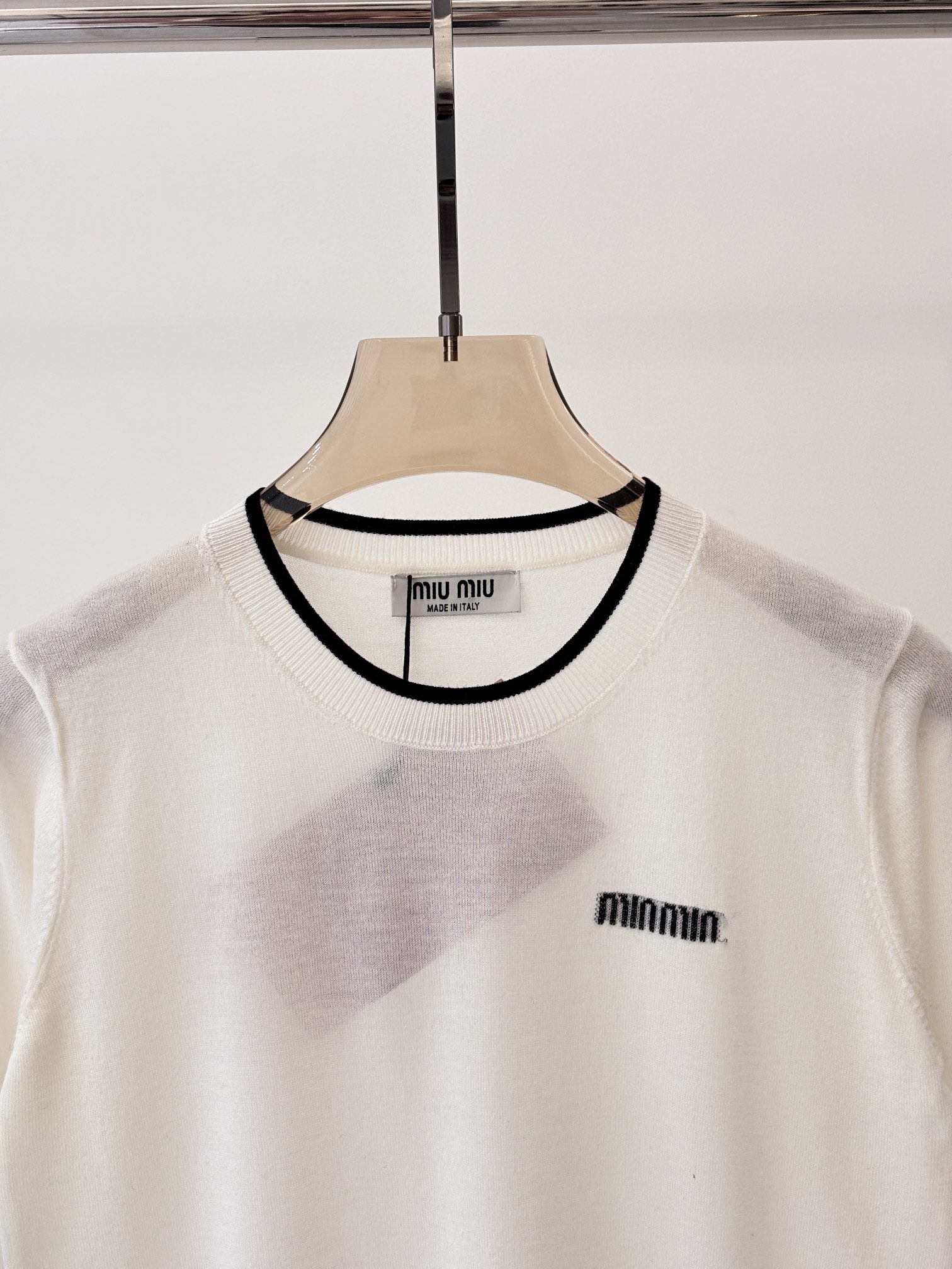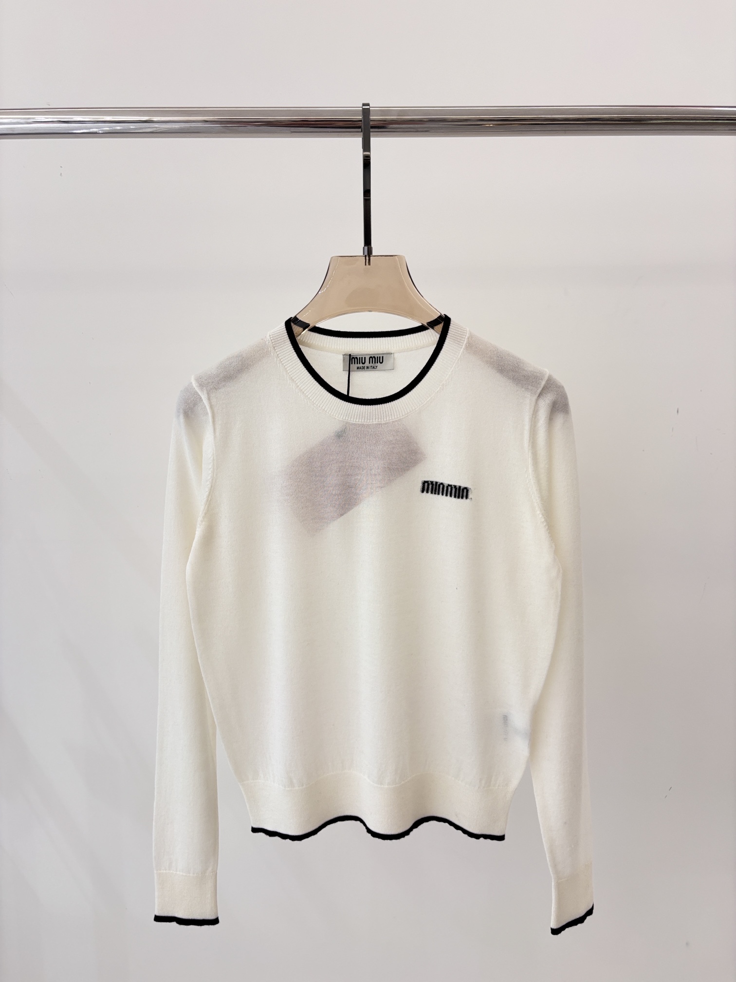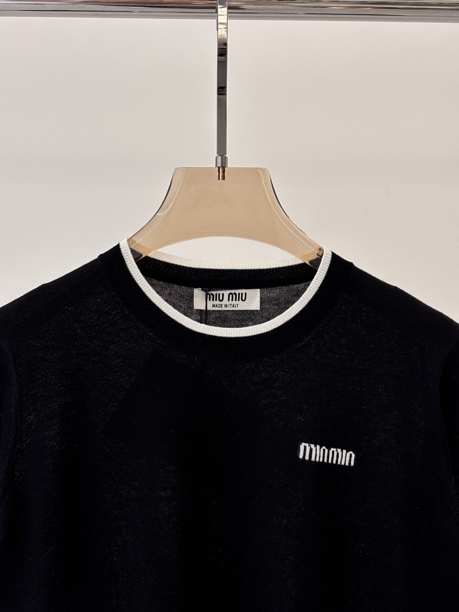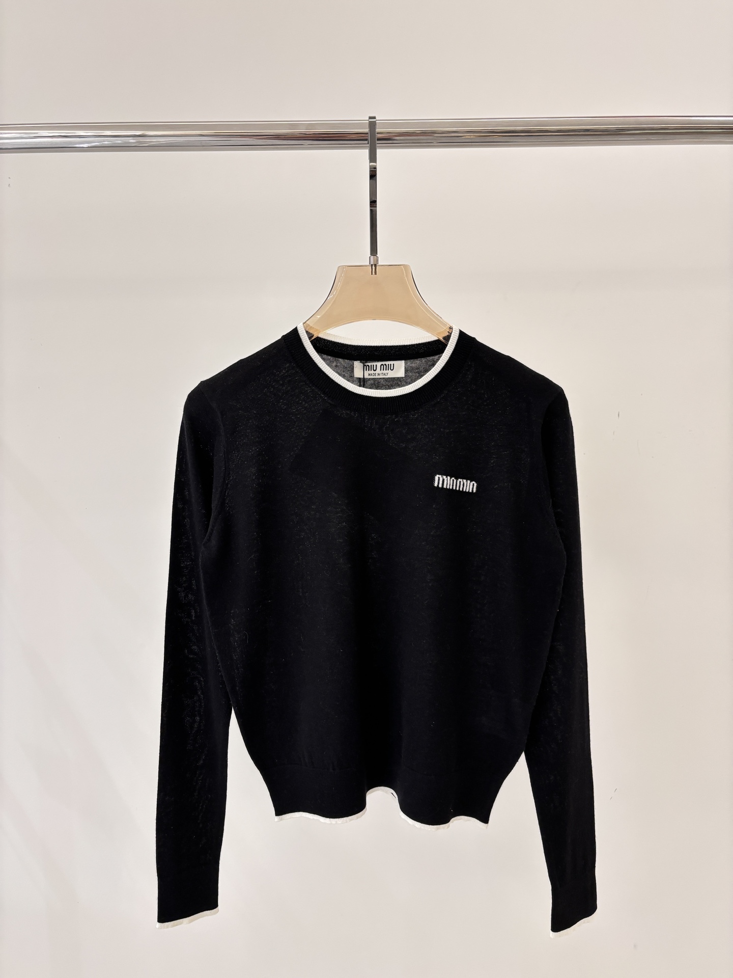 这款衣服是AAAAA 1:1 质量 (非常棒). 使用了和原版一模一样的材料. 商标部分也保持了和缪缪/Miu Miu一样. 图片拍摄是实物衣服拍摄, 您所收到的实物保证和我们图片一模一样.