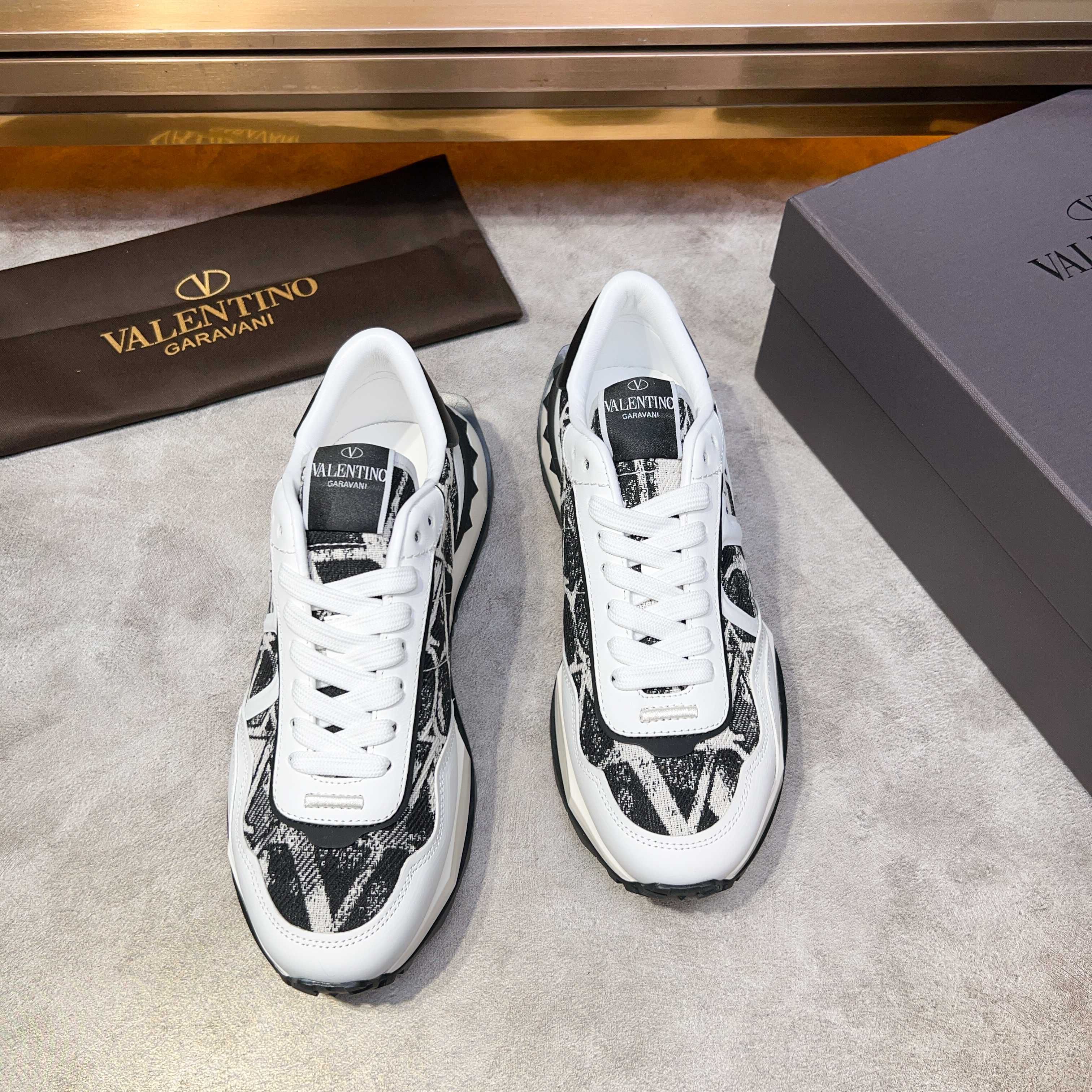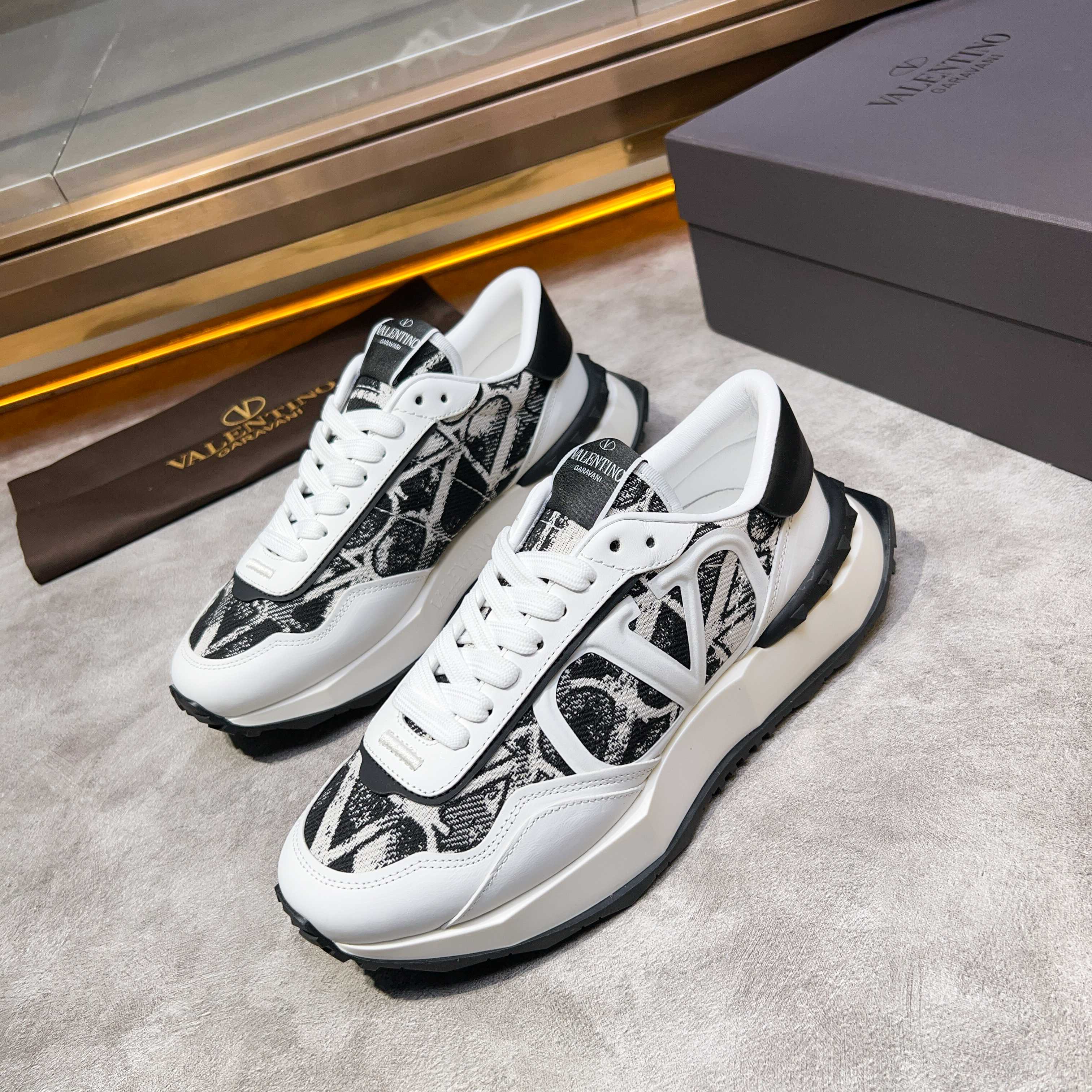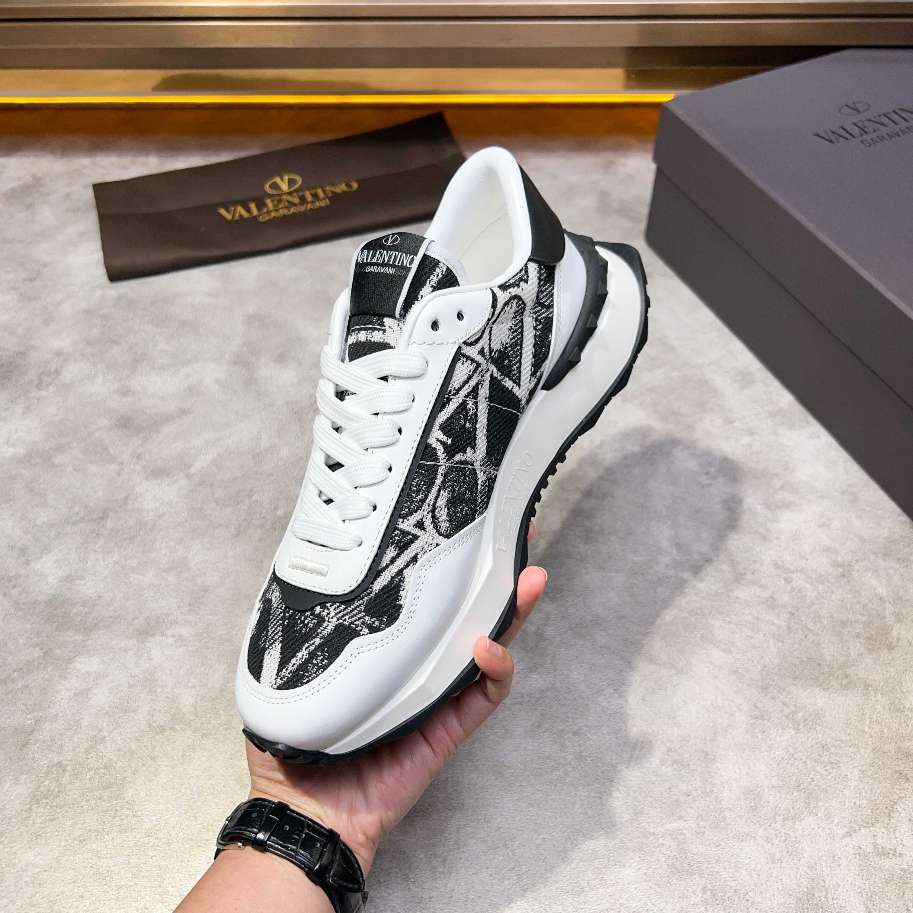 这款鞋子是AAAAA 1:1 质量 (非常棒). 使用了和原版一模一样的材料. 商标部分也保持了和华伦天奴/Valentino一样. 图片拍摄是实物鞋子拍摄, 您所收到的实物保证和我们图片一模一样.