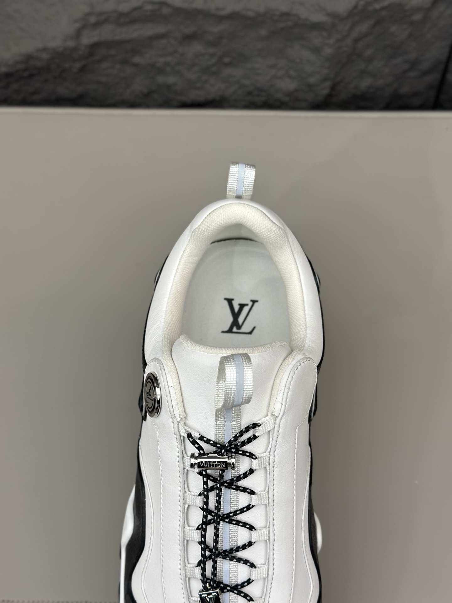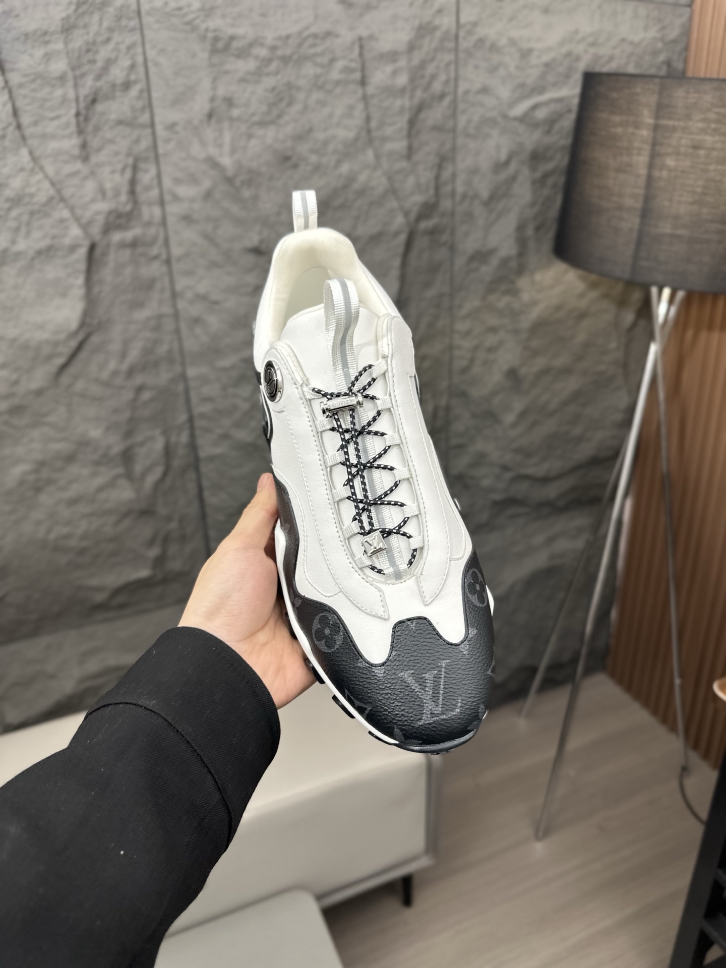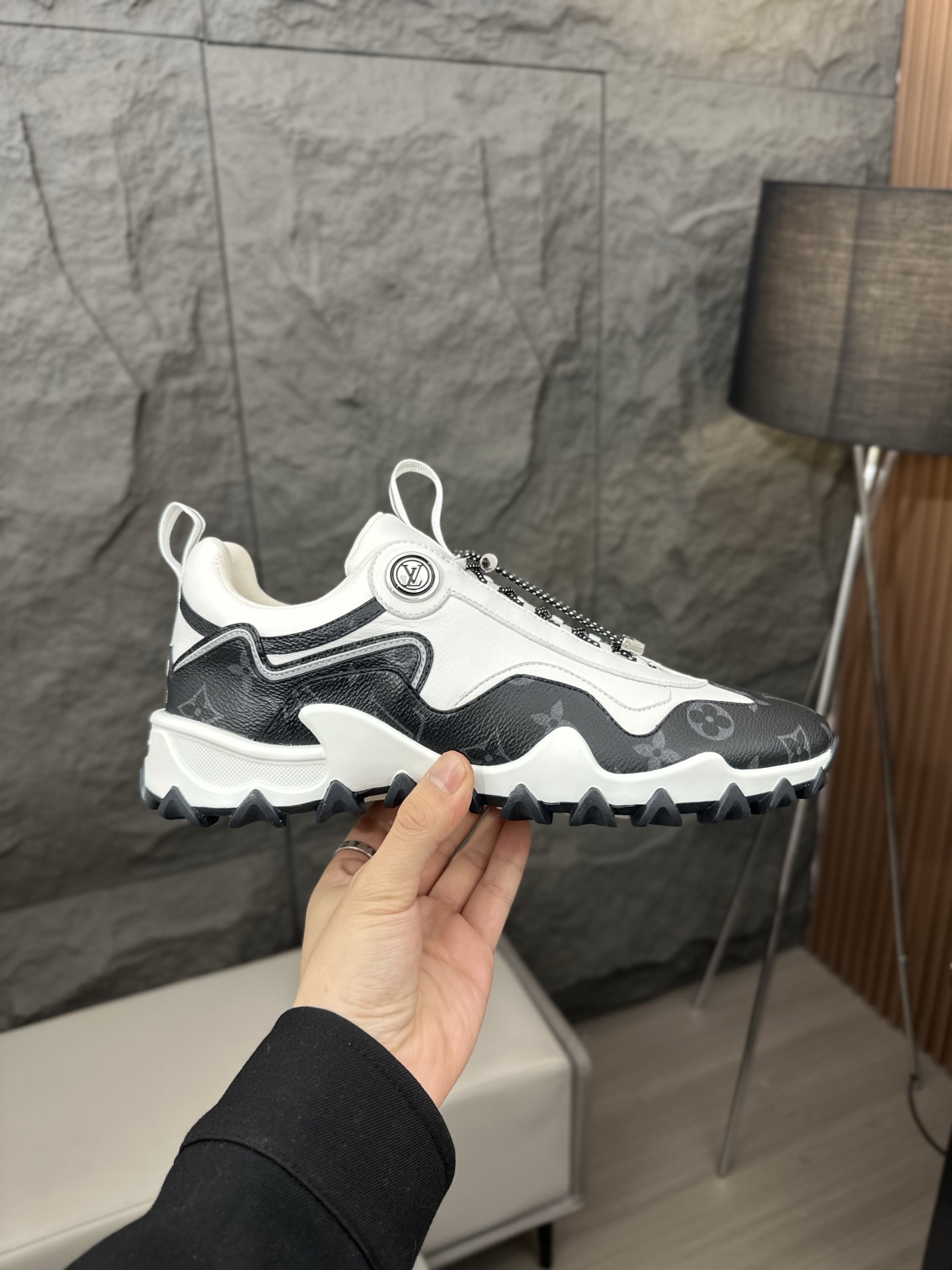 这款鞋子是AAAAA 1:1 质量 (非常棒). 使用了和原版一模一样的材料. 商标部分也保持了和路易威登/Louis Vuitton一样. 图片拍摄是实物鞋子拍摄, 您所收到的实物保证和我们图片一模一样.