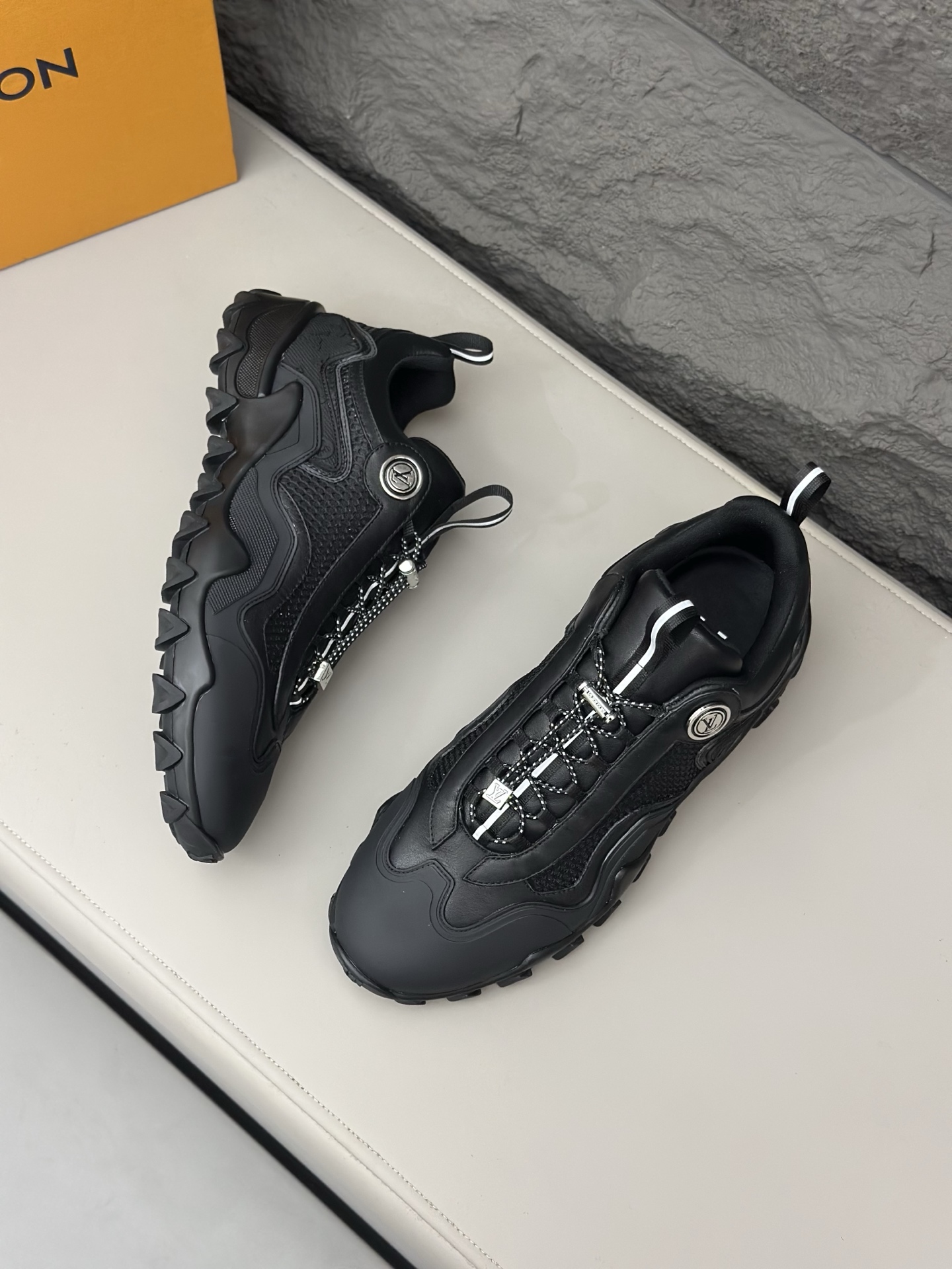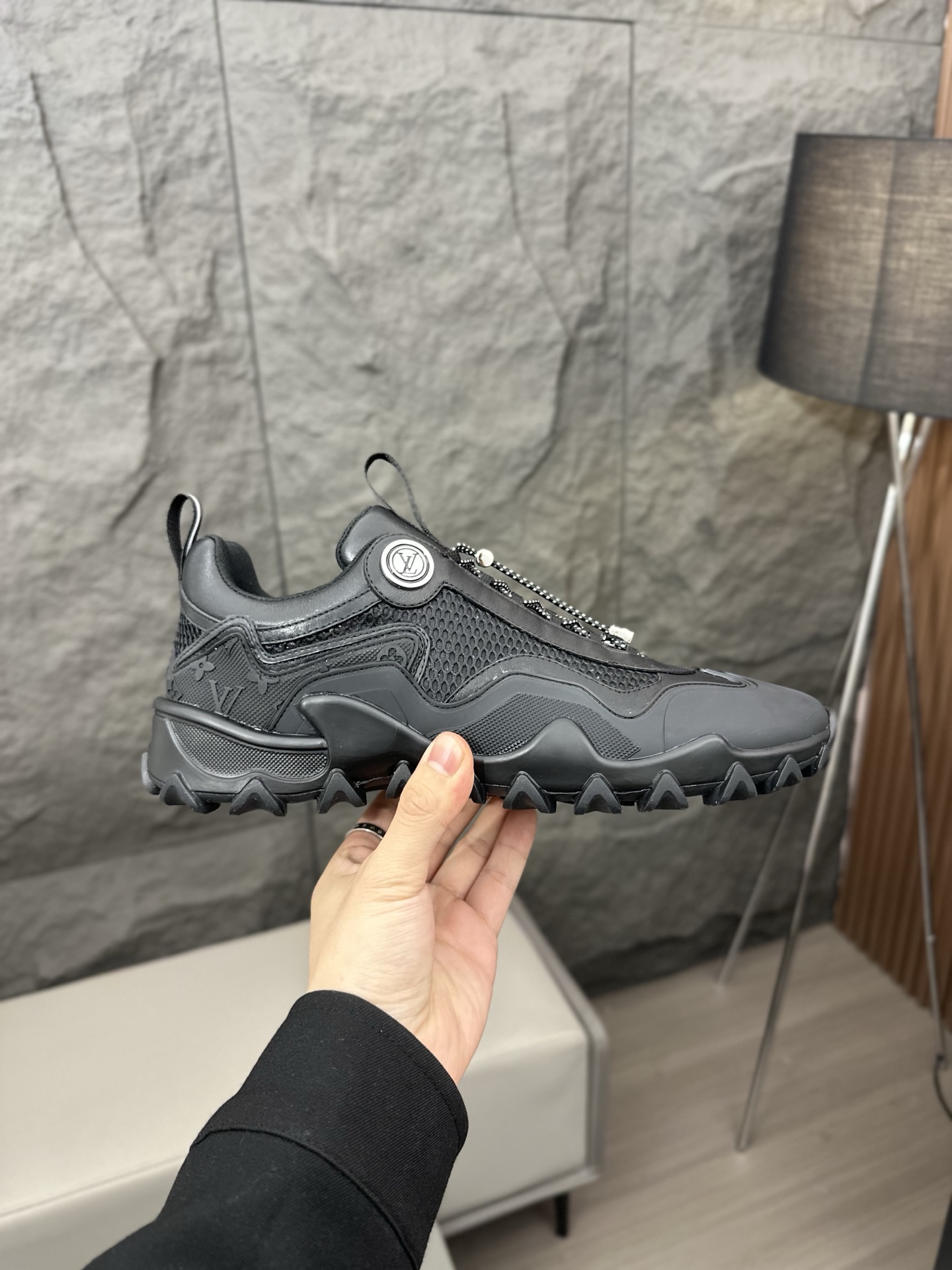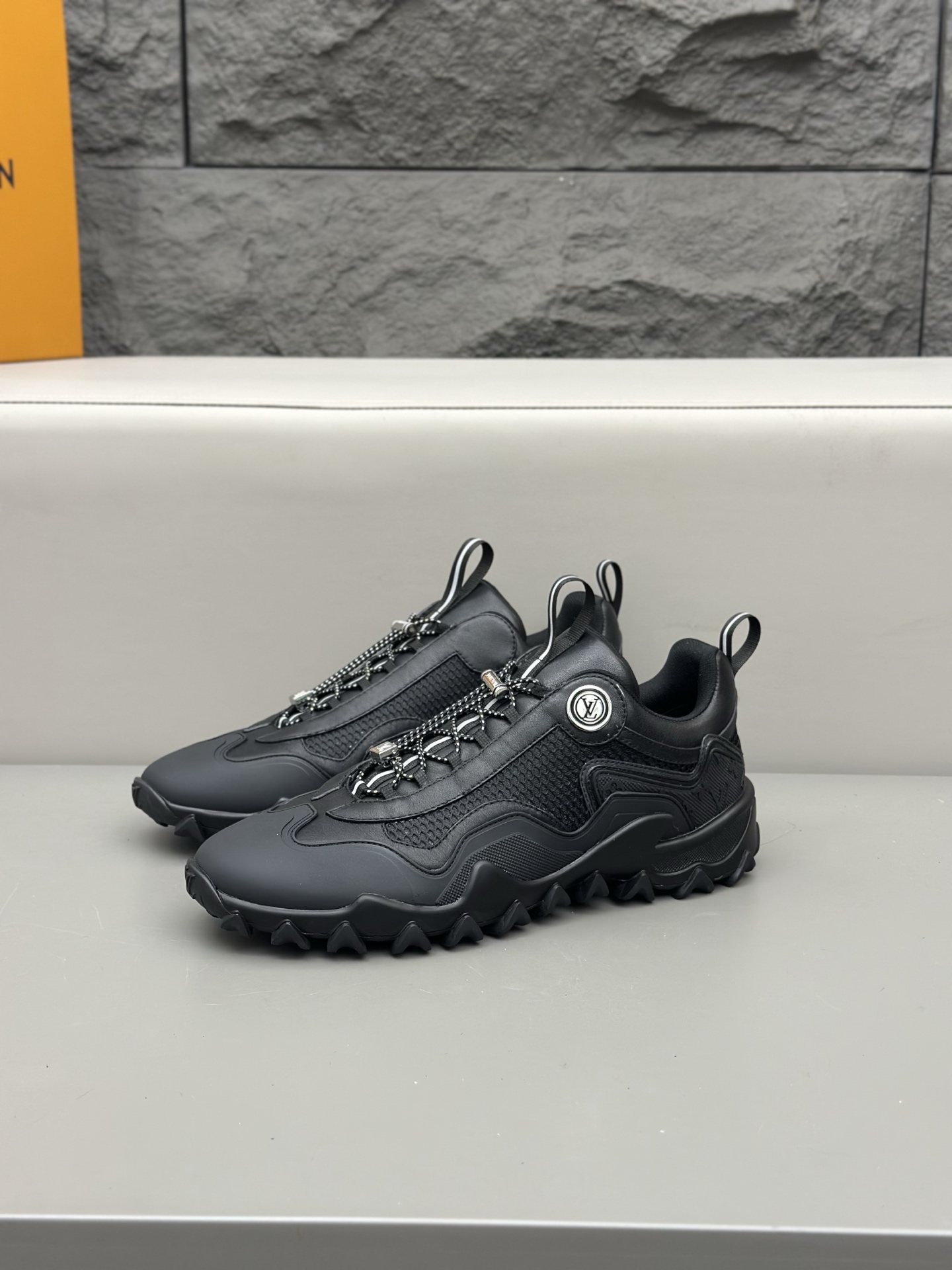这款鞋子是AAAAA 1:1 质量 (非常棒). 使用了和原版一模一样的材料. 商标部分也保持了和路易威登/Louis Vuitton一样. 图片拍摄是实物鞋子拍摄, 您所收到的实物保证和我们图片一模一样.