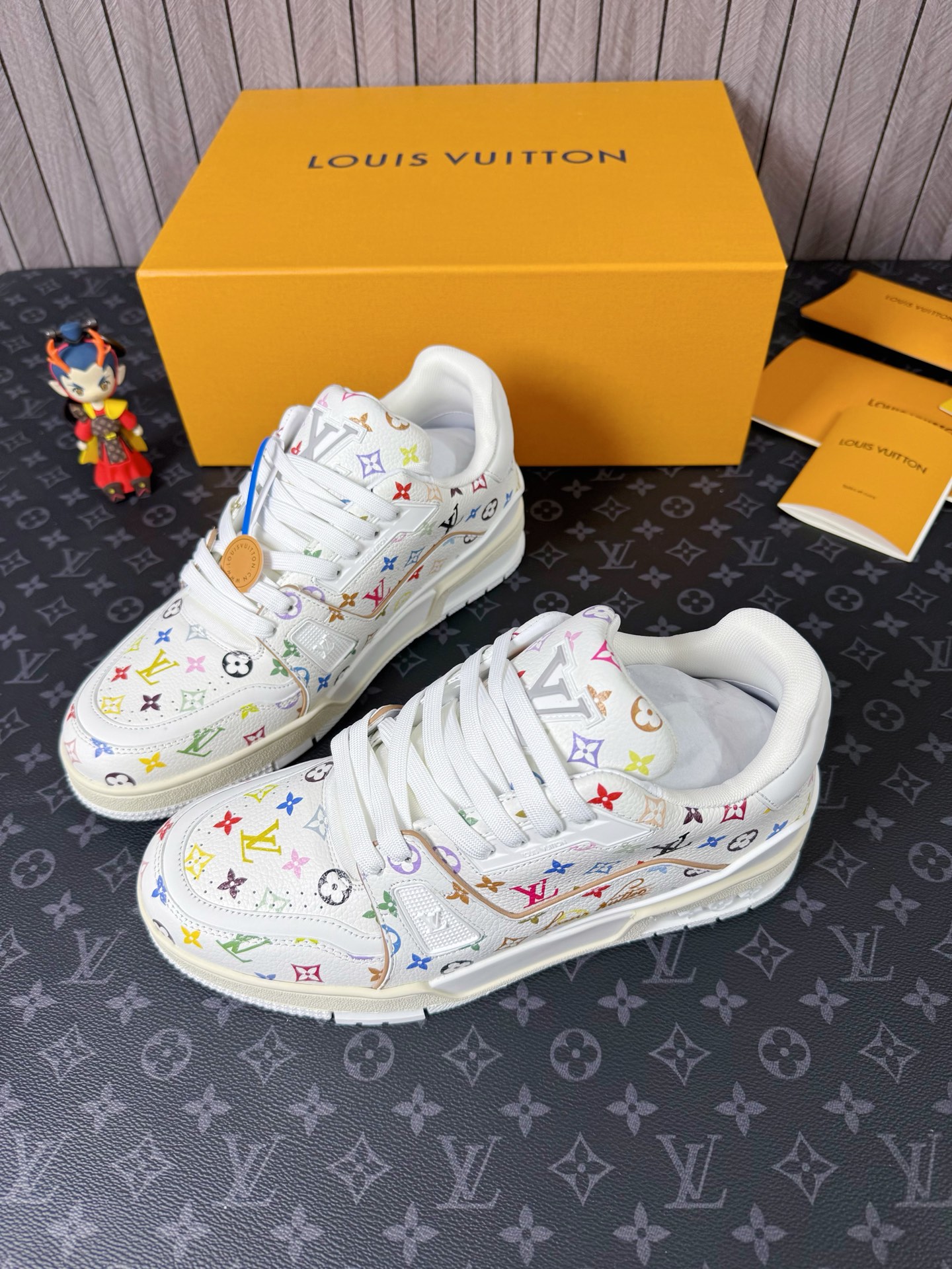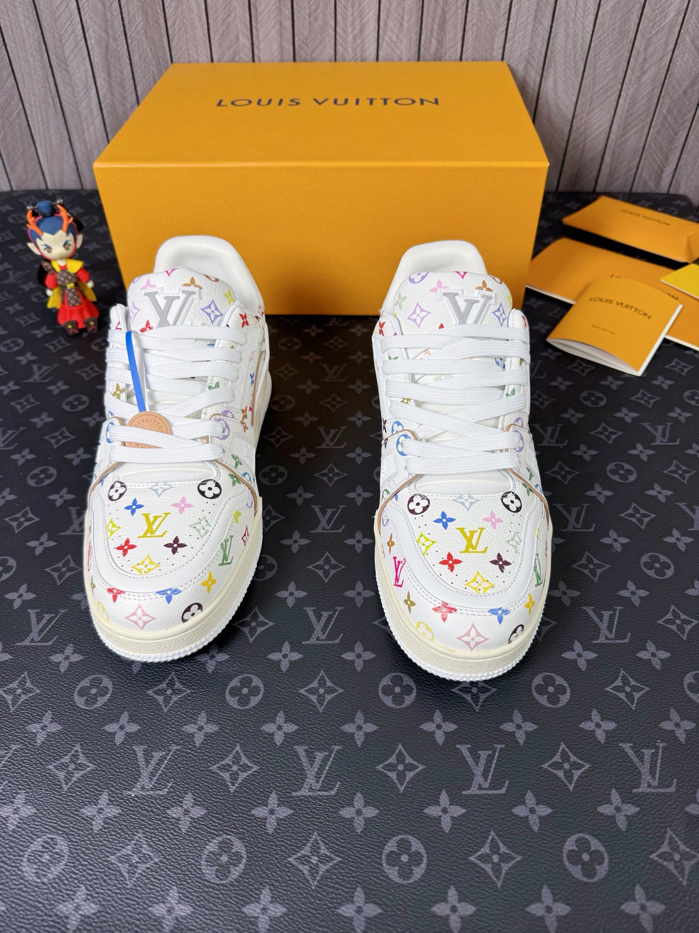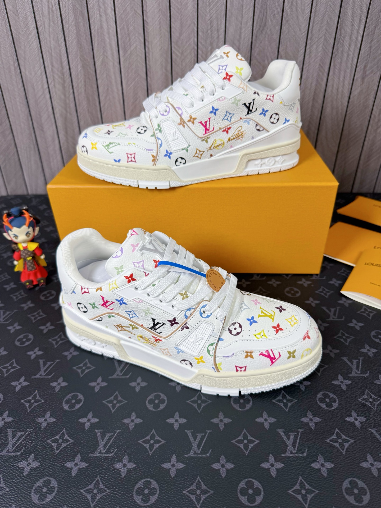 这款鞋子是AAAAA 1:1 质量 (非常棒). 使用了和原版一模一样的材料. 商标部分也保持了和路易威登/Louis Vuitton一样. 图片拍摄是实物鞋子拍摄, 您所收到的实物保证和我们图片一模一样.
