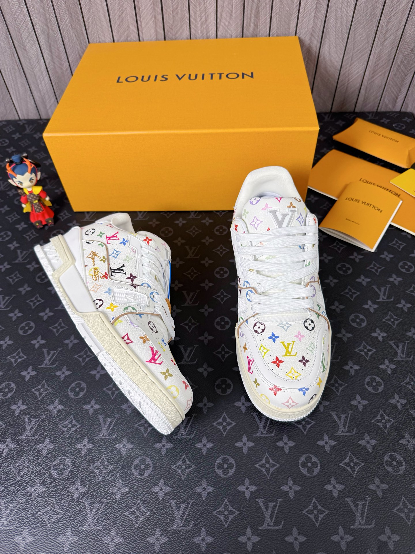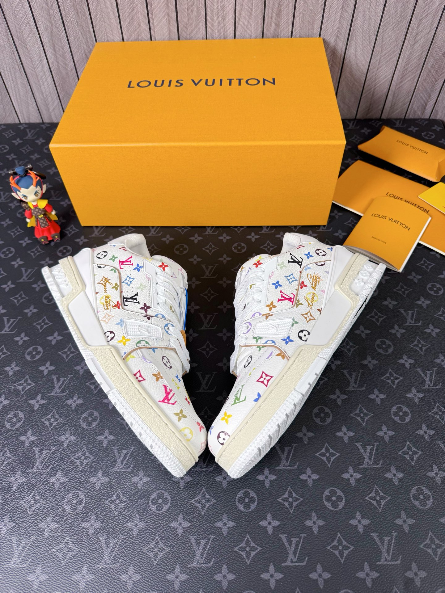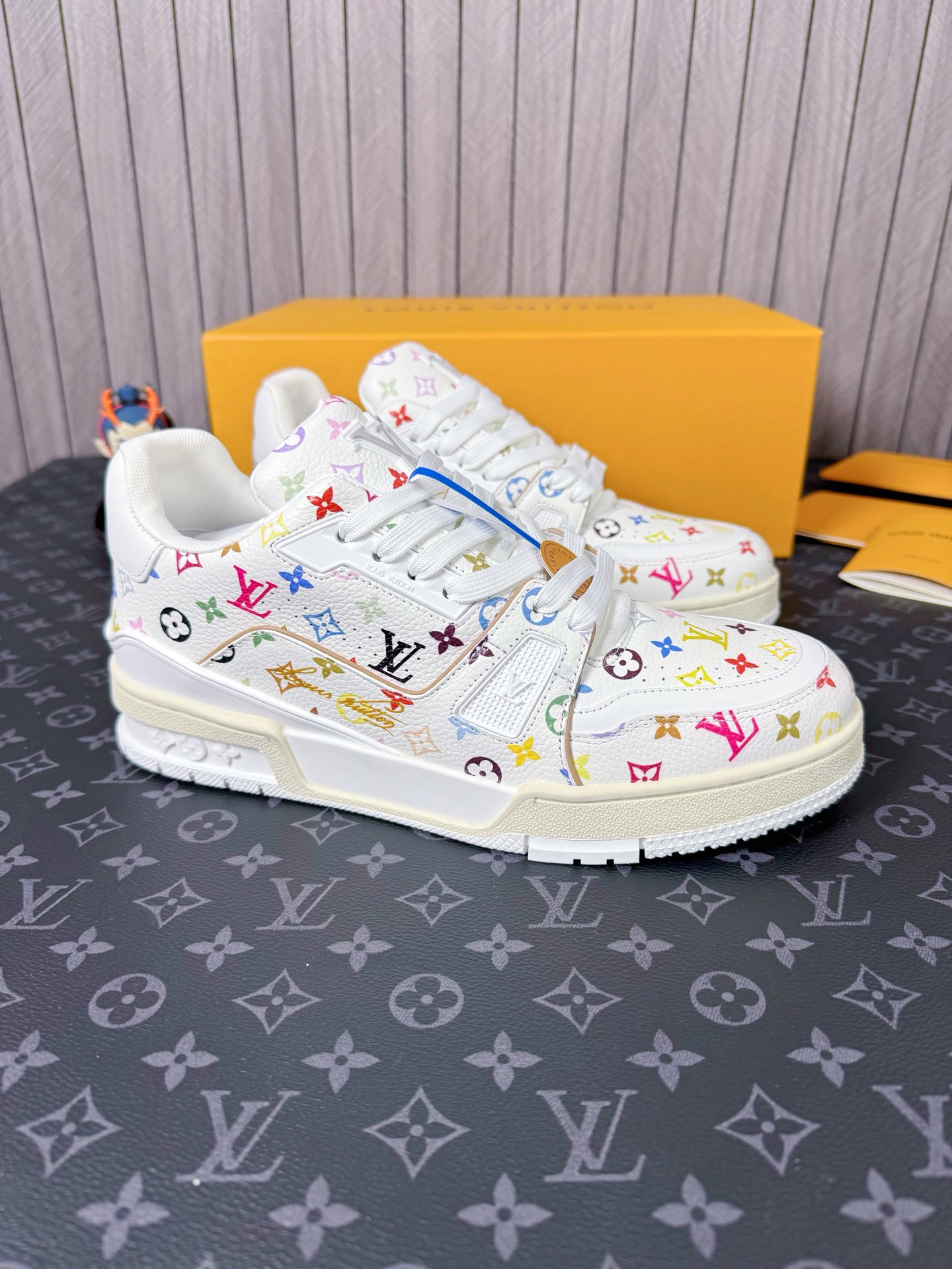 这款鞋子是AAAAA 1:1 质量 (非常棒). 使用了和原版一模一样的材料. 商标部分也保持了和路易威登/Louis Vuitton一样. 图片拍摄是实物鞋子拍摄, 您所收到的实物保证和我们图片一模一样.