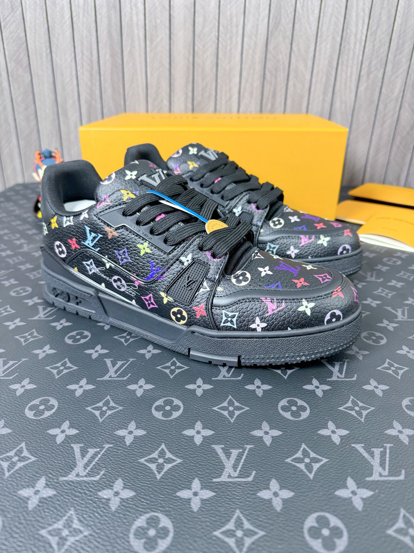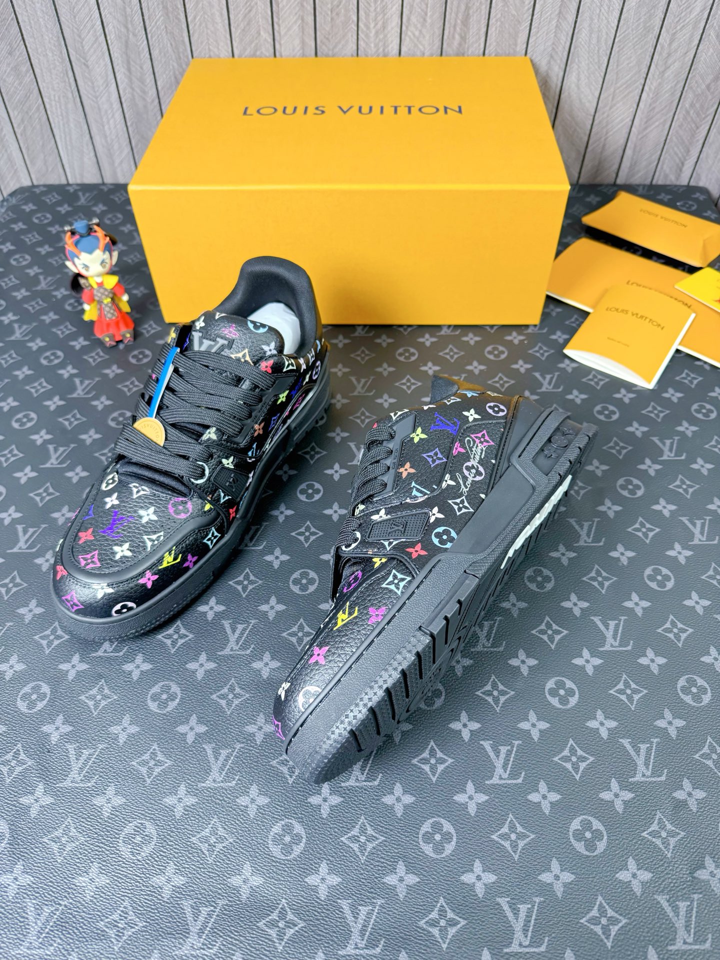 这款鞋子是AAAAA 1:1 质量 (非常棒). 使用了和原版一模一样的材料. 商标部分也保持了和路易威登/Louis Vuitton一样. 图片拍摄是实物鞋子拍摄, 您所收到的实物保证和我们图片一模一样.