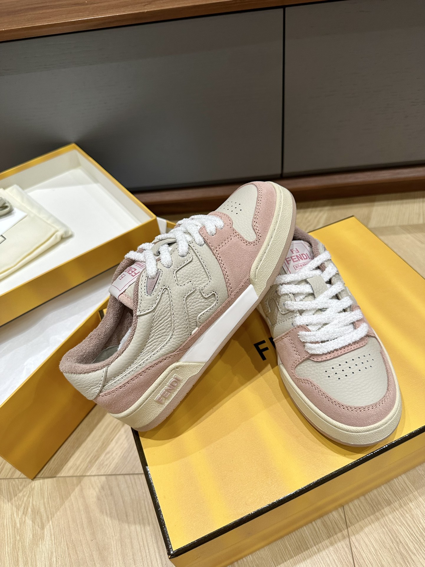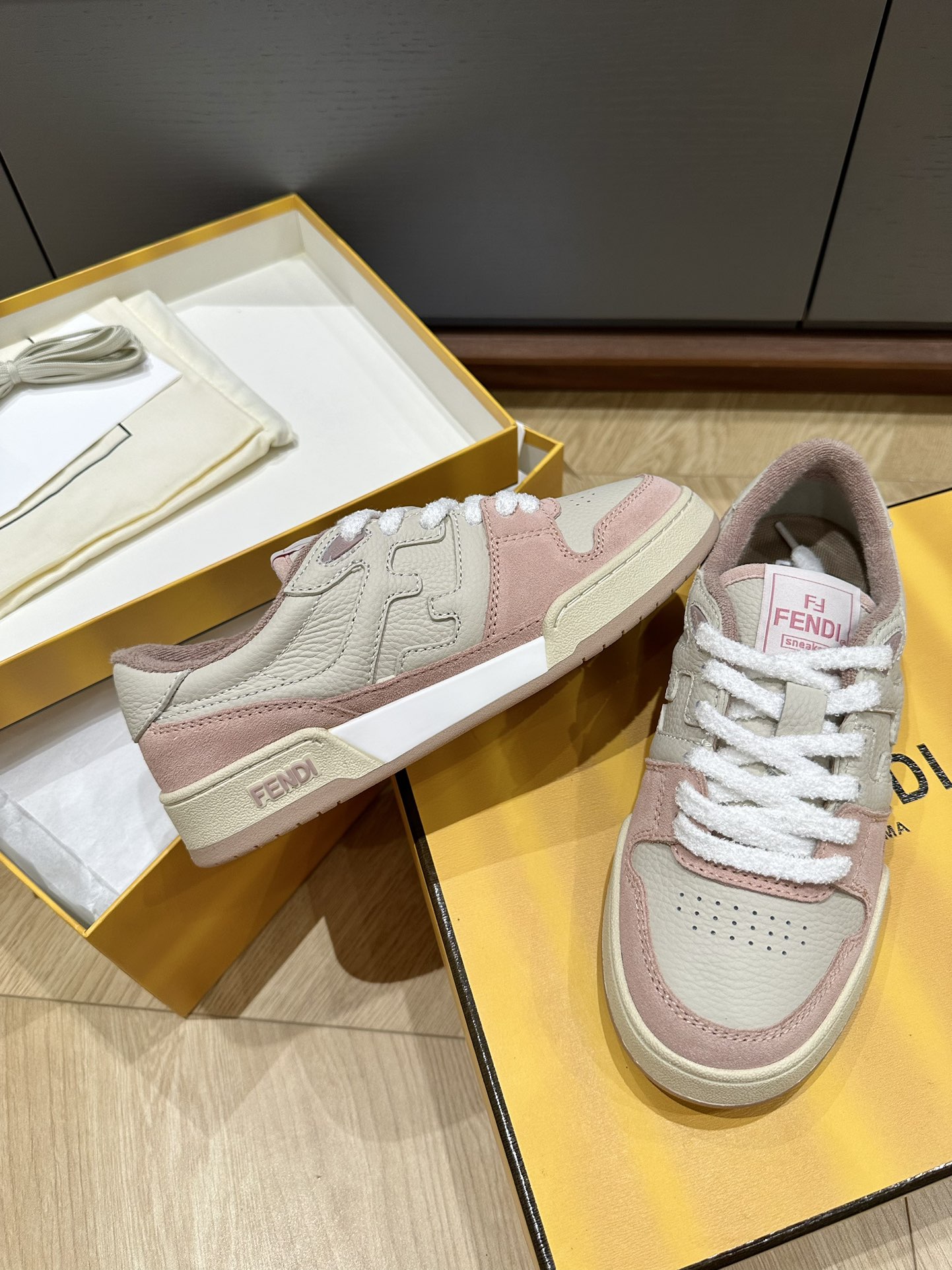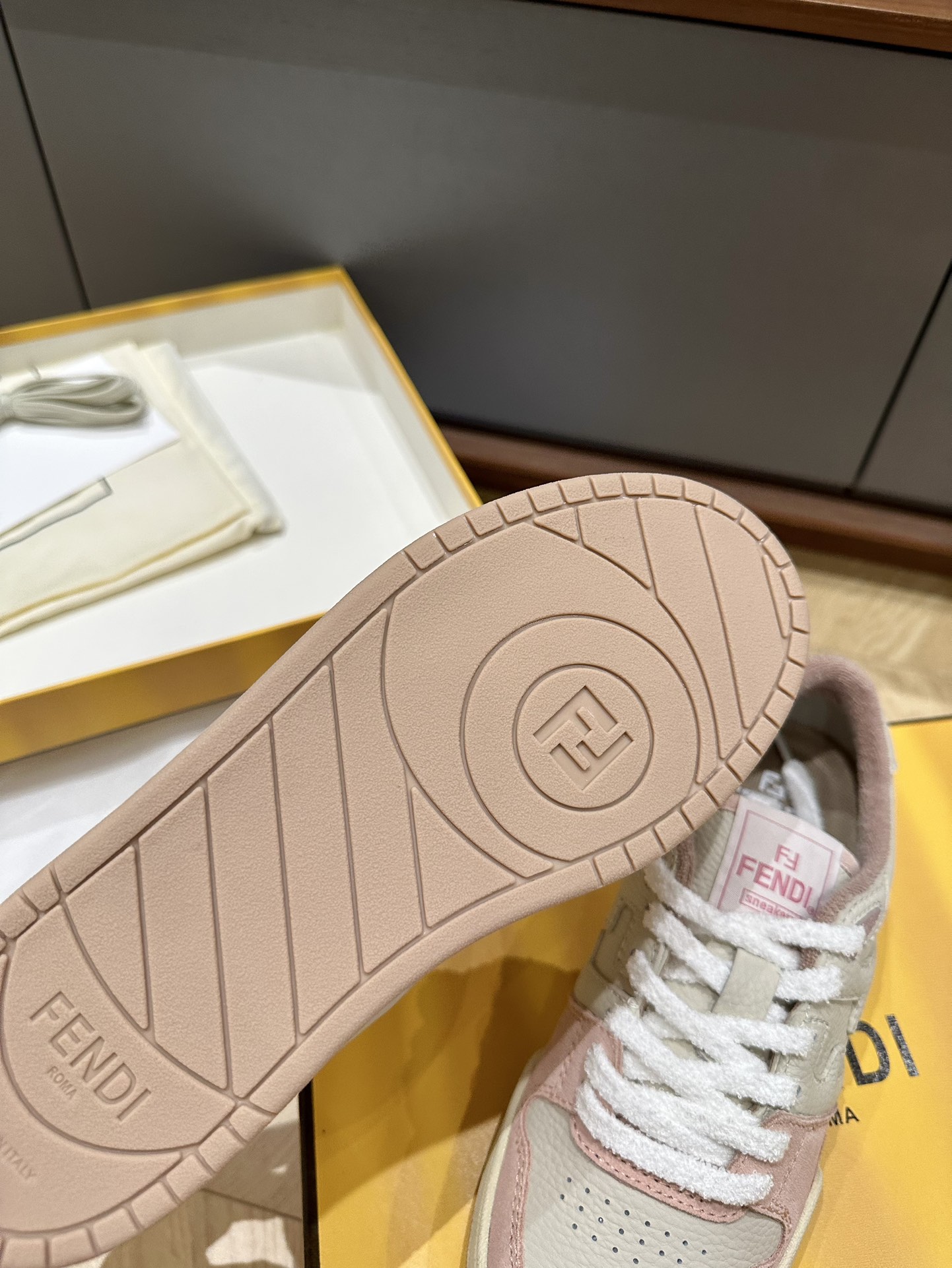 这款鞋子是AAAAA 1:1 质量 (非常棒). 使用了和原版一模一样的材料. 商标部分也保持了和芬迪/Fendi一样. 图片拍摄是实物鞋子拍摄, 您所收到的实物保证和我们图片一模一样.