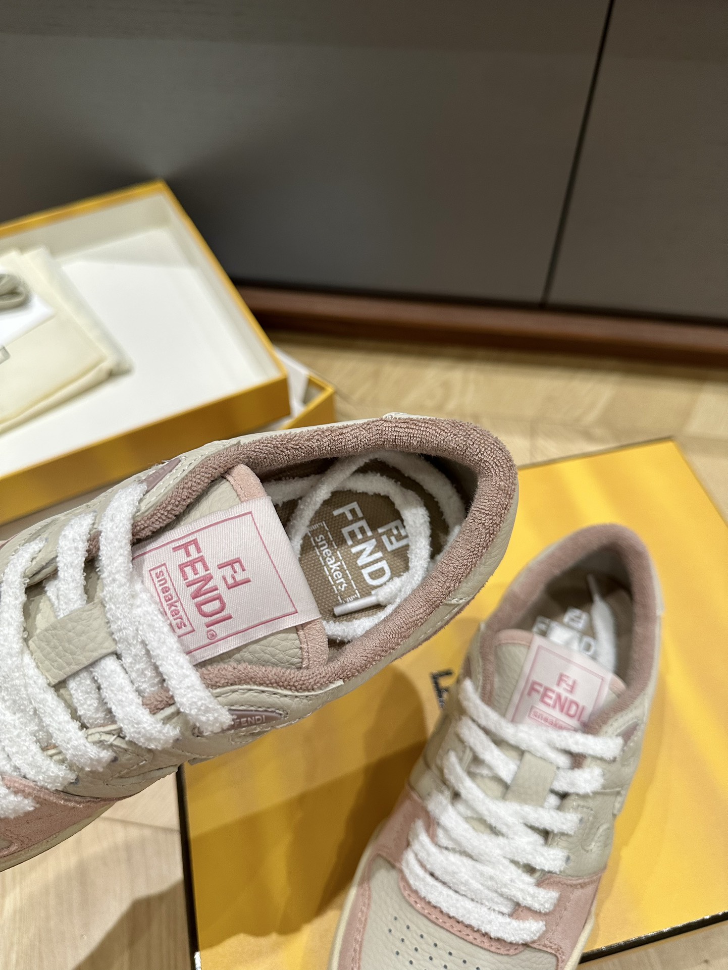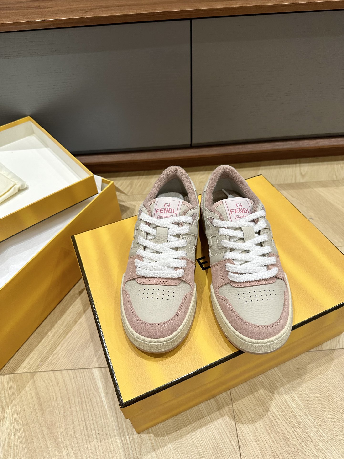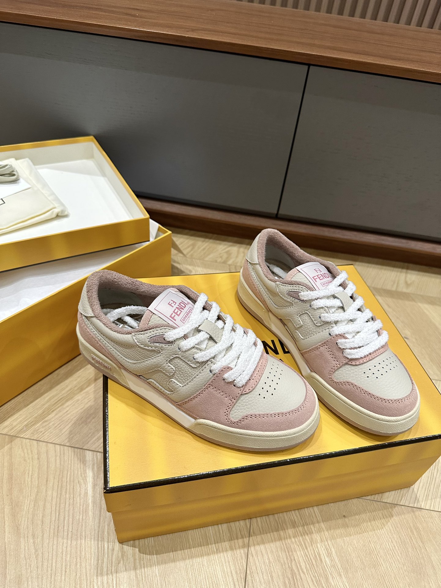 这款鞋子是AAAAA 1:1 质量 (非常棒). 使用了和原版一模一样的材料. 商标部分也保持了和芬迪/Fendi一样. 图片拍摄是实物鞋子拍摄, 您所收到的实物保证和我们图片一模一样.
