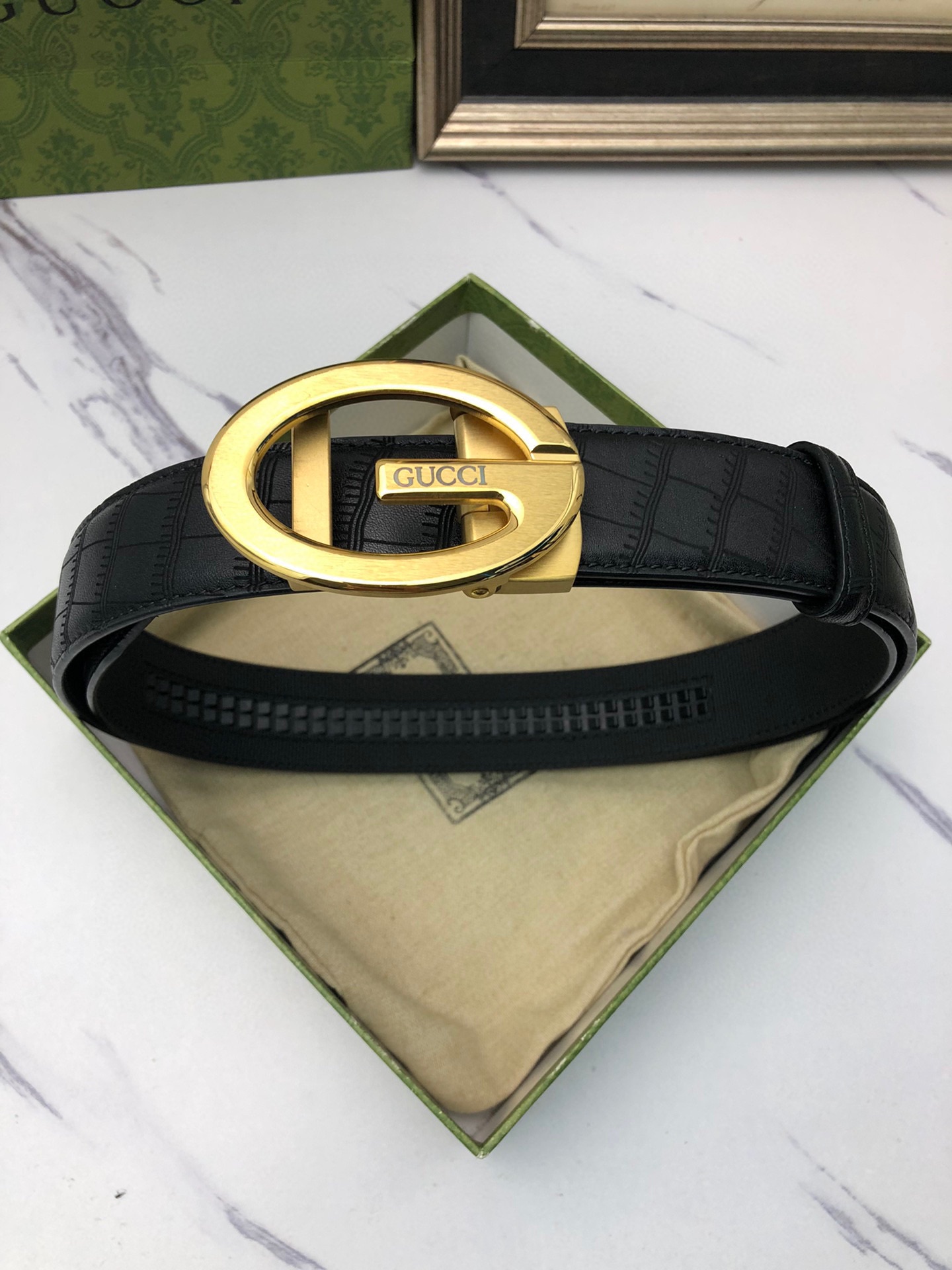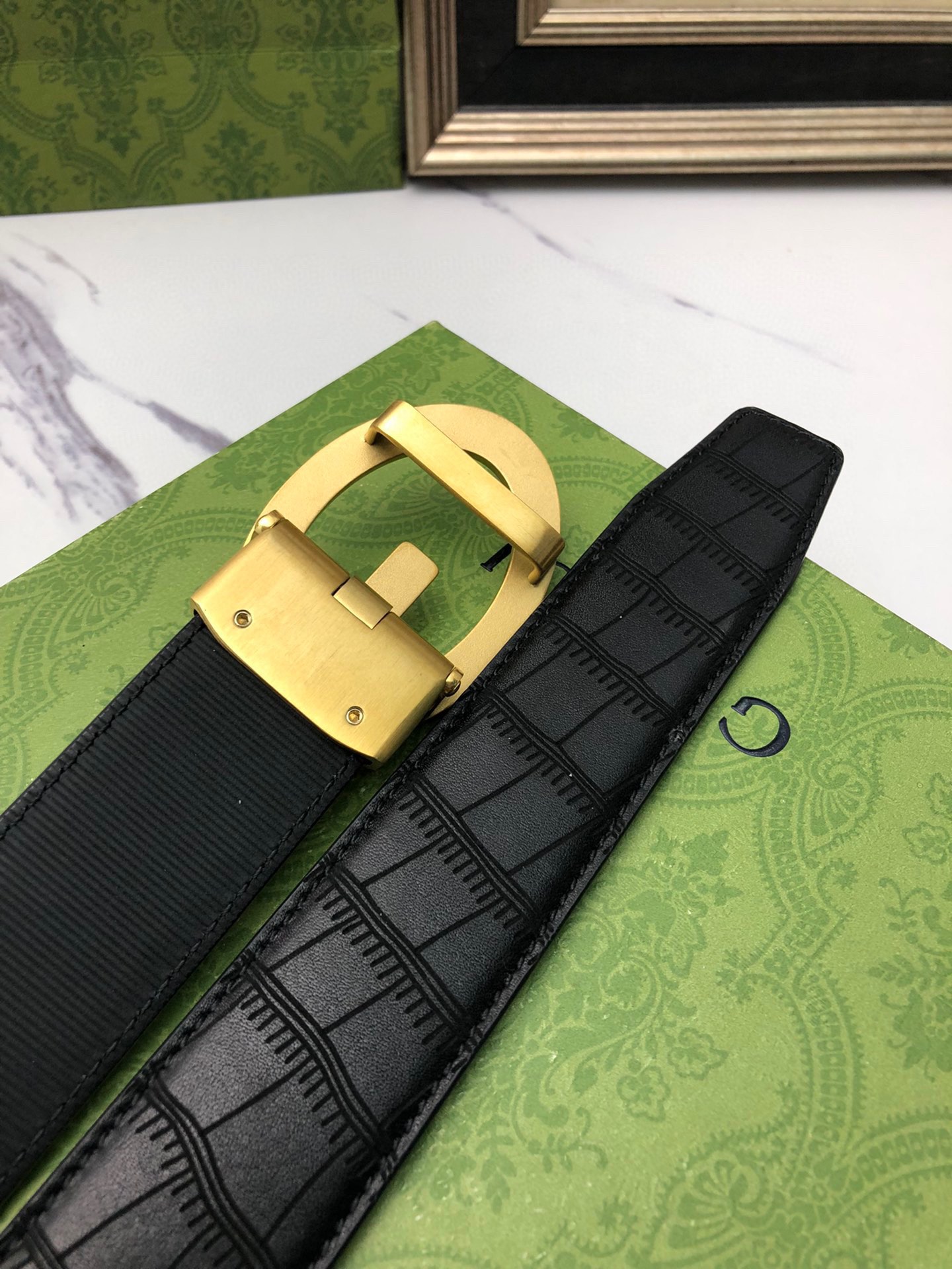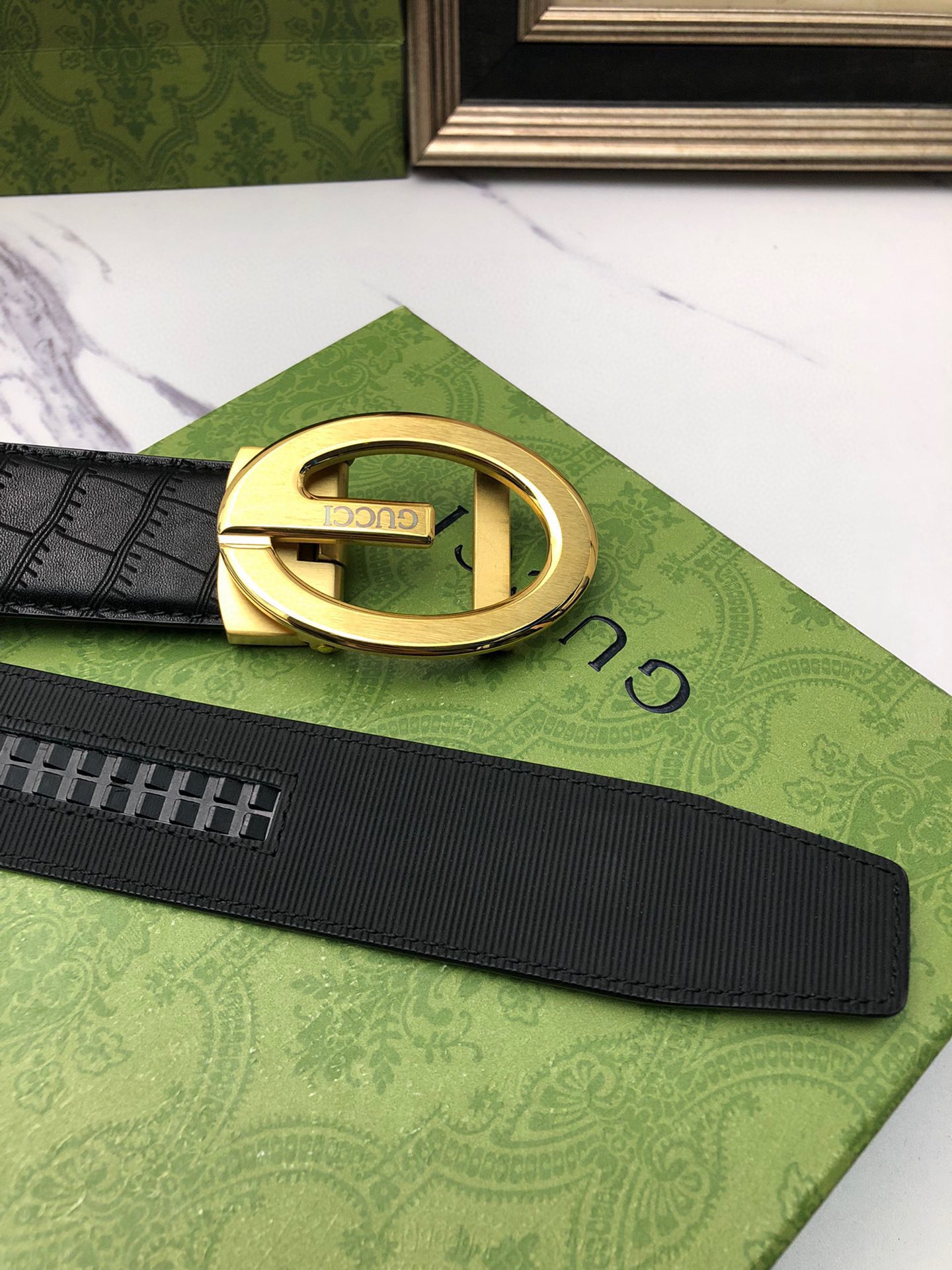 这款皮带是AAAAA 1:1 质量 (非常棒). 使用了和原版一模一样的材料. 商标部分也保持了和古奇/Gucci一样. 图片拍摄是实物皮带拍摄, 您所收到的实物保证和我们图片一模一样.