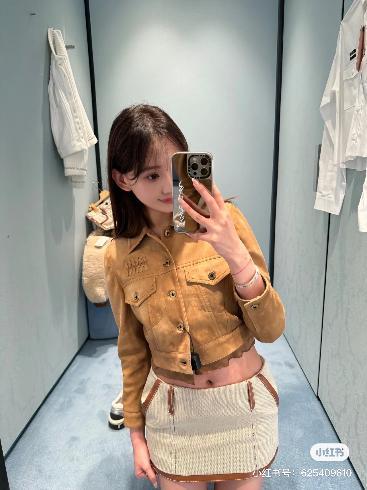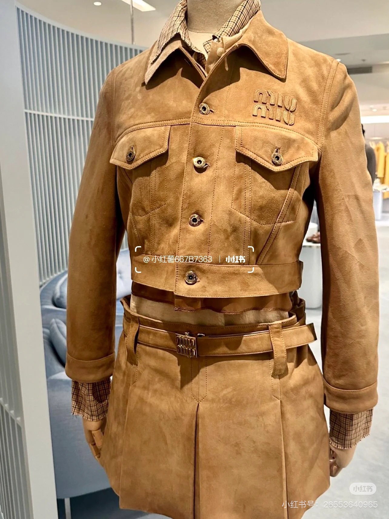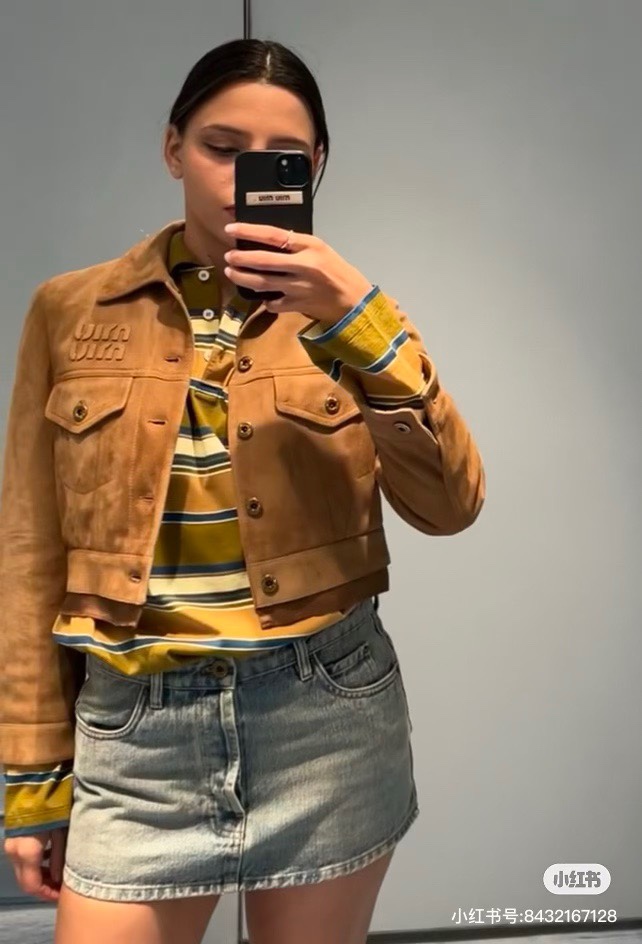 这款衣服是AAAAA 1:1 质量 (非常棒). 使用了和原版一模一样的材料. 商标部分也保持了和缪缪/Miu Miu一样. 图片拍摄是实物衣服拍摄, 您所收到的实物保证和我们图片一模一样.