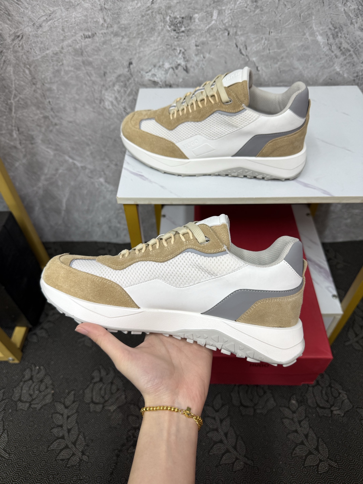 这款鞋子是AAAAA 1:1 质量 (非常棒). 使用了和原版一模一样的材料. 商标部分也保持了和爱马仕/Hermes一样. 图片拍摄是实物鞋子拍摄, 您所收到的实物保证和我们图片一模一样.