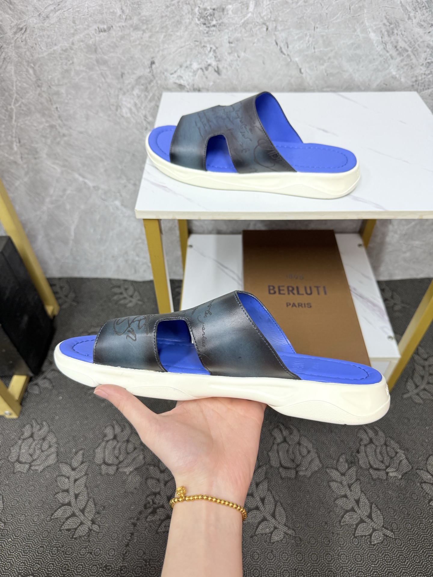 这款鞋子是AAAAA 1:1 质量 (非常棒). 使用了和原版一模一样的材料. 商标部分也保持了和Berluti一样. 图片拍摄是实物鞋子拍摄, 您所收到的实物保证和我们图片一模一样.