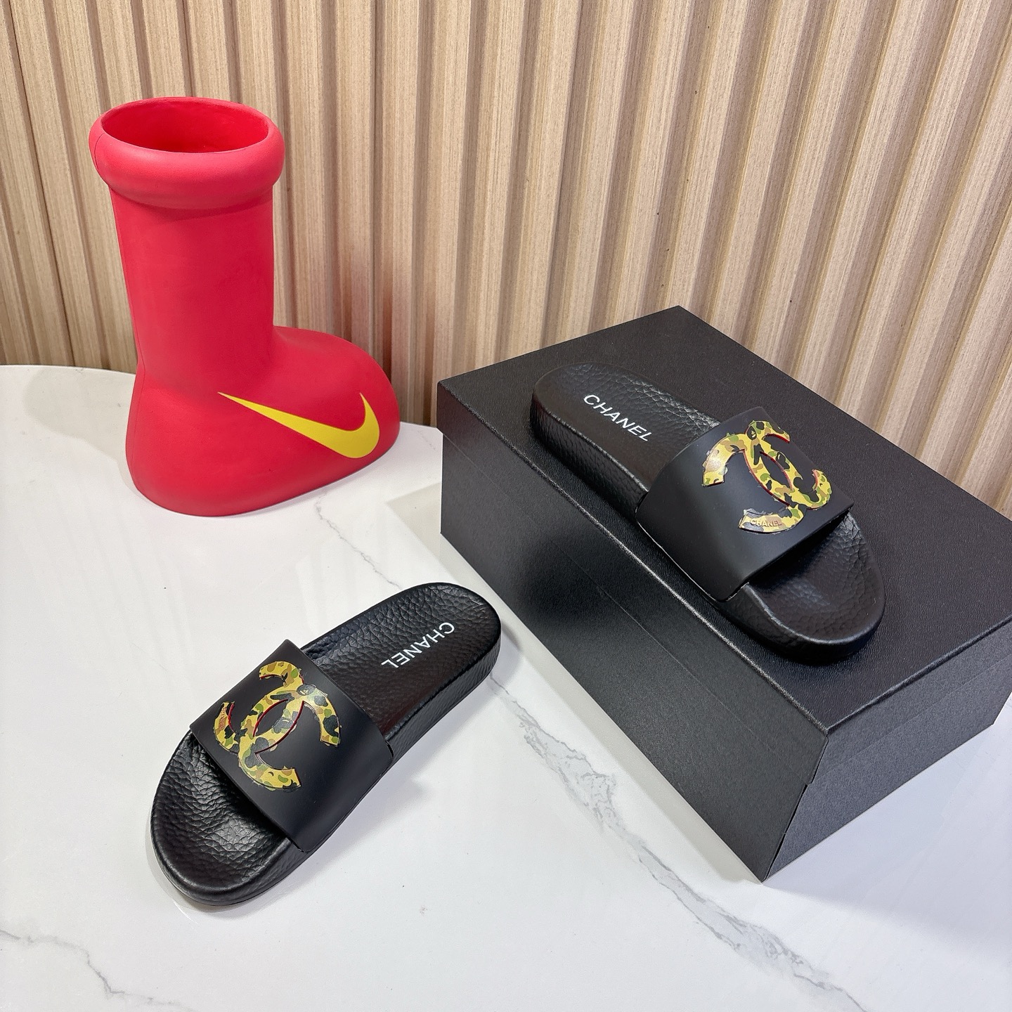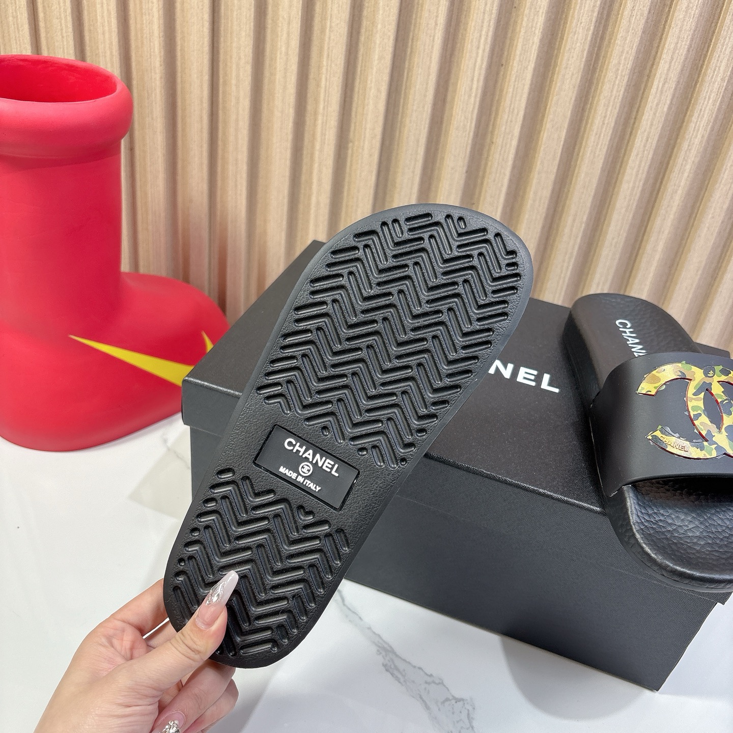 这款鞋子是AAAAA 1:1 质量 (非常棒). 使用了和原版一模一样的材料. 商标部分也保持了和香奈儿/Chanel一样. 图片拍摄是实物鞋子拍摄, 您所收到的实物保证和我们图片一模一样.