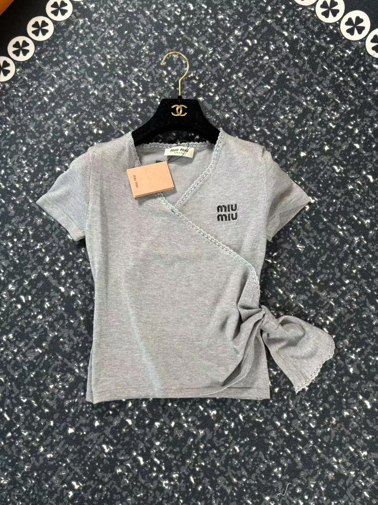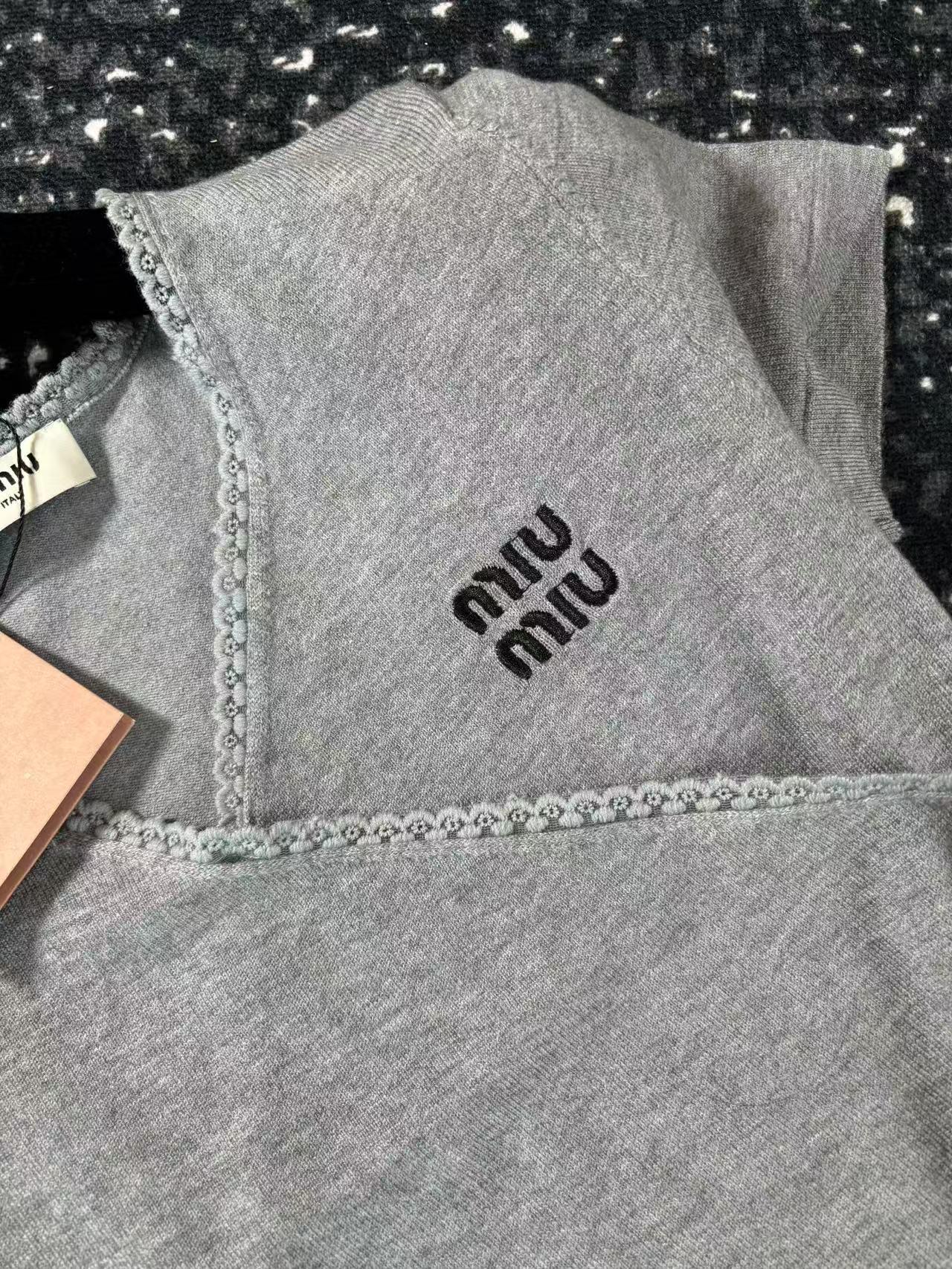 这款衣服是AAAAA 1:1 质量 (非常棒). 使用了和原版一模一样的材料. 商标部分也保持了和缪缪/Miu Miu一样. 图片拍摄是实物衣服拍摄, 您所收到的实物保证和我们图片一模一样.