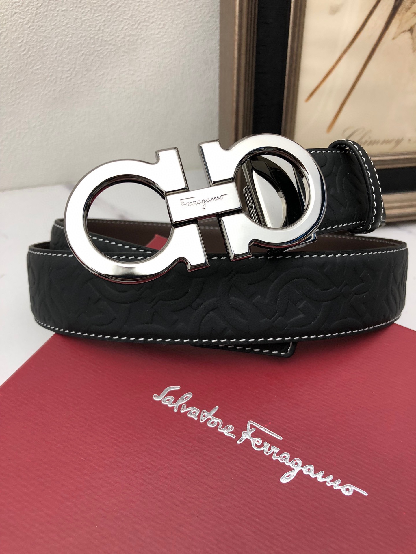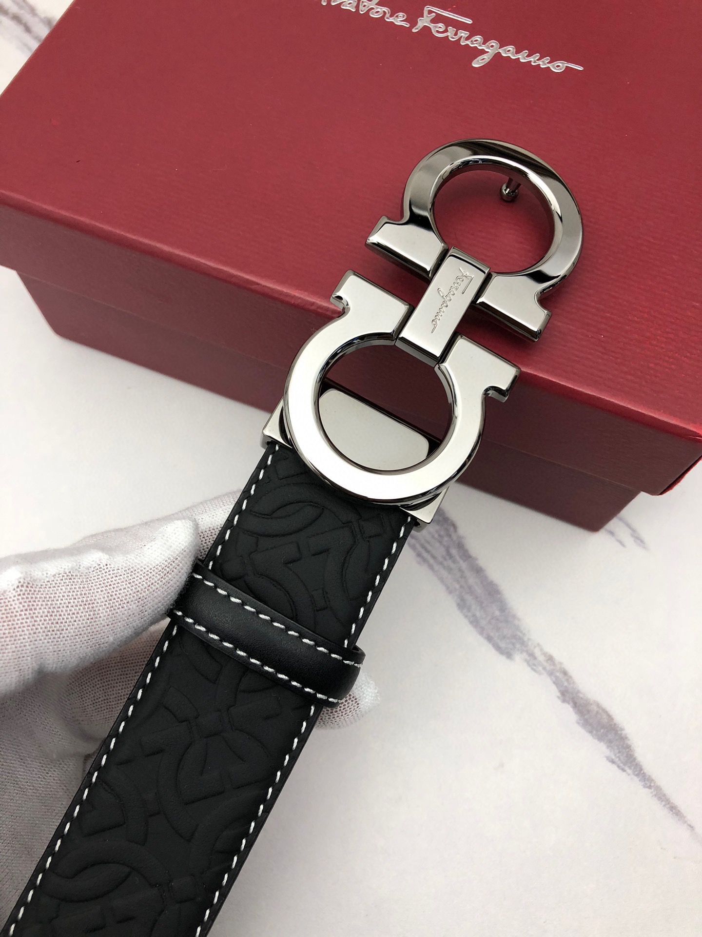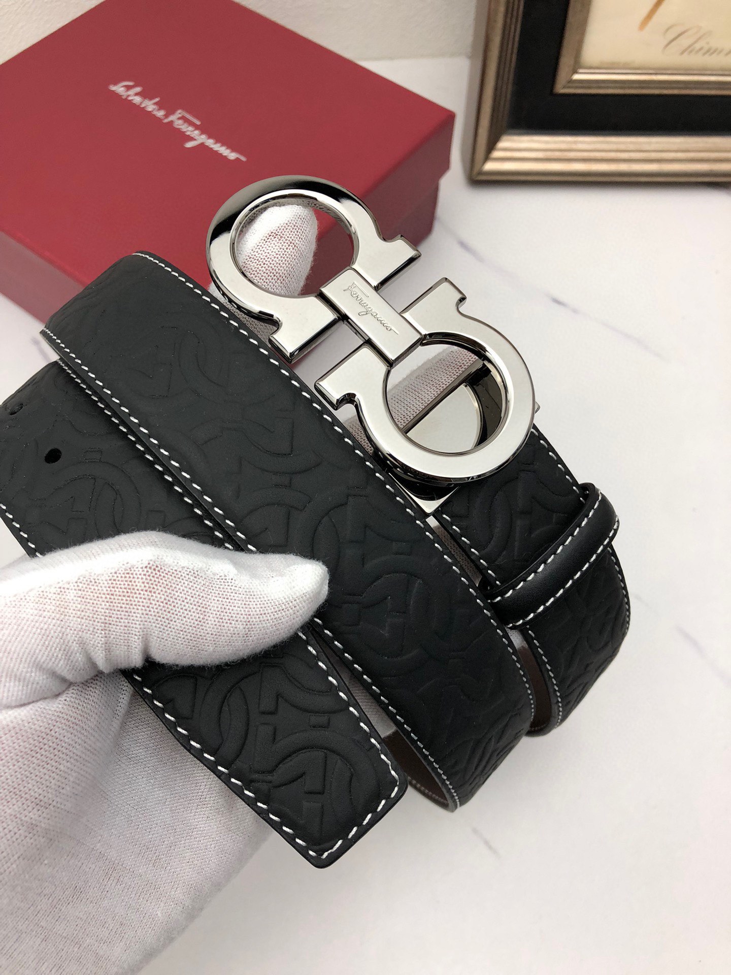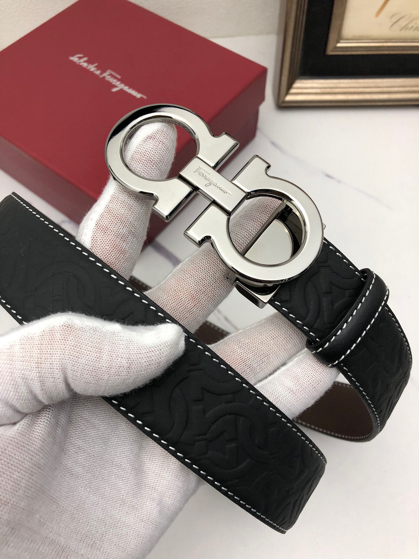 这款皮带是AAAAA 1:1 质量 (非常棒). 使用了和原版一模一样的材料. 商标部分也保持了和菲拉格慕/Salvatore Ferragamo一样. 图片拍摄是实物皮带拍摄, 您所收到的实物保证和我们图片一模一样.