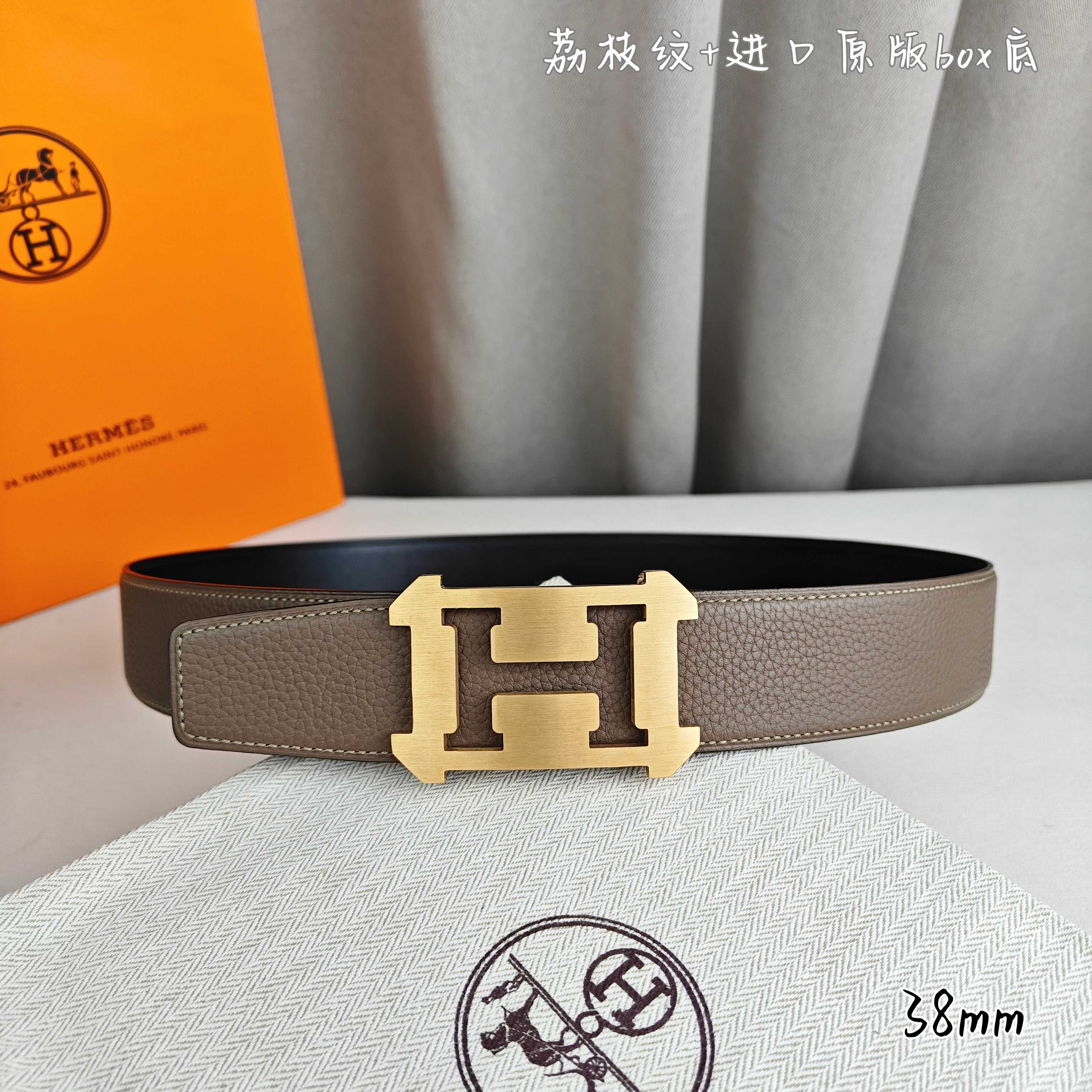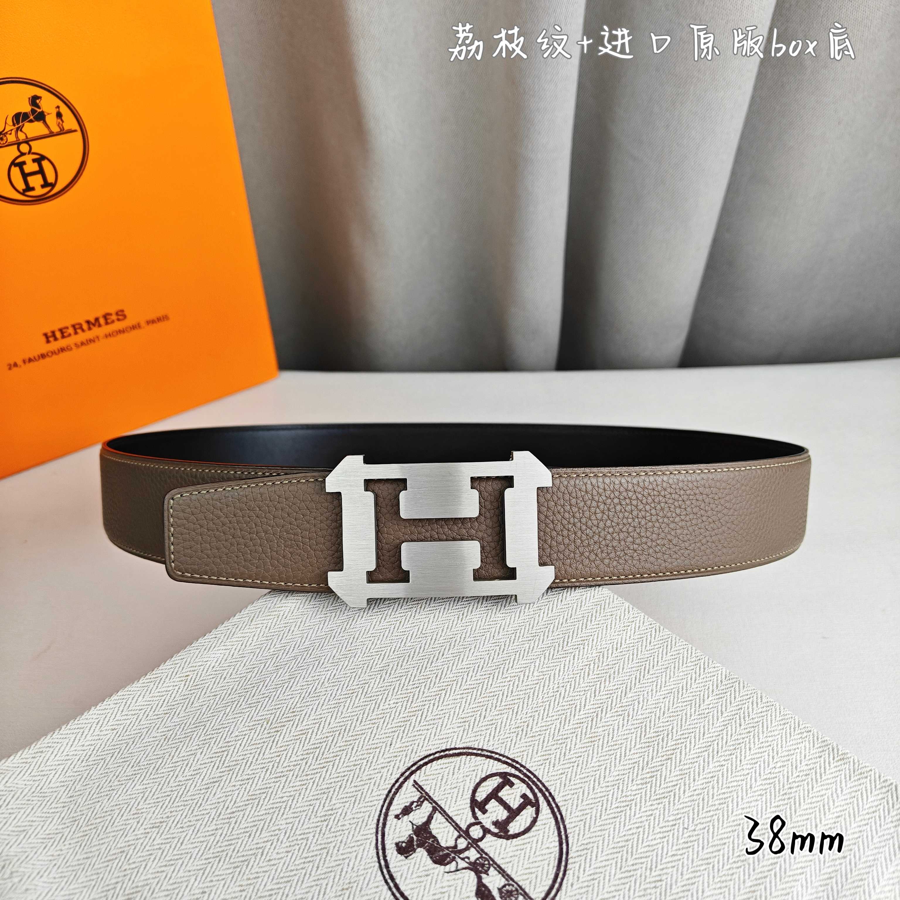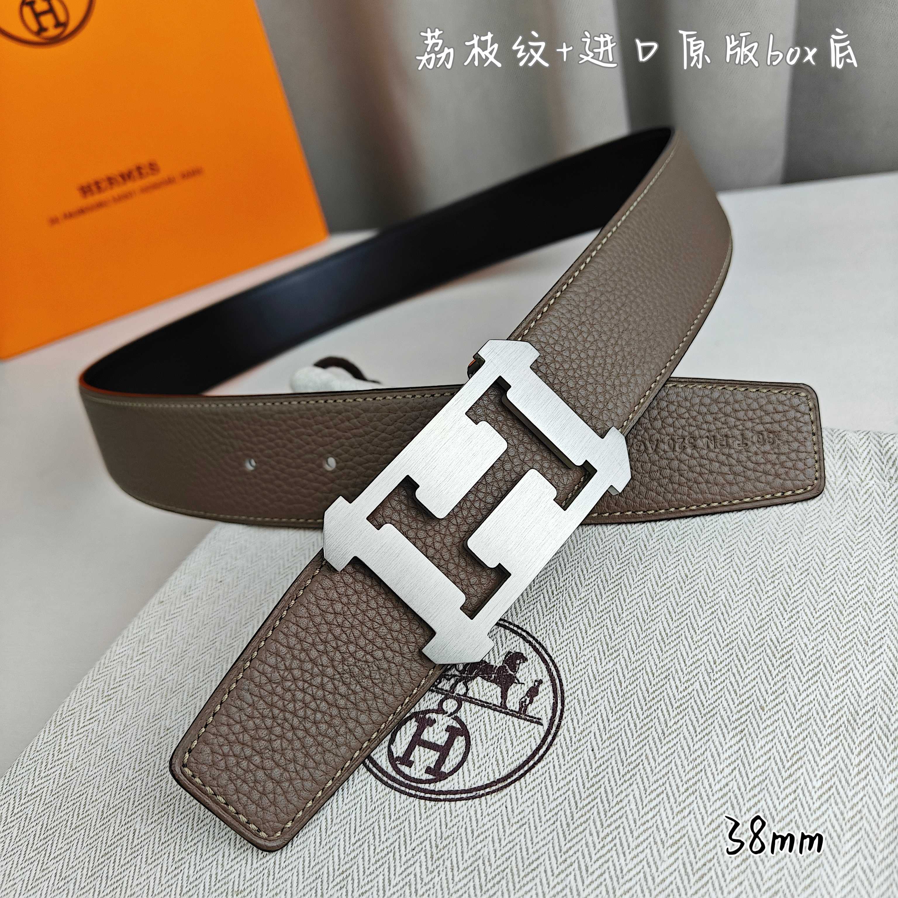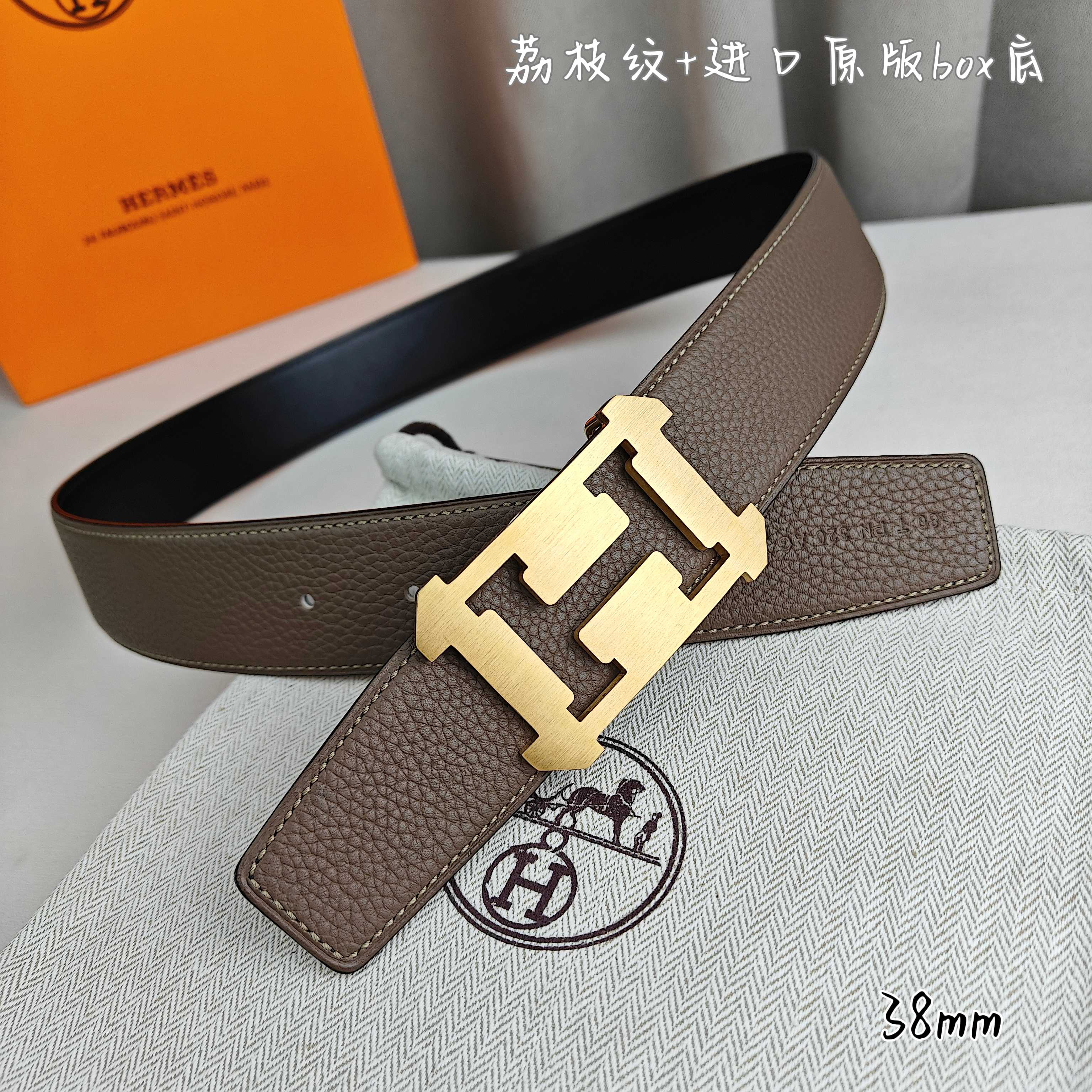 这款皮带是AAAAA 1:1 质量 (非常棒). 使用了和原版一模一样的材料. 商标部分也保持了和爱马仕/Hermes一样. 图片拍摄是实物皮带拍摄, 您所收到的实物保证和我们图片一模一样.