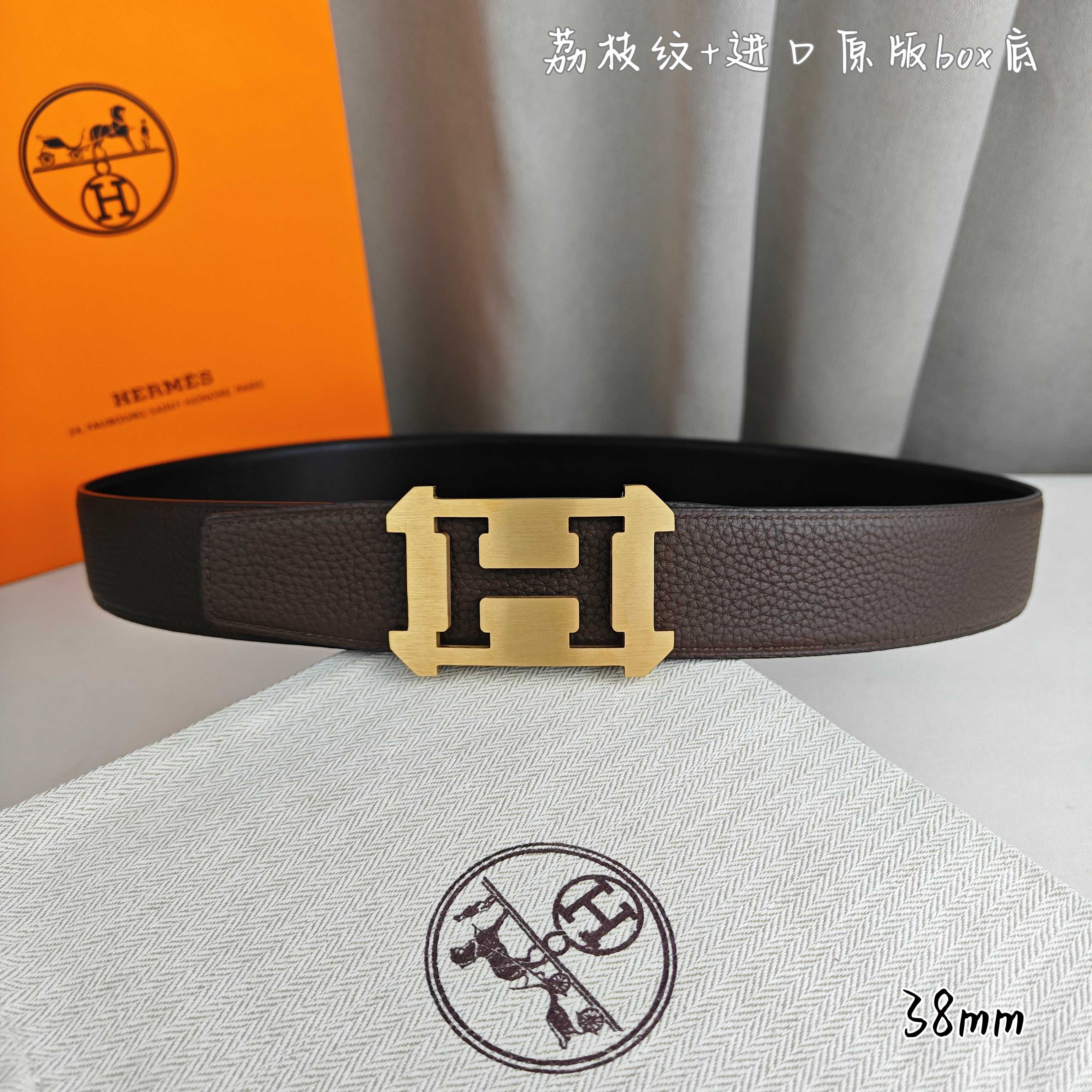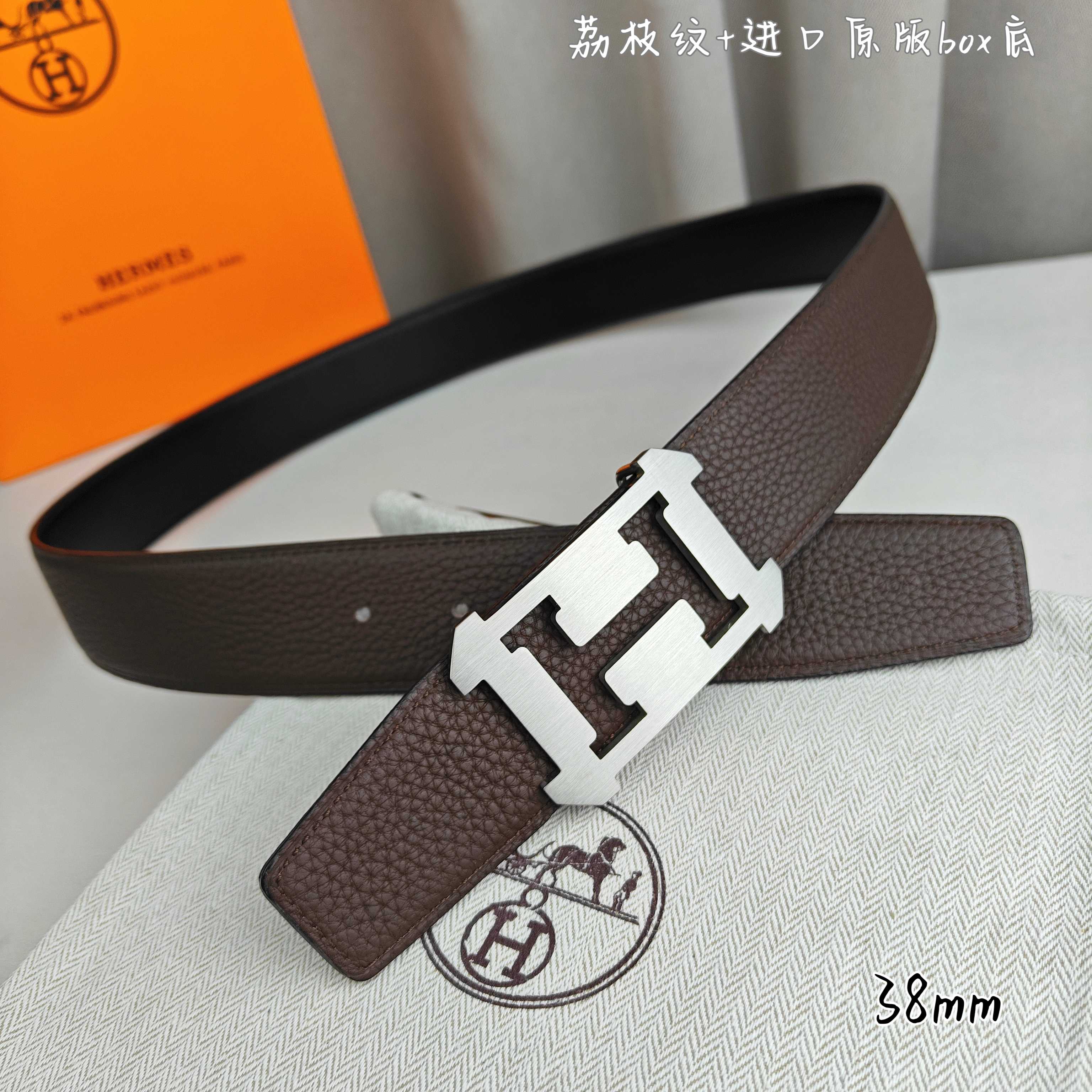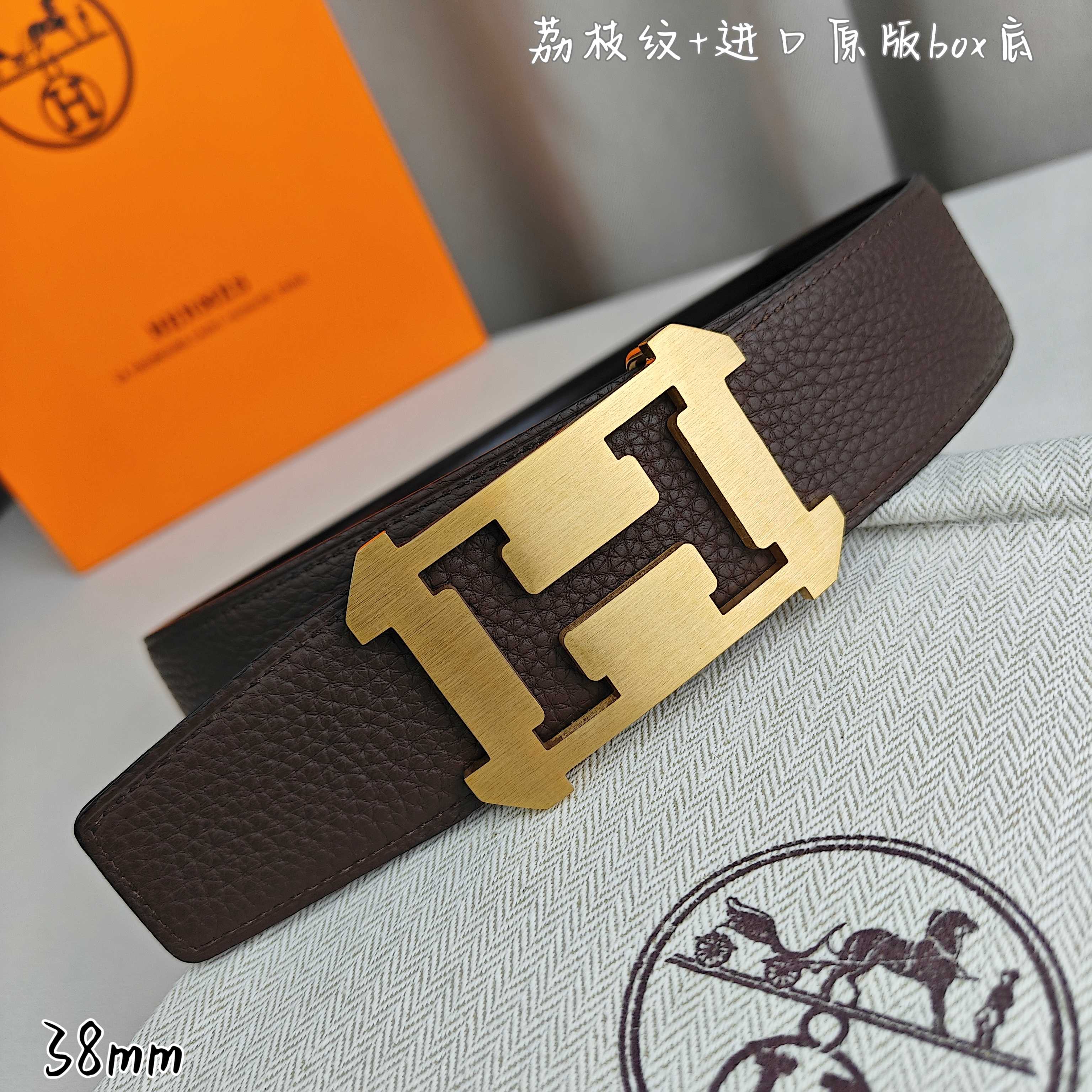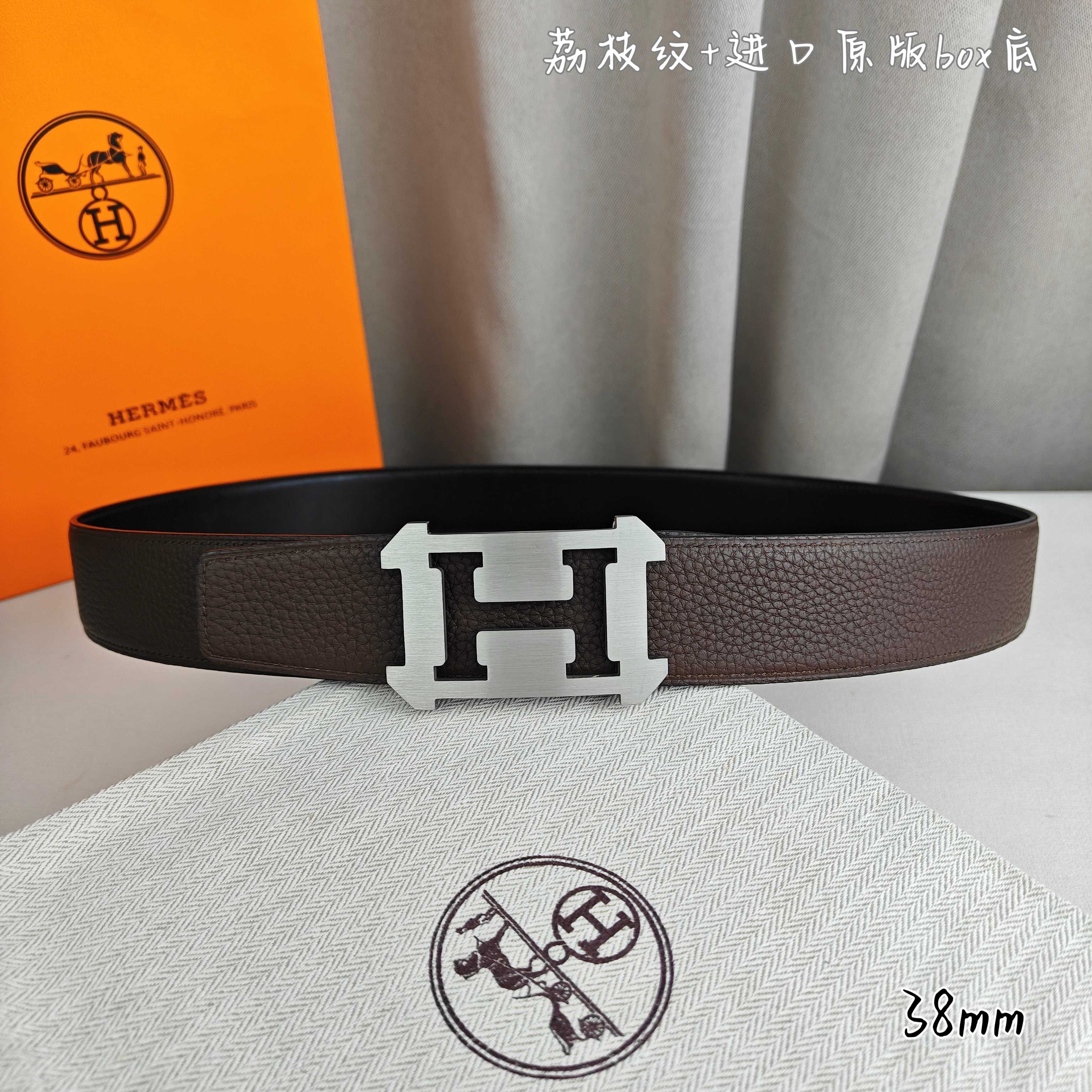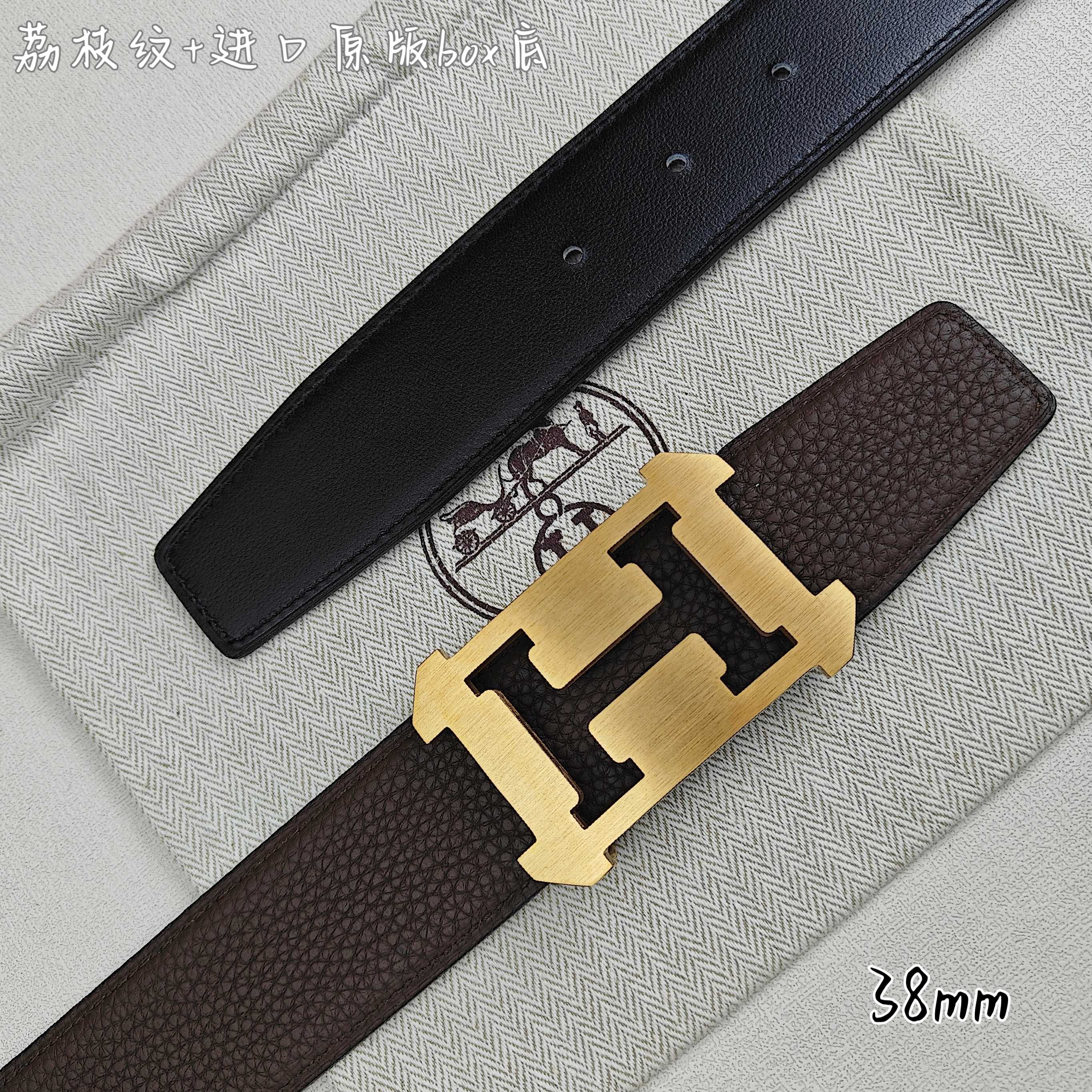 这款皮带是AAAAA 1:1 质量 (非常棒). 使用了和原版一模一样的材料. 商标部分也保持了和爱马仕/Hermes一样. 图片拍摄是实物皮带拍摄, 您所收到的实物保证和我们图片一模一样.
