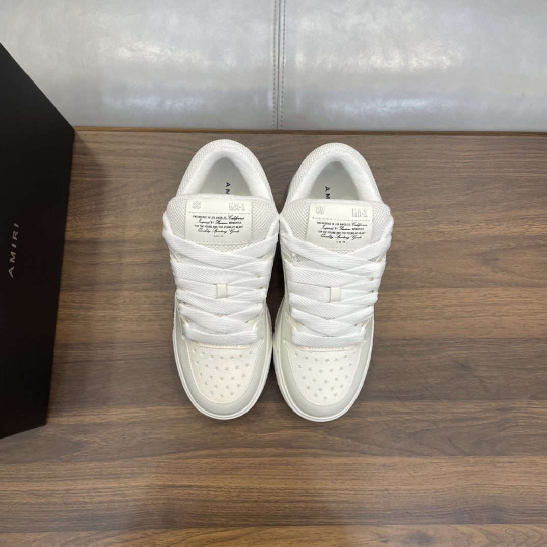 这款鞋子是AAAAA 1:1 质量 (非常棒). 使用了和原版一模一样的材料. 商标部分也保持了和AMIRI一样. 图片拍摄是实物鞋子拍摄, 您所收到的实物保证和我们图片一模一样.