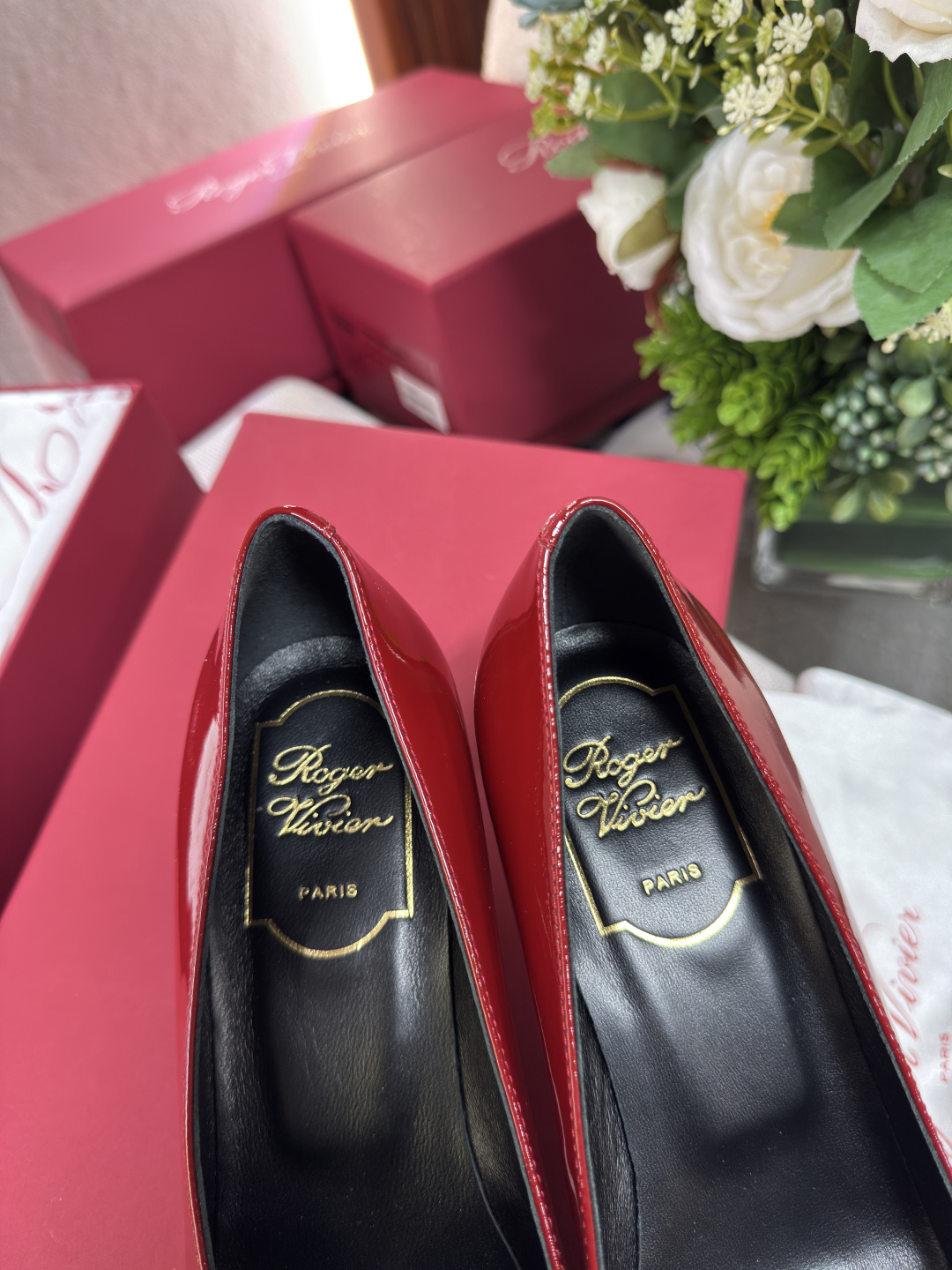 这款鞋子是AAAAA 1:1 质量 (非常棒). 使用了和原版一模一样的材料. 商标部分也保持了和罗杰维维耶/Roger Vivier一样. 图片拍摄是实物鞋子拍摄, 您所收到的实物保证和我们图片一模一样.
