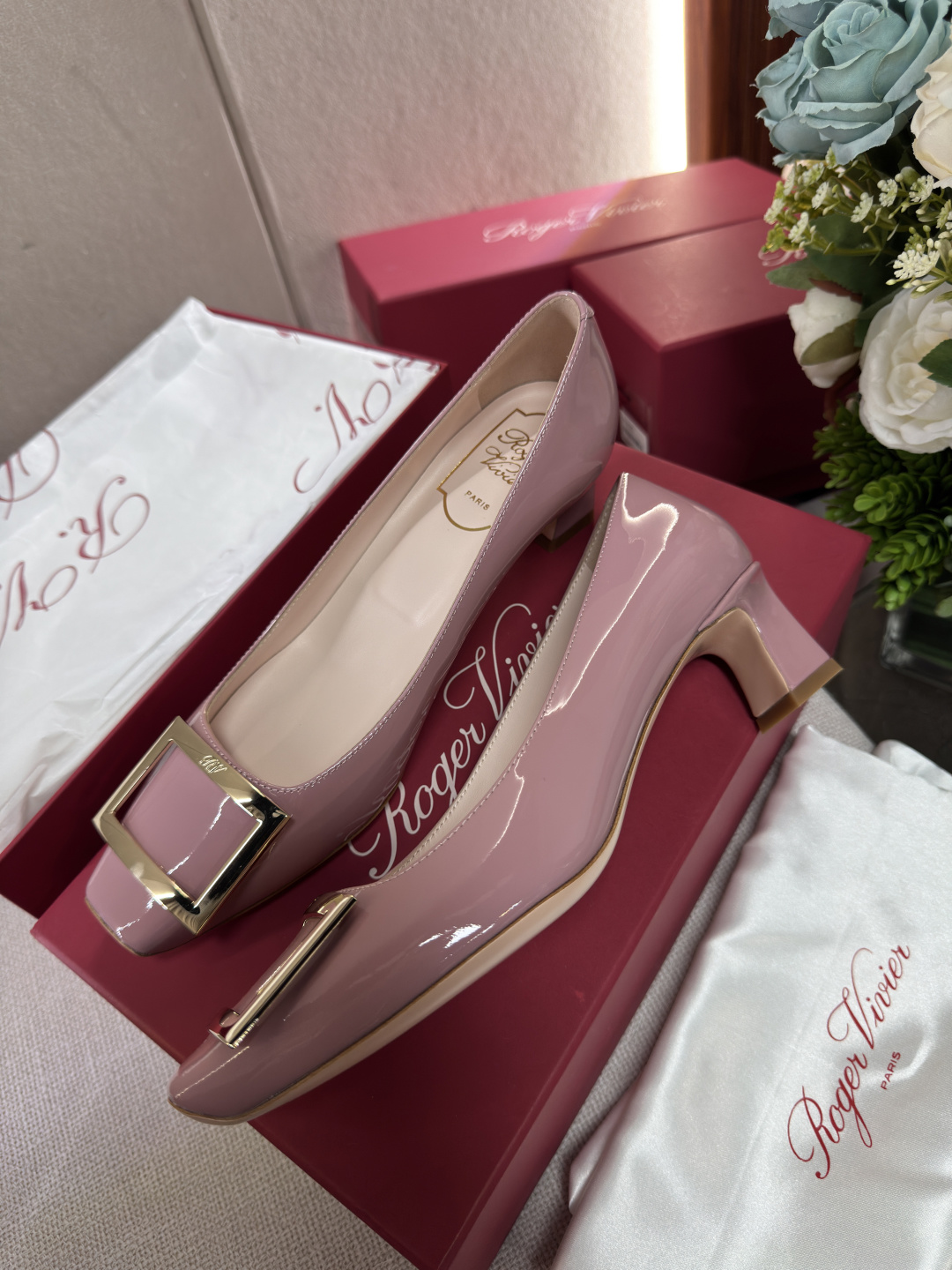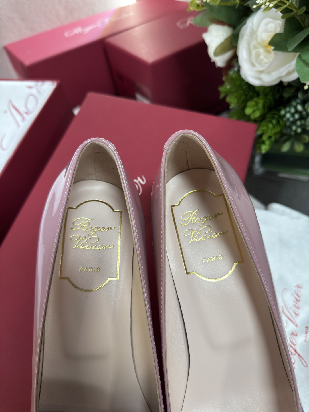 这款鞋子是AAAAA 1:1 质量 (非常棒). 使用了和原版一模一样的材料. 商标部分也保持了和罗杰维维耶/Roger Vivier一样. 图片拍摄是实物鞋子拍摄, 您所收到的实物保证和我们图片一模一样.