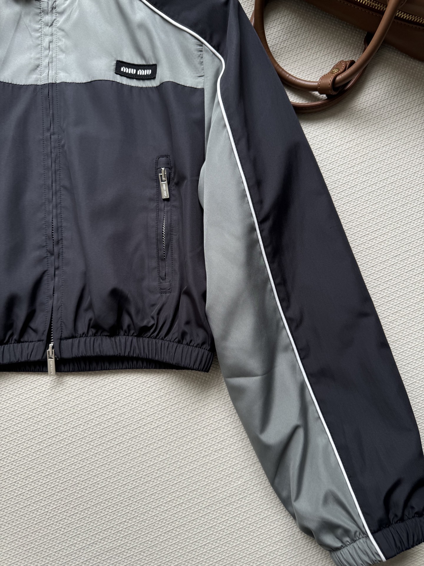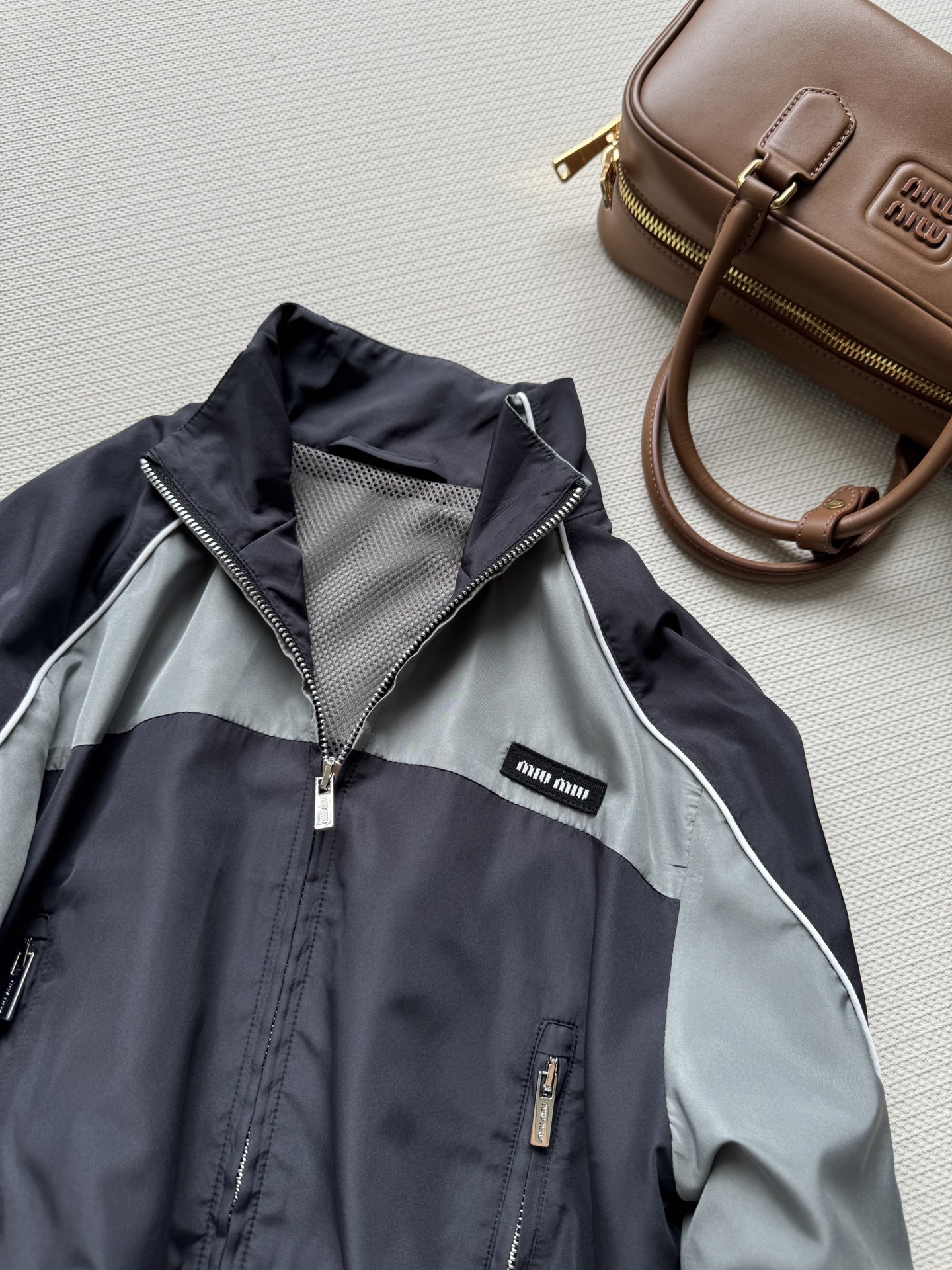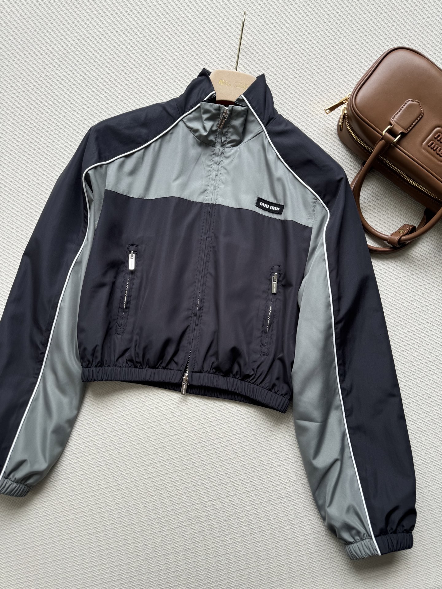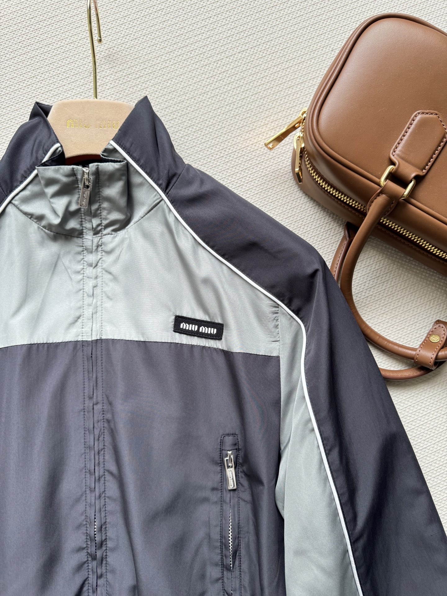 这款衣服是AAAAA 1:1 质量 (非常棒). 使用了和原版一模一样的材料. 商标部分也保持了和缪缪/Miu Miu一样. 图片拍摄是实物衣服拍摄, 您所收到的实物保证和我们图片一模一样.