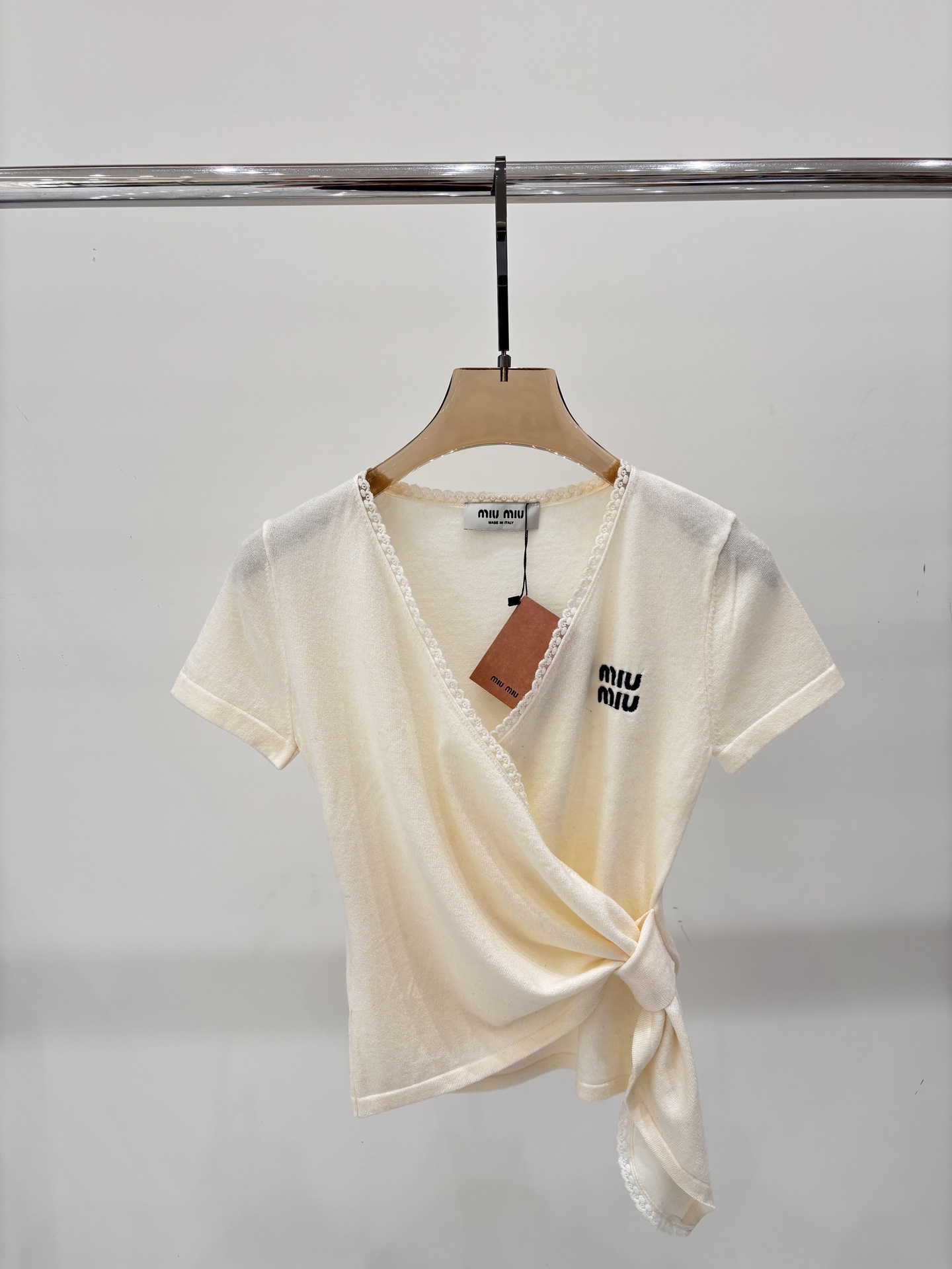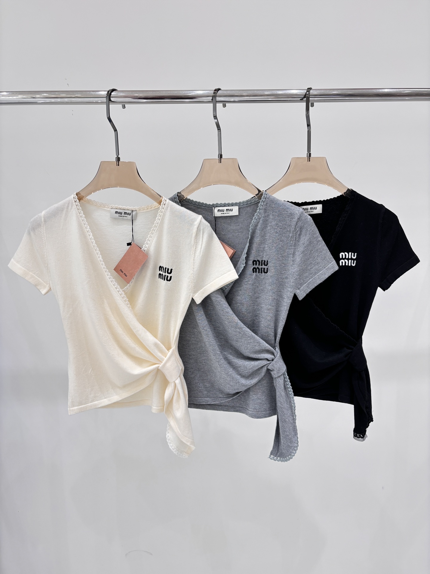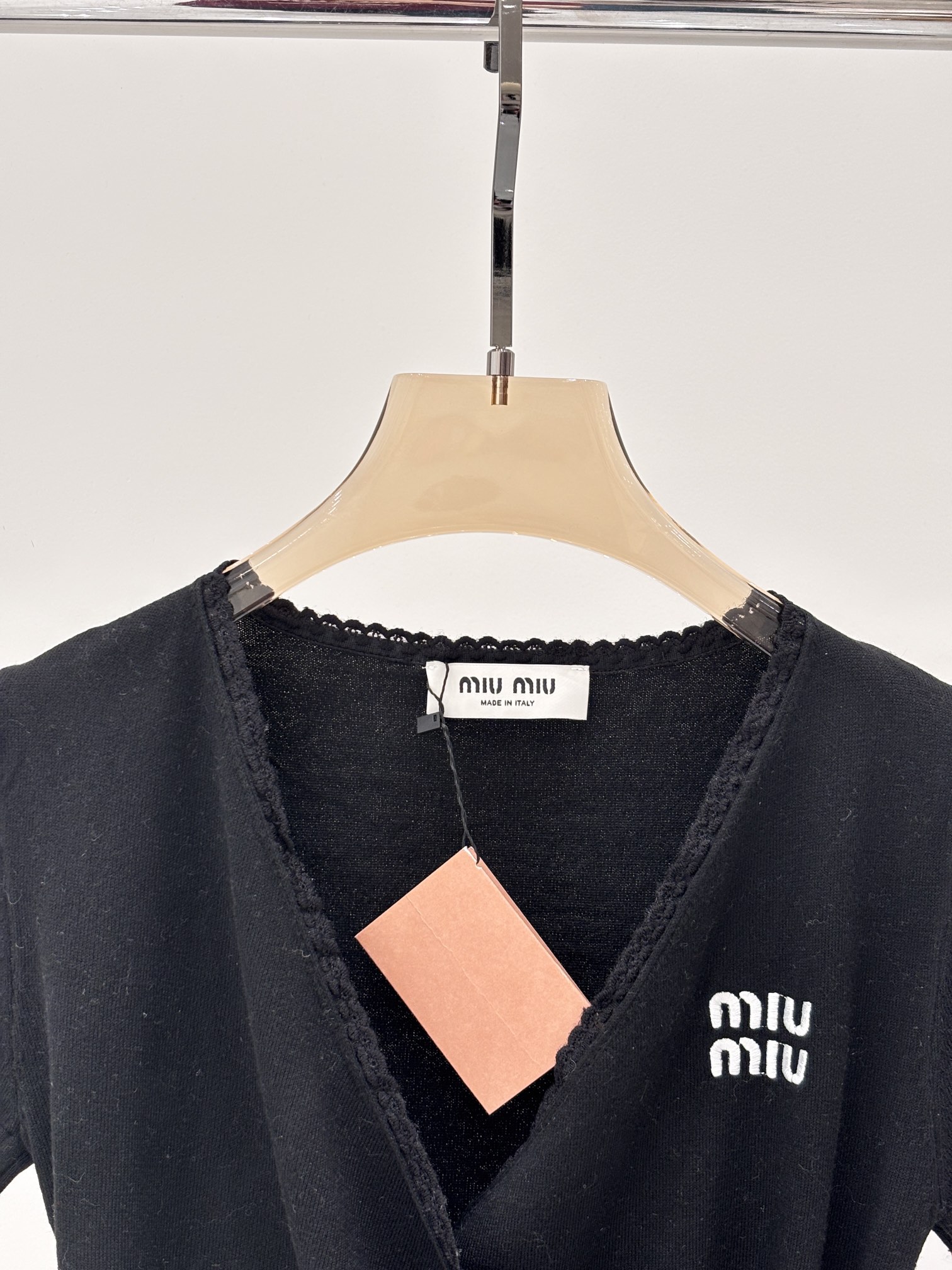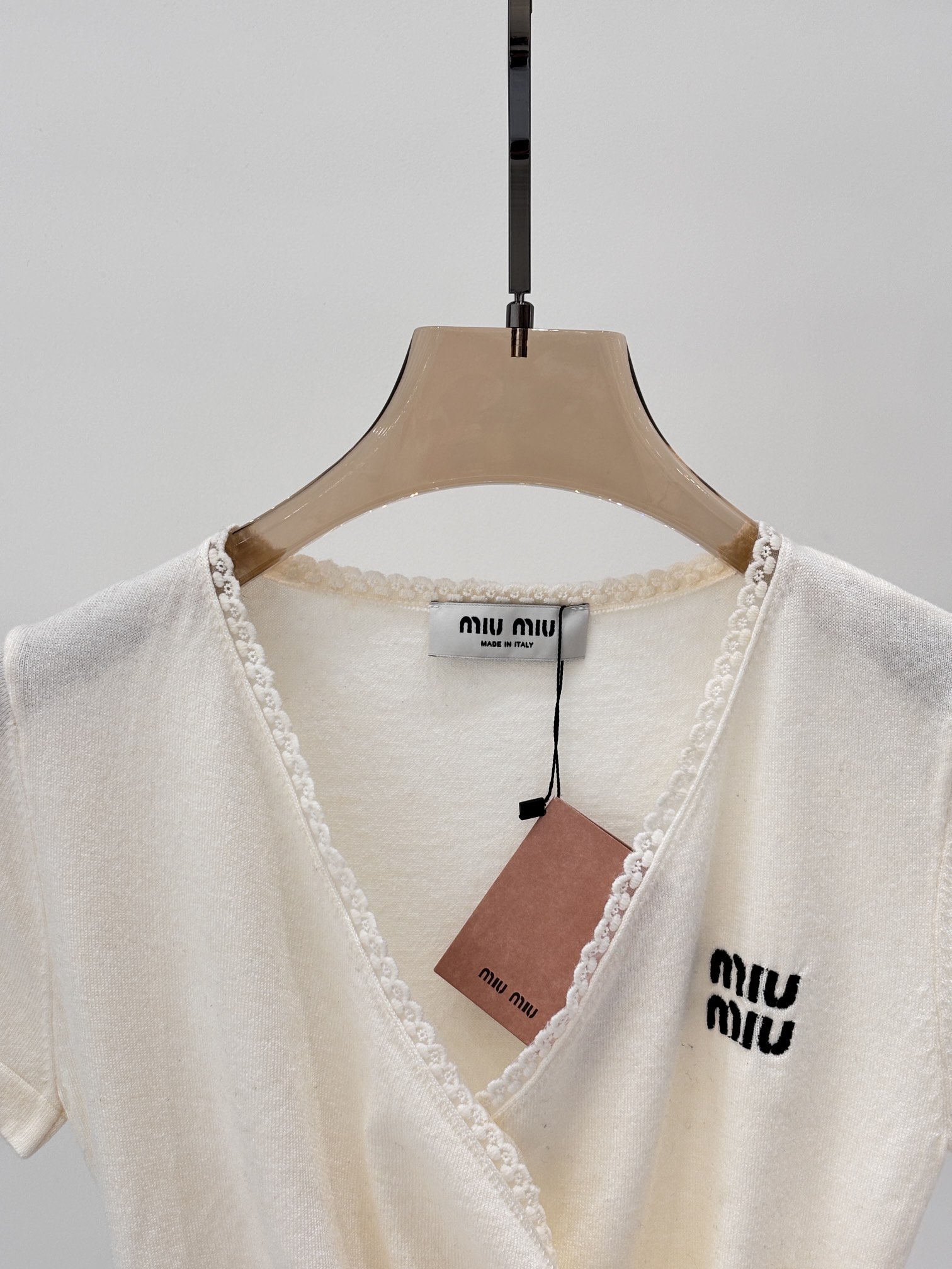 这款衣服是AAAAA 1:1 质量 (非常棒). 使用了和原版一模一样的材料. 商标部分也保持了和缪缪/Miu Miu一样. 图片拍摄是实物衣服拍摄, 您所收到的实物保证和我们图片一模一样.