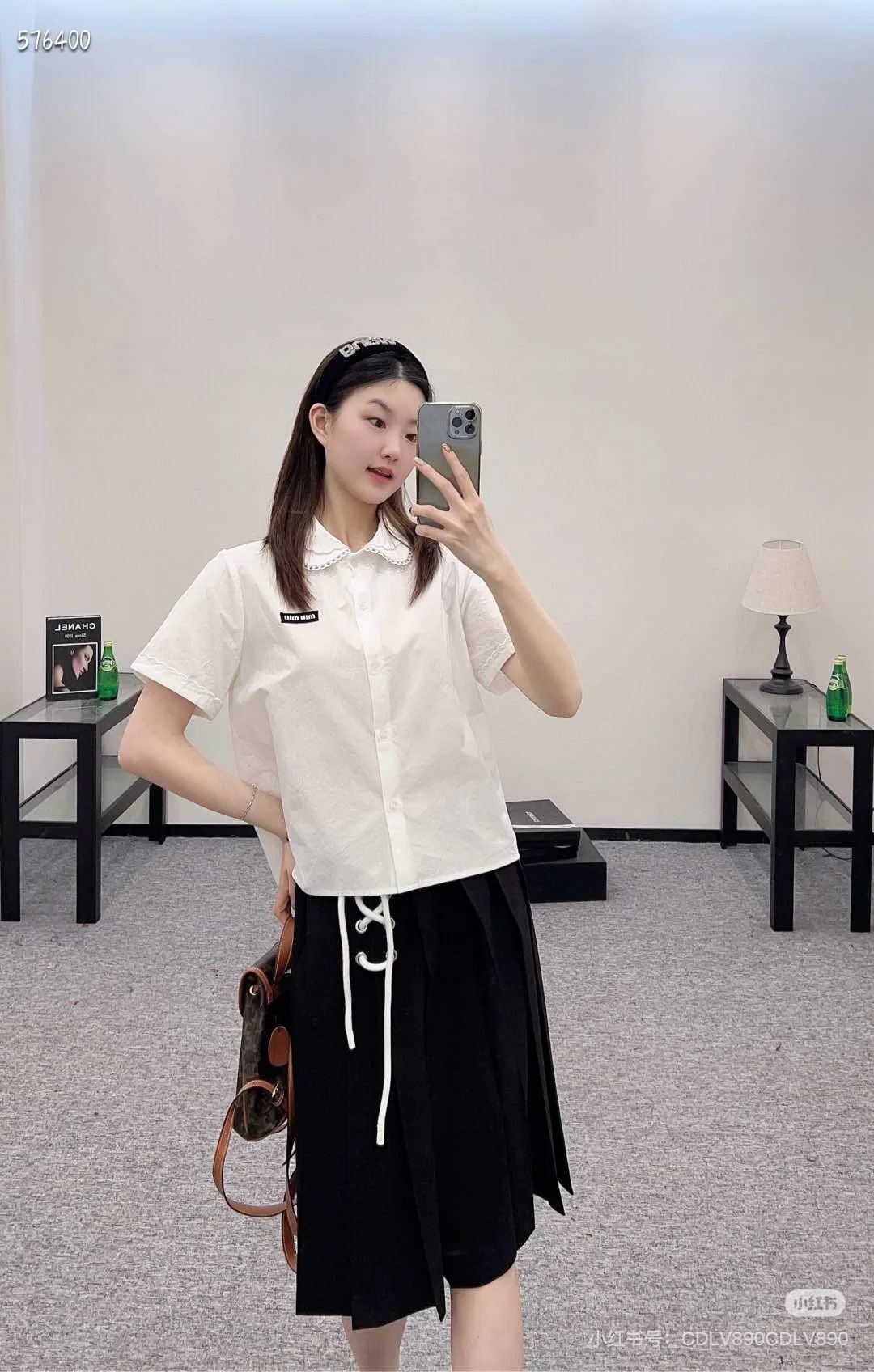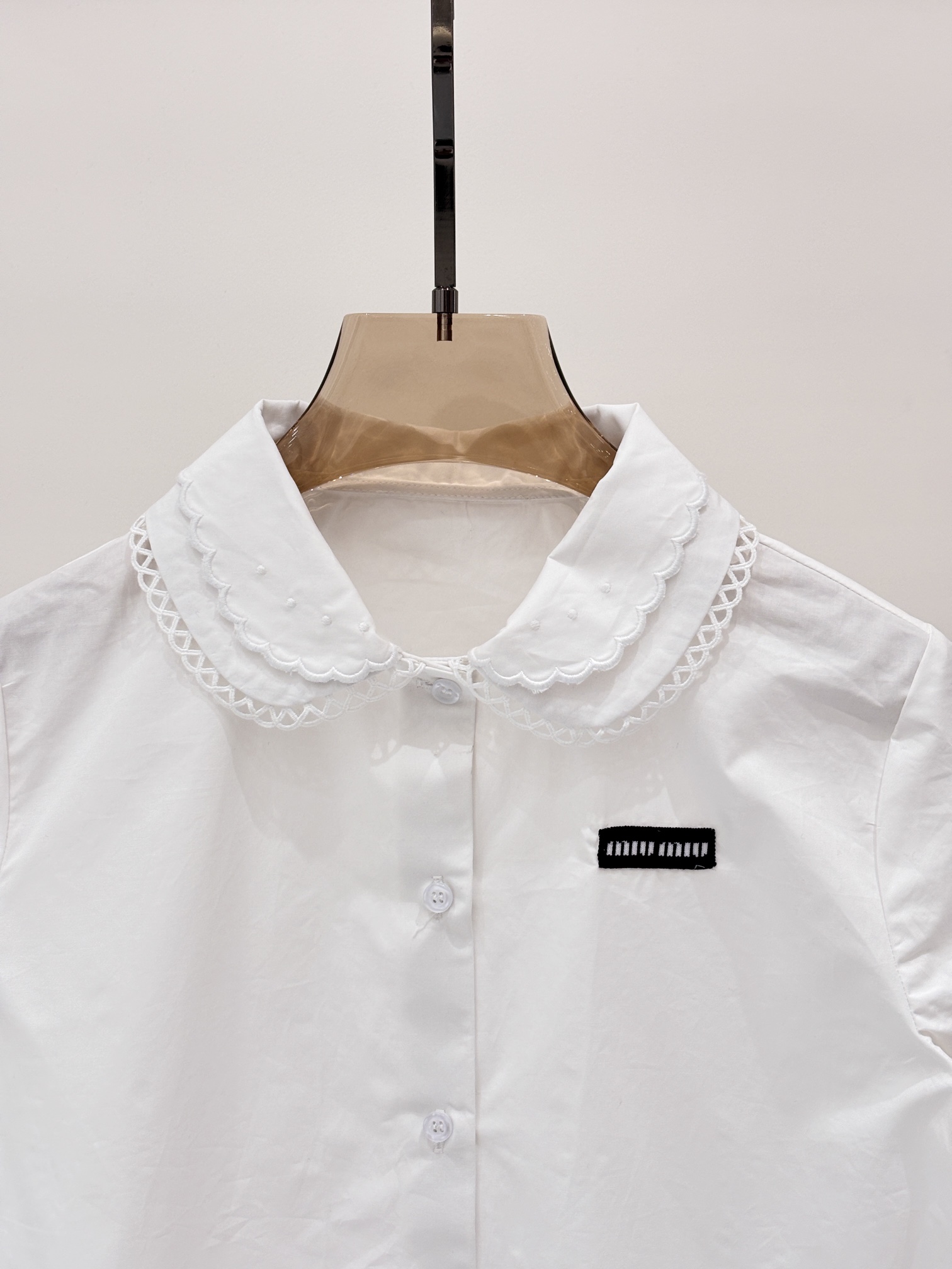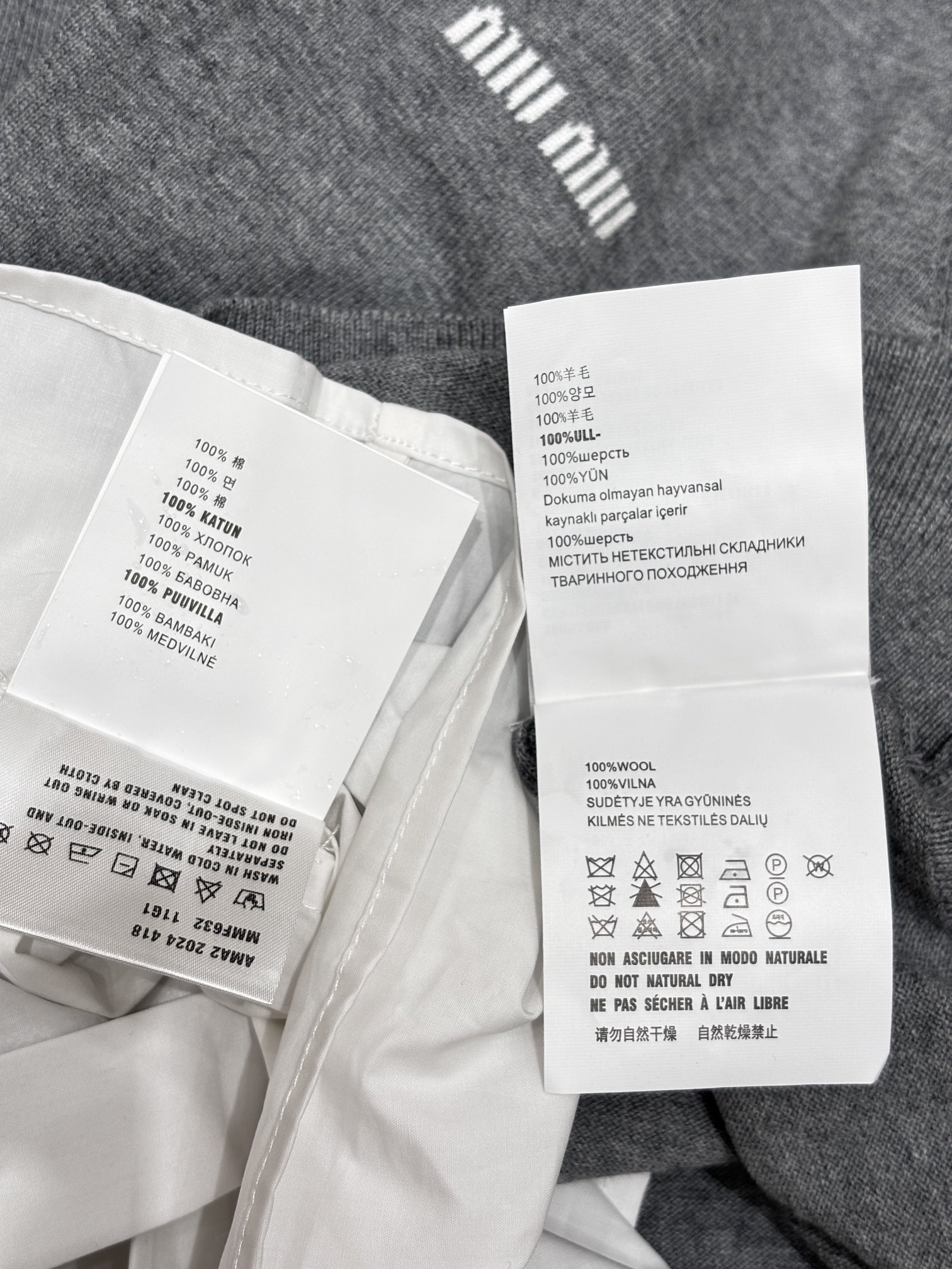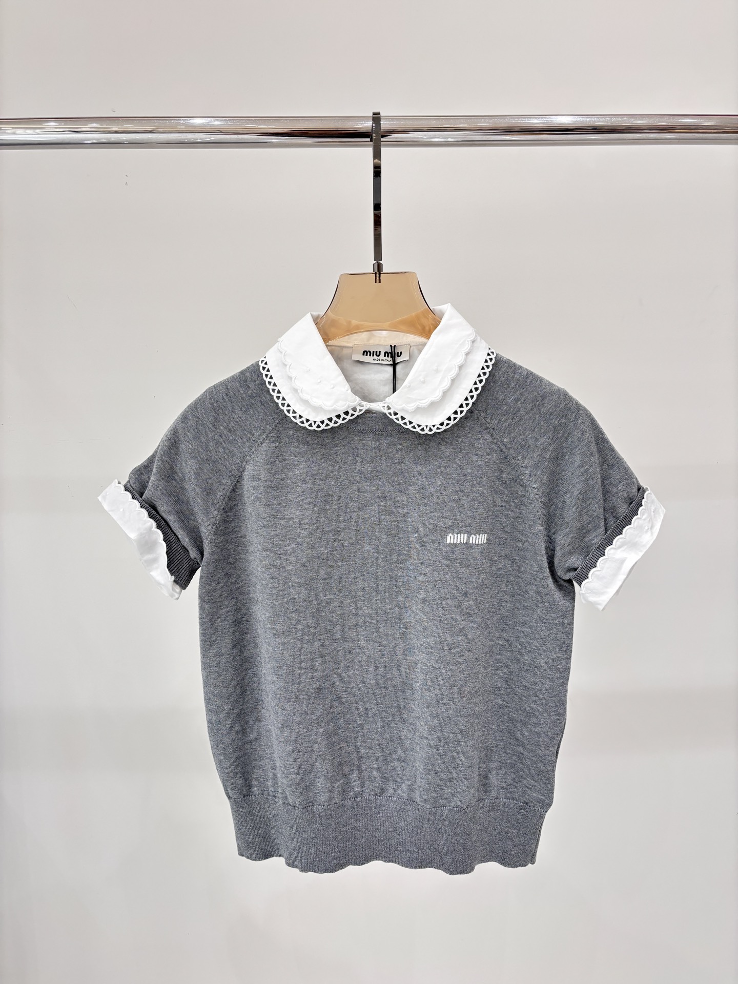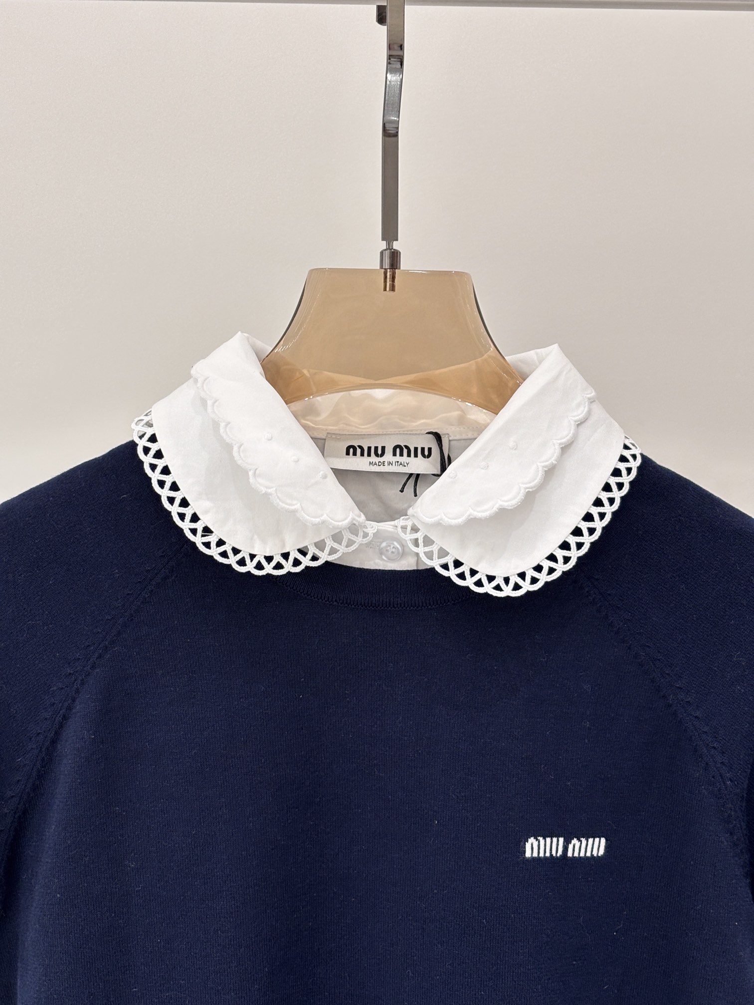 这款衣服是AAAAA 1:1 质量 (非常棒). 使用了和原版一模一样的材料. 商标部分也保持了和缪缪/Miu Miu一样. 图片拍摄是实物衣服拍摄, 您所收到的实物保证和我们图片一模一样.