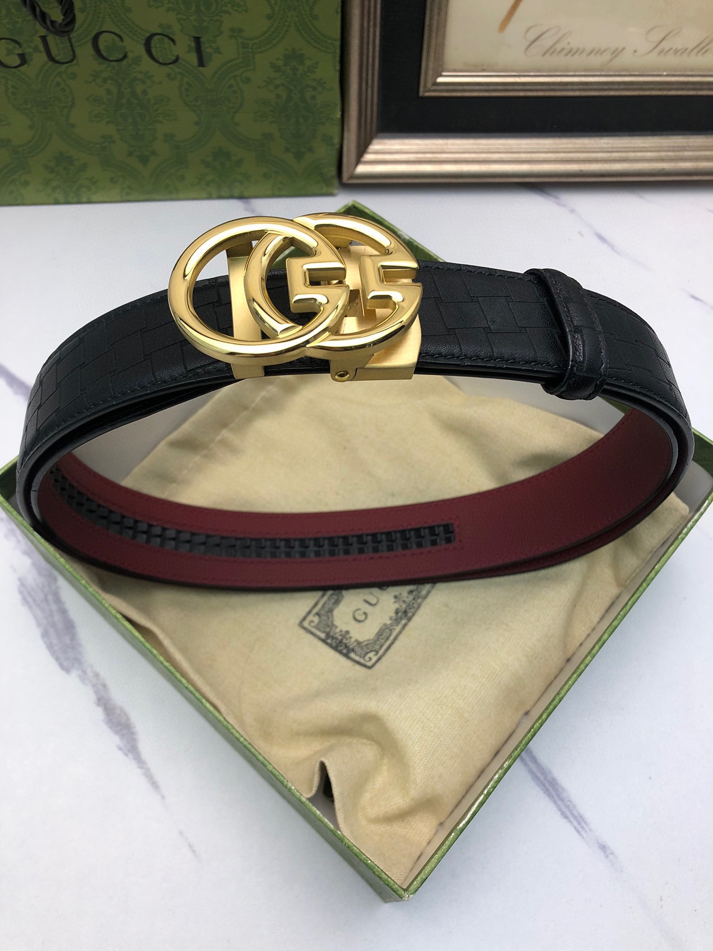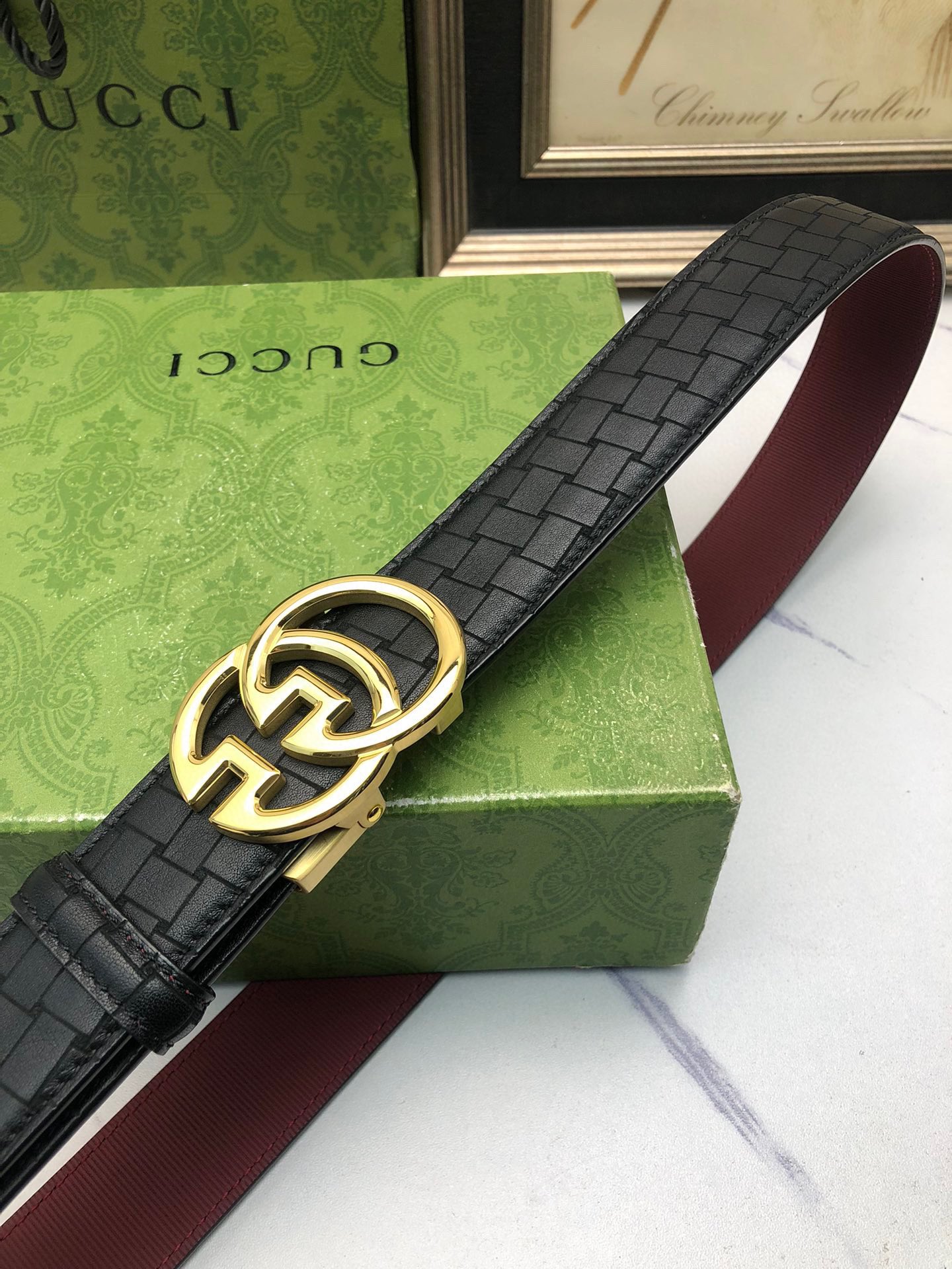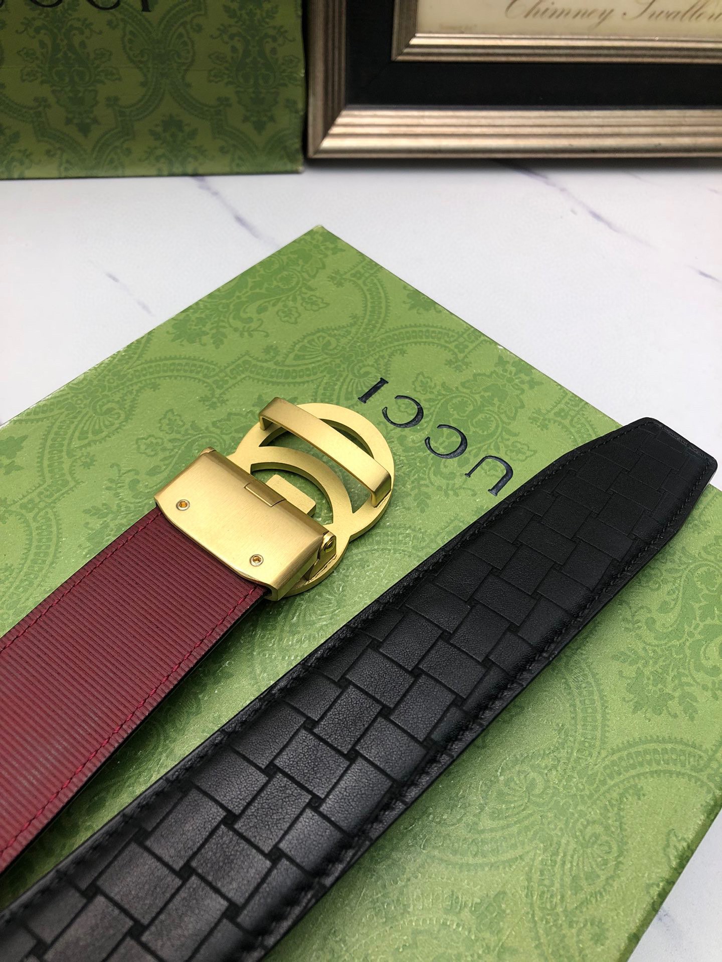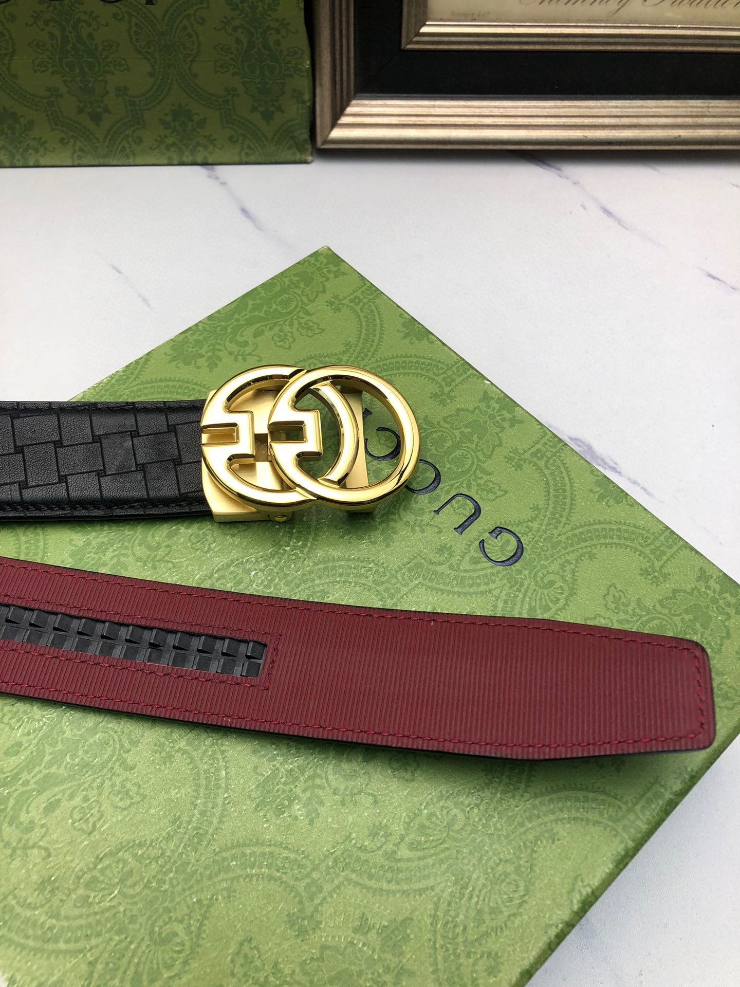 这款皮带是AAAAA 1:1 质量 (非常棒). 使用了和原版一模一样的材料. 商标部分也保持了和古奇/Gucci一样. 图片拍摄是实物皮带拍摄, 您所收到的实物保证和我们图片一模一样.