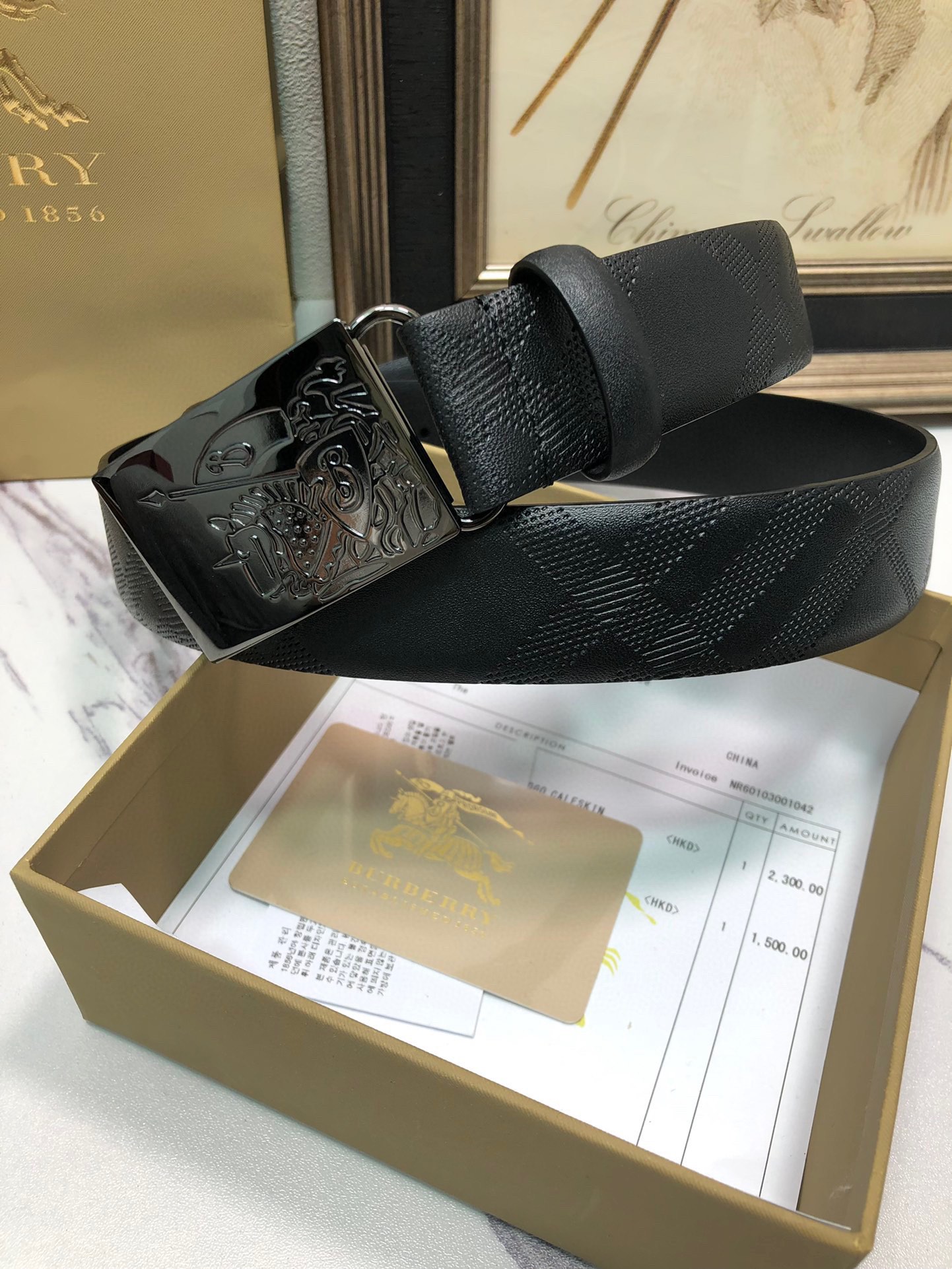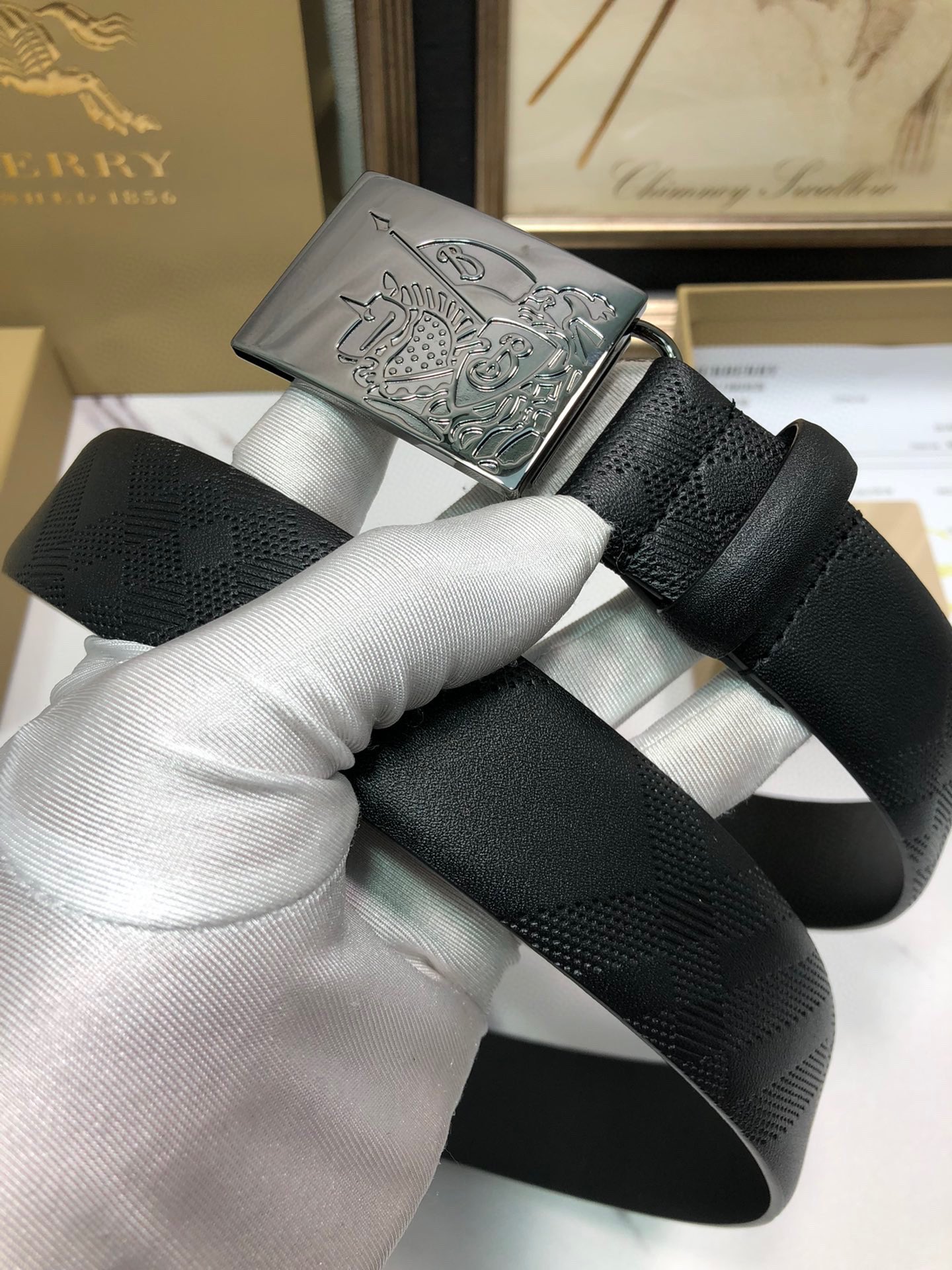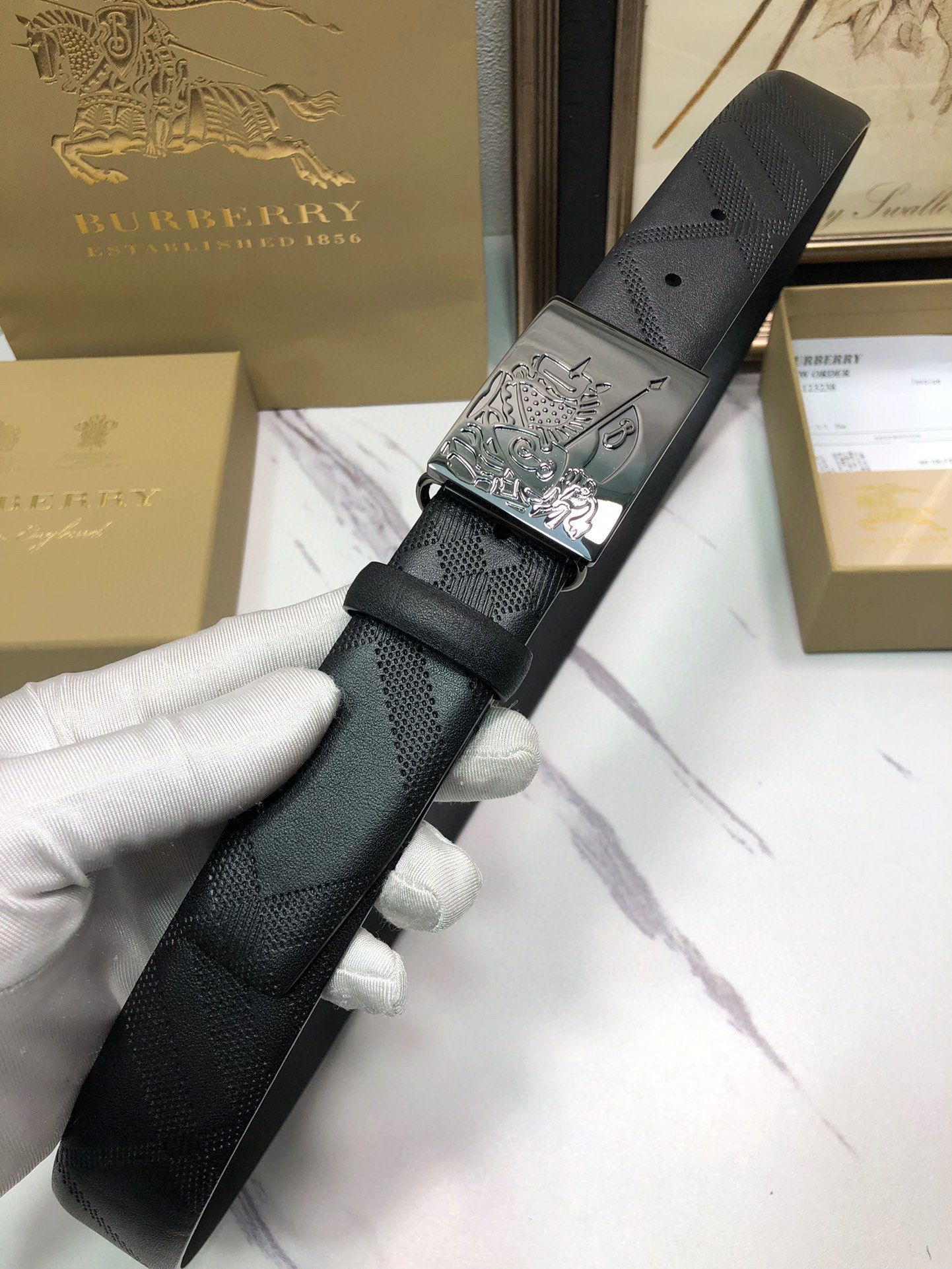 这款皮带是AAAAA 1:1 质量 (非常棒). 使用了和原版一模一样的材料. 商标部分也保持了和巴宝莉/Burberry一样. 图片拍摄是实物皮带拍摄, 您所收到的实物保证和我们图片一模一样.