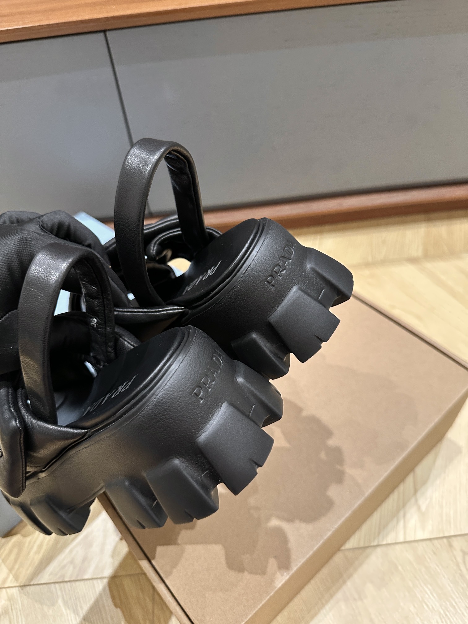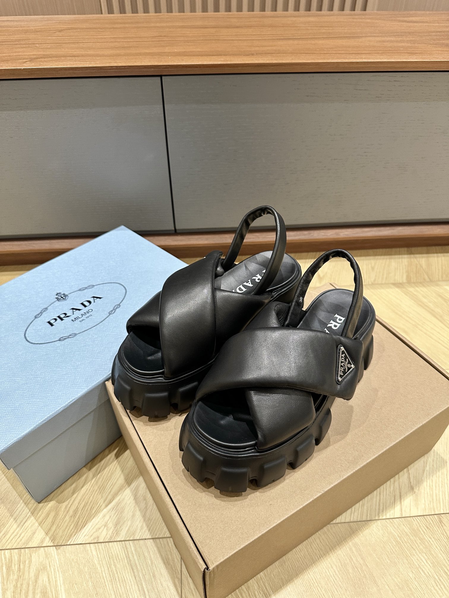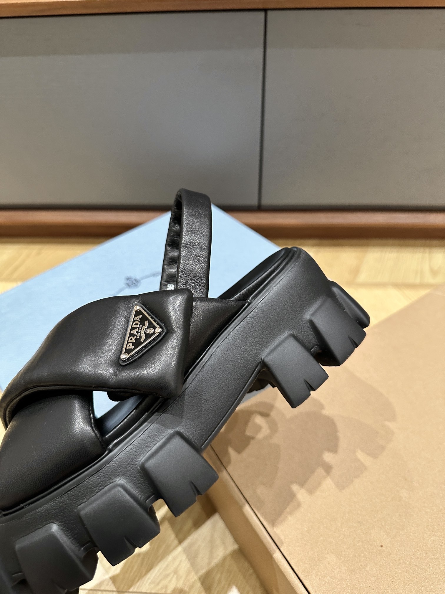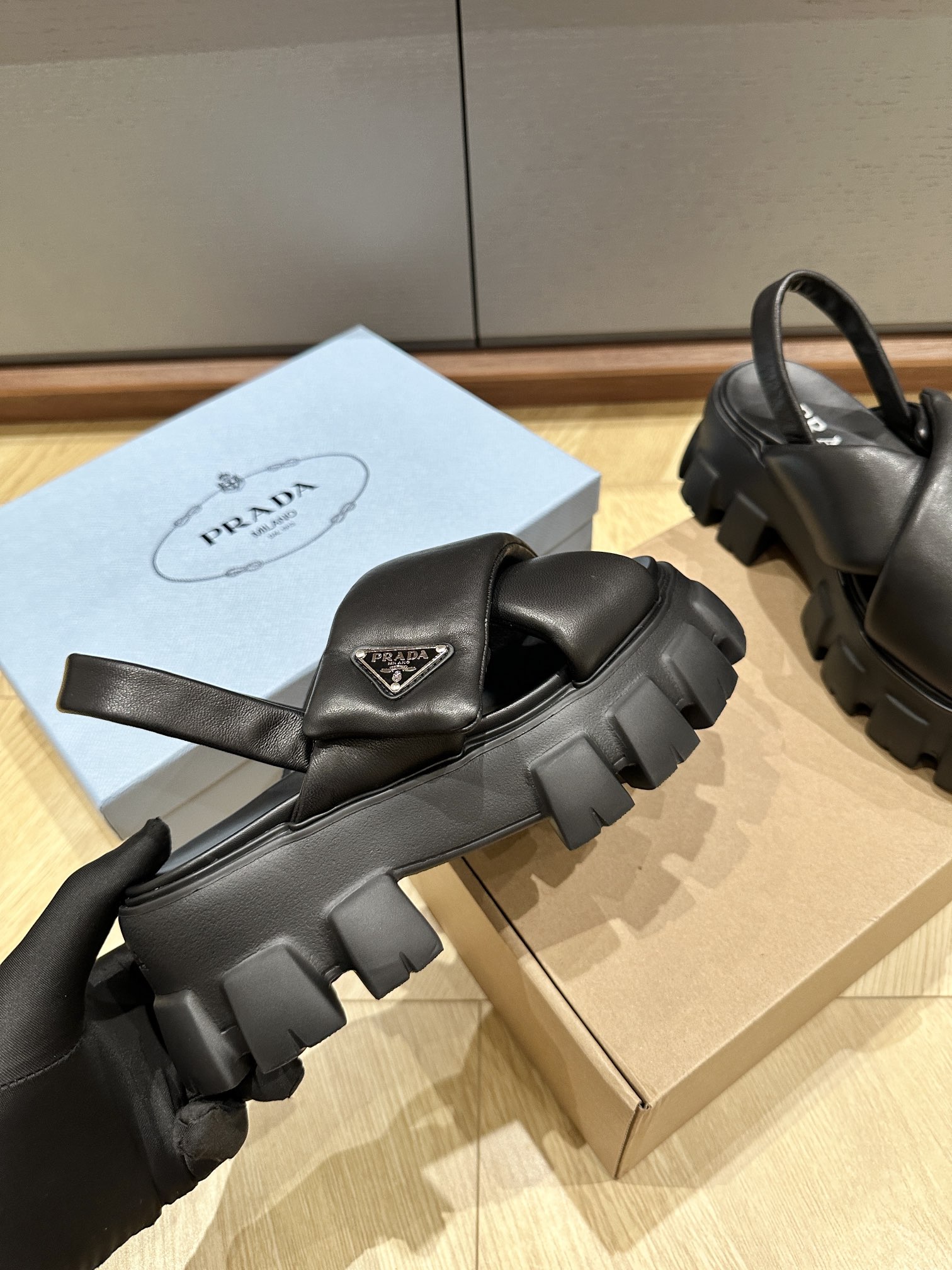 这款鞋子是AAAAA 1:1 质量 (非常棒). 使用了和原版一模一样的材料. 商标部分也保持了和普拉达/Prada一样. 图片拍摄是实物鞋子拍摄, 您所收到的实物保证和我们图片一模一样.