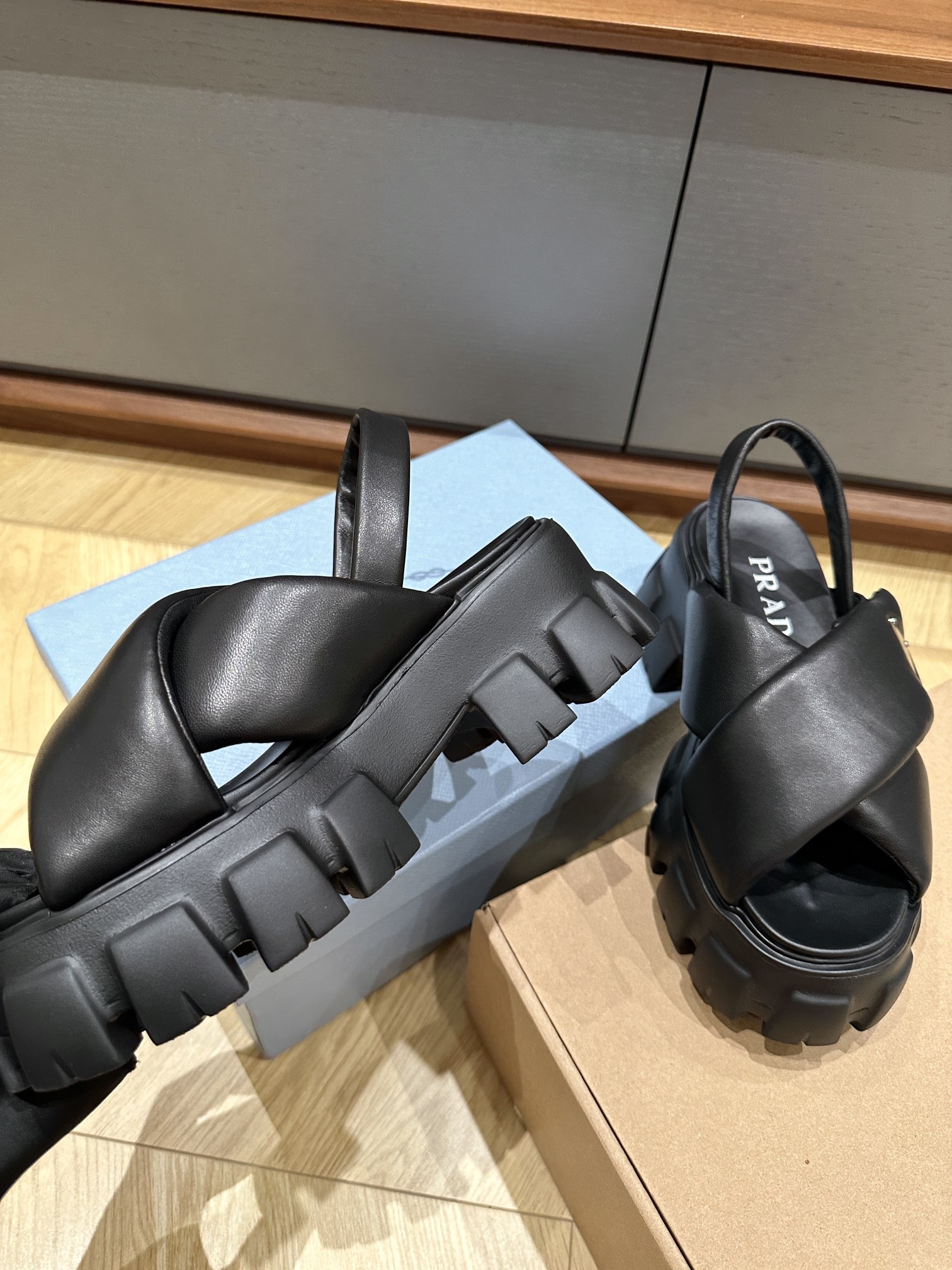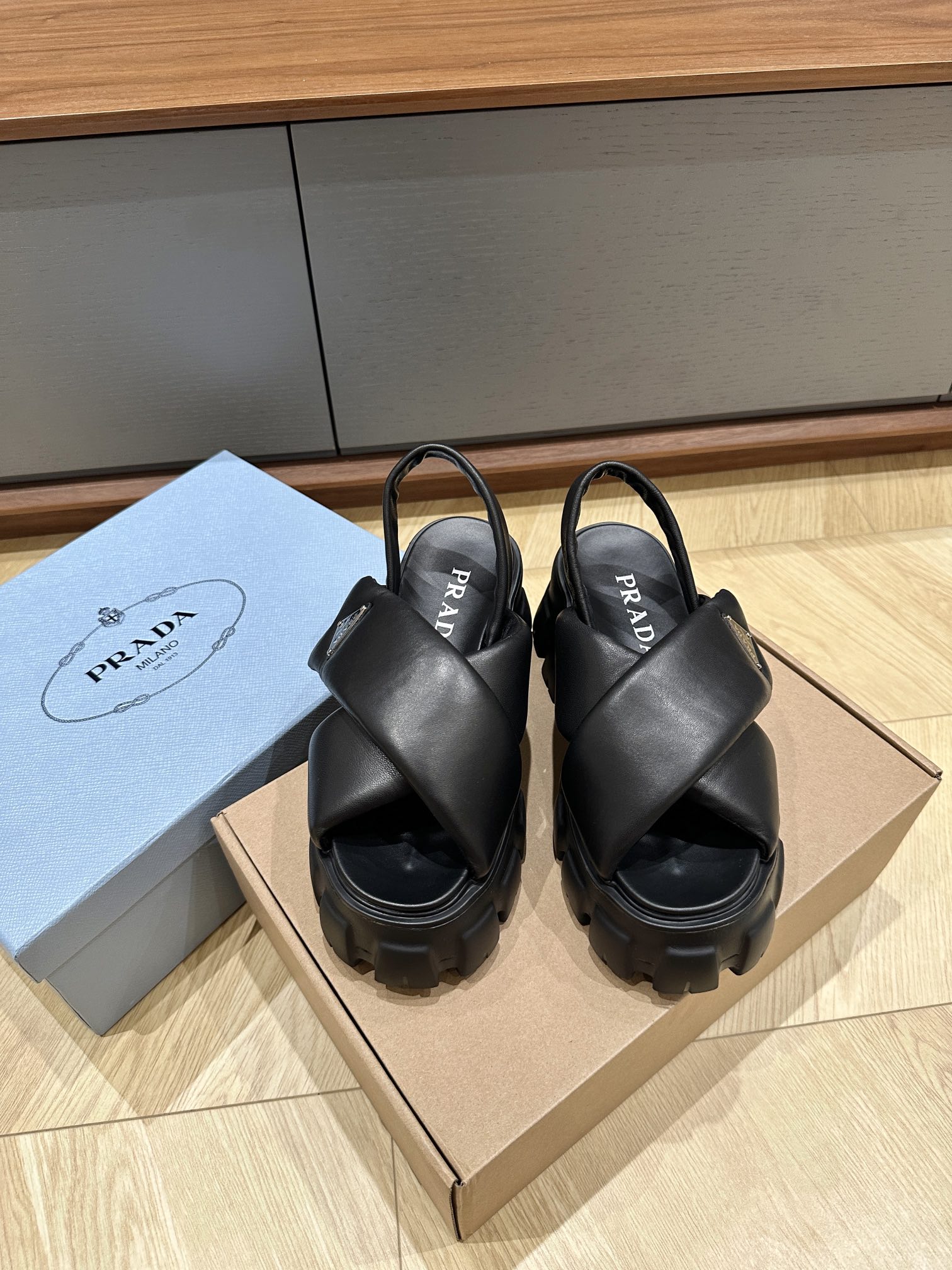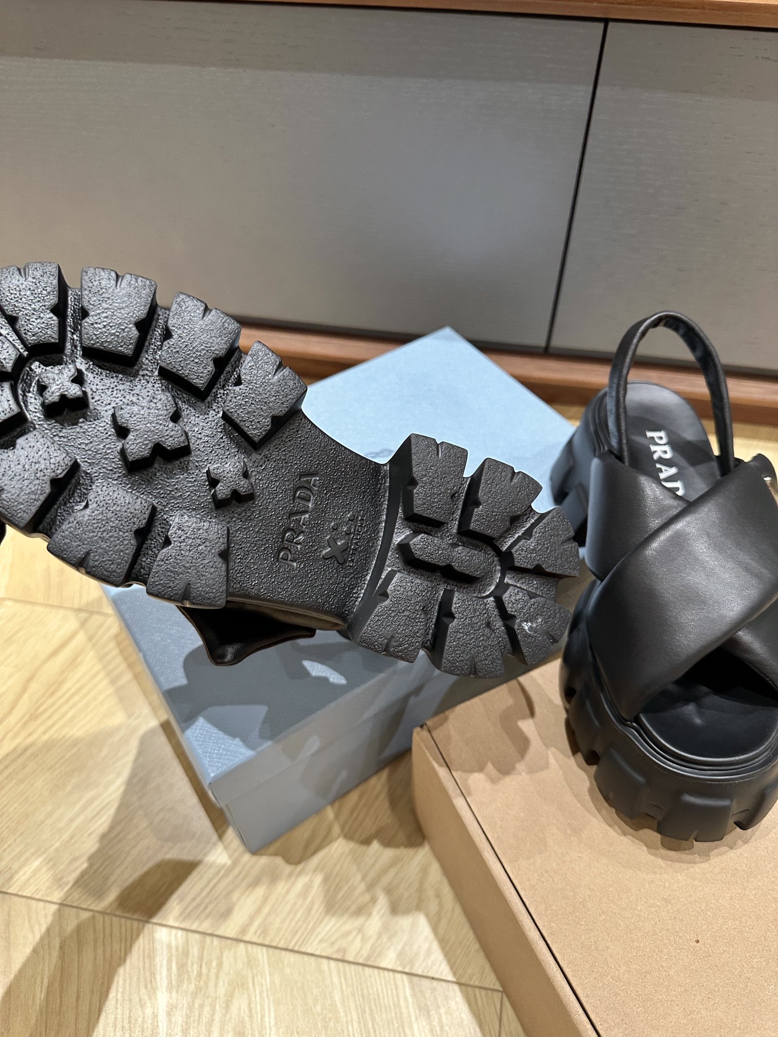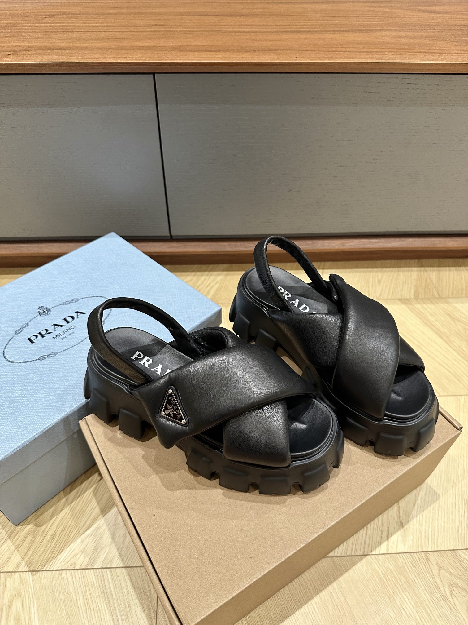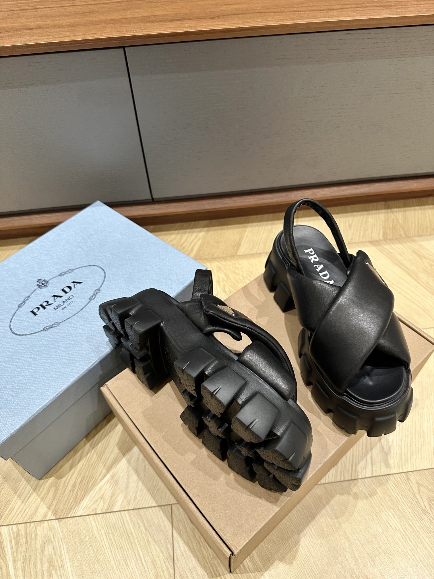 这款鞋子是AAAAA 1:1 质量 (非常棒). 使用了和原版一模一样的材料. 商标部分也保持了和普拉达/Prada一样. 图片拍摄是实物鞋子拍摄, 您所收到的实物保证和我们图片一模一样.