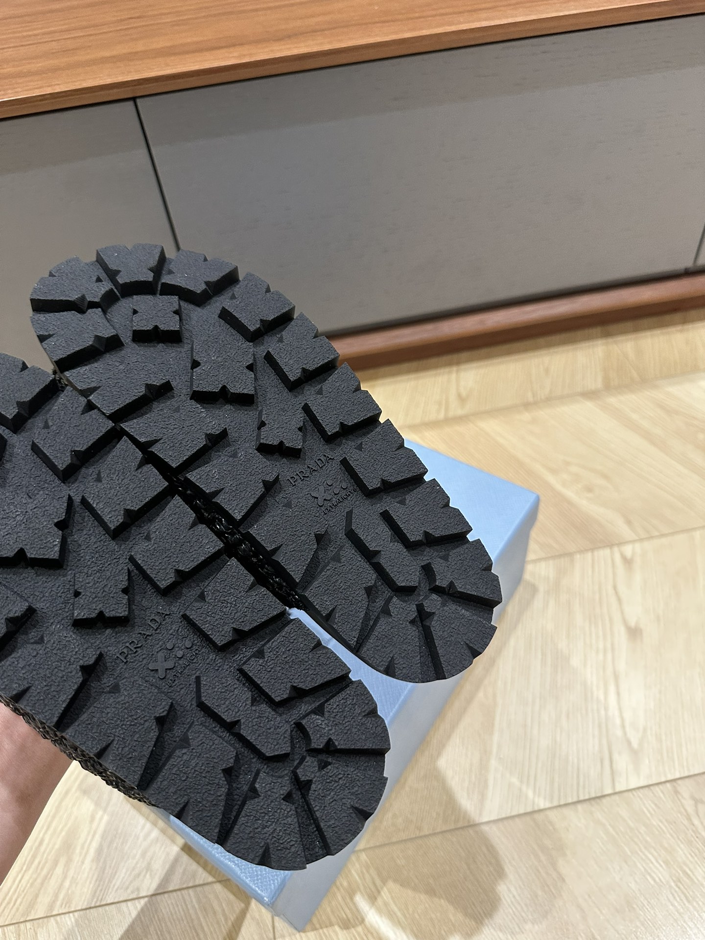 这款鞋子是AAAAA 1:1 质量 (非常棒). 使用了和原版一模一样的材料. 商标部分也保持了和普拉达/Prada一样. 图片拍摄是实物鞋子拍摄, 您所收到的实物保证和我们图片一模一样.