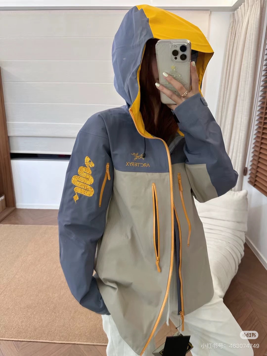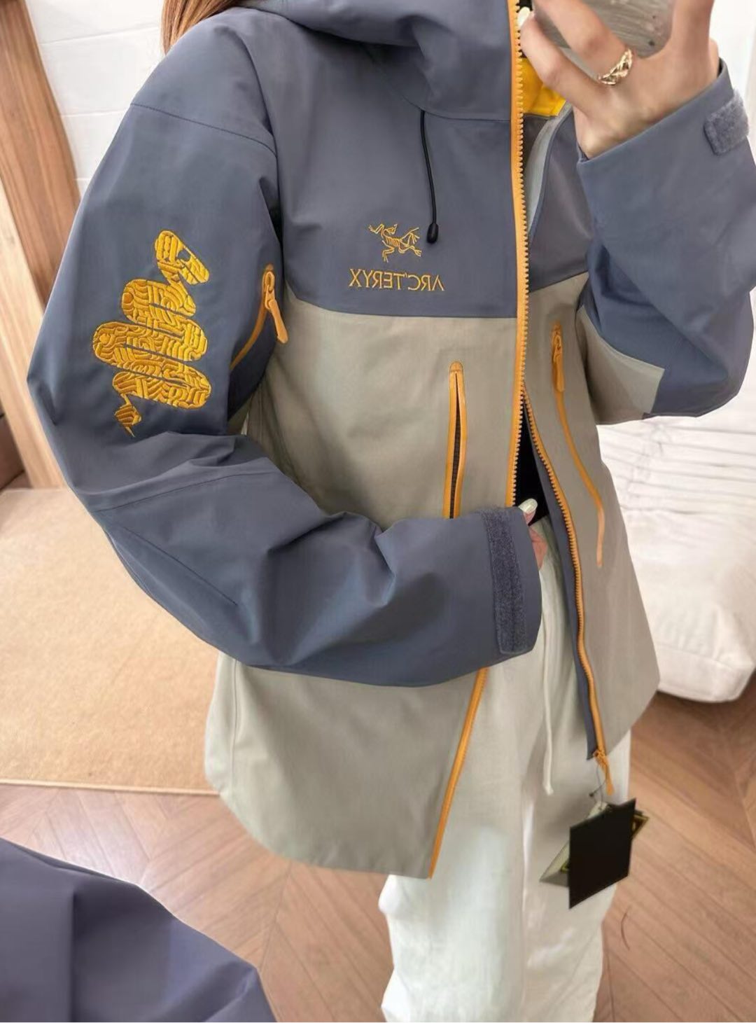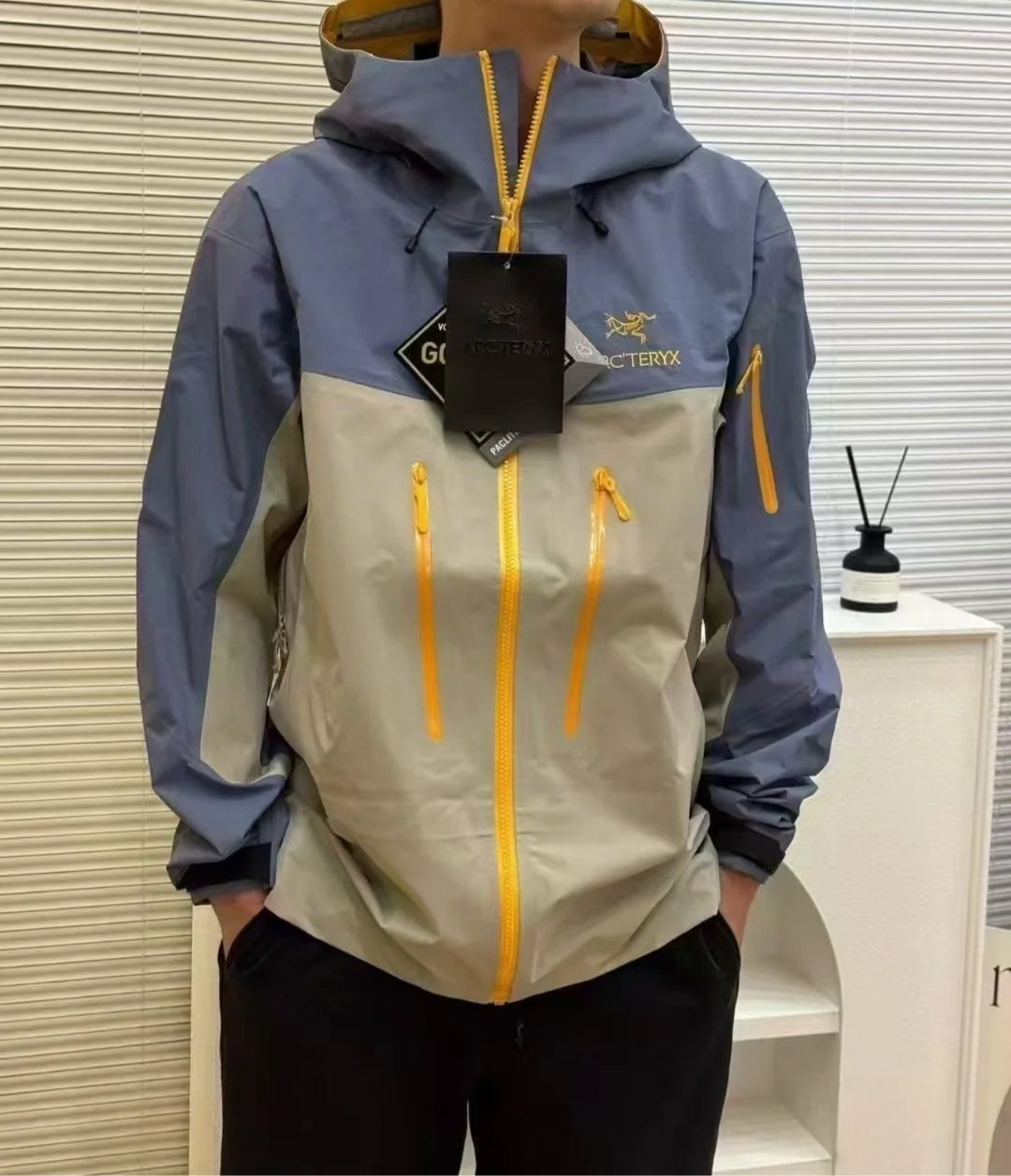 这款衣服是AAAAA 1:1 质量 (非常棒). 使用了和原版一模一样的材料. 商标部分也保持了和ARC'TERYX一样. 图片拍摄是实物衣服拍摄, 您所收到的实物保证和我们图片一模一样.