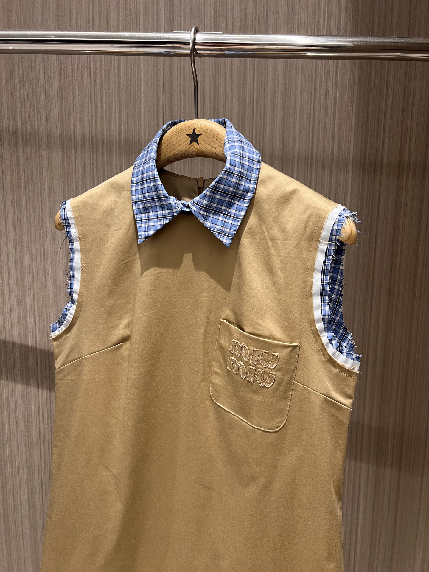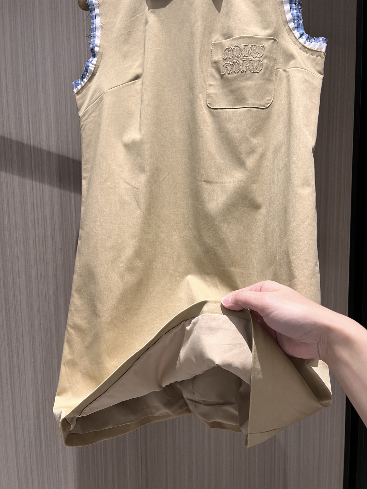 这款衣服是AAAAA 1:1 质量 (非常棒). 使用了和原版一模一样的材料. 商标部分也保持了和缪缪/Miu Miu一样. 图片拍摄是实物衣服拍摄, 您所收到的实物保证和我们图片一模一样.